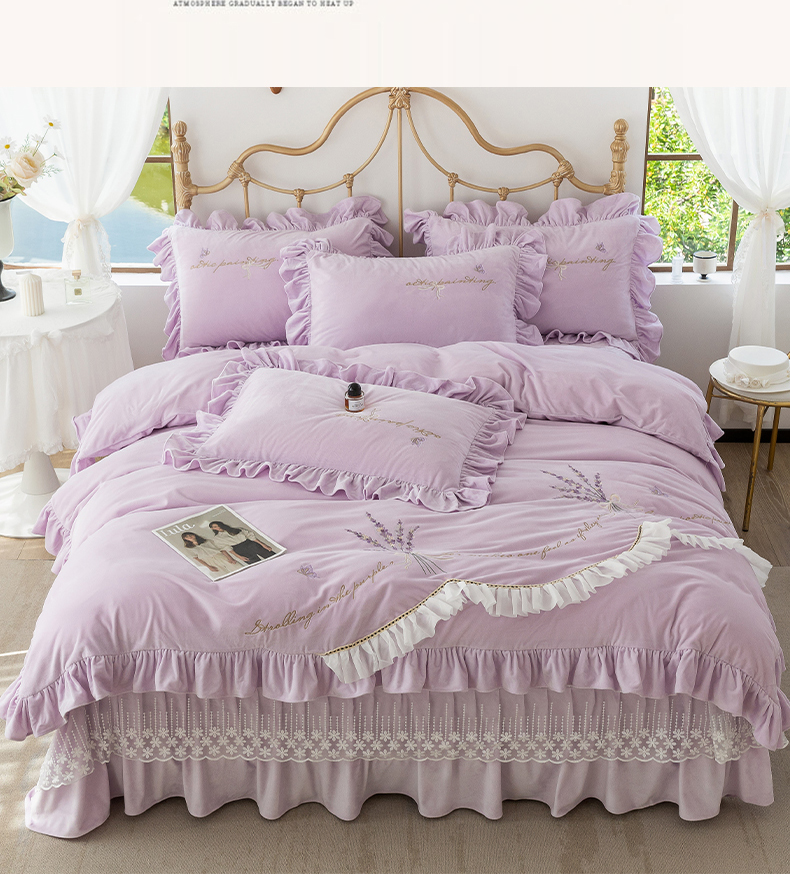 (总)金绣美居 2025新款加厚婴儿绒韩版床盖绣花保暖四件套-含香