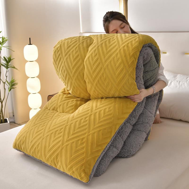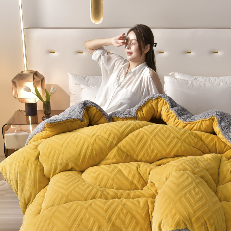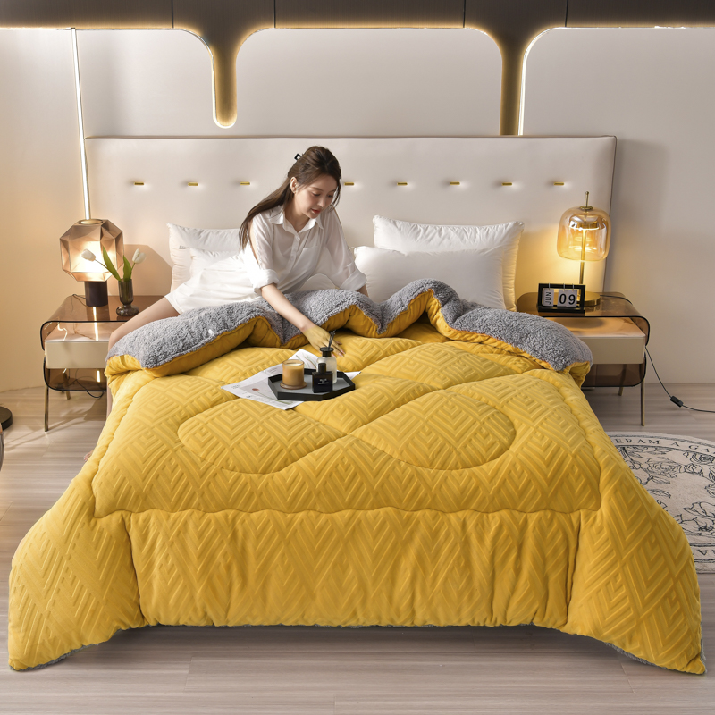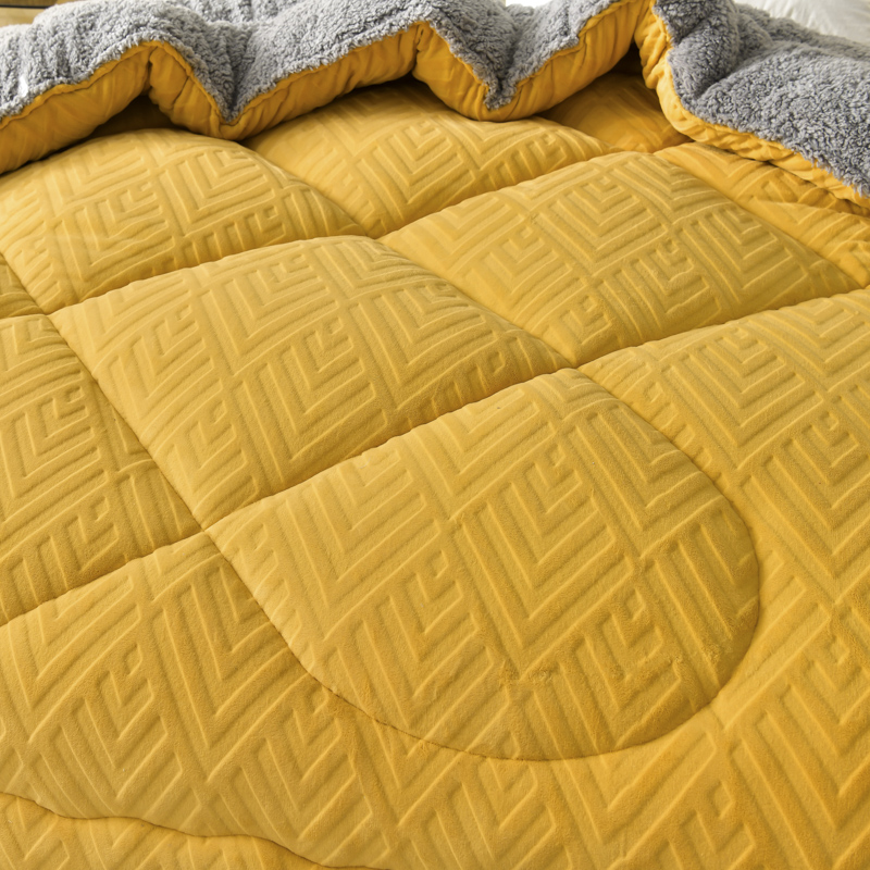 • 91家纺网 家纺一手货源 找家纺 锦逸家居 2025新款剪花牛奶绒冬被纯色冬被雕花牛奶绒冬被被子被芯春秋被 柠檬黄