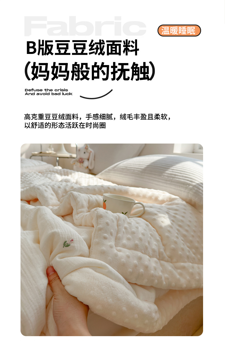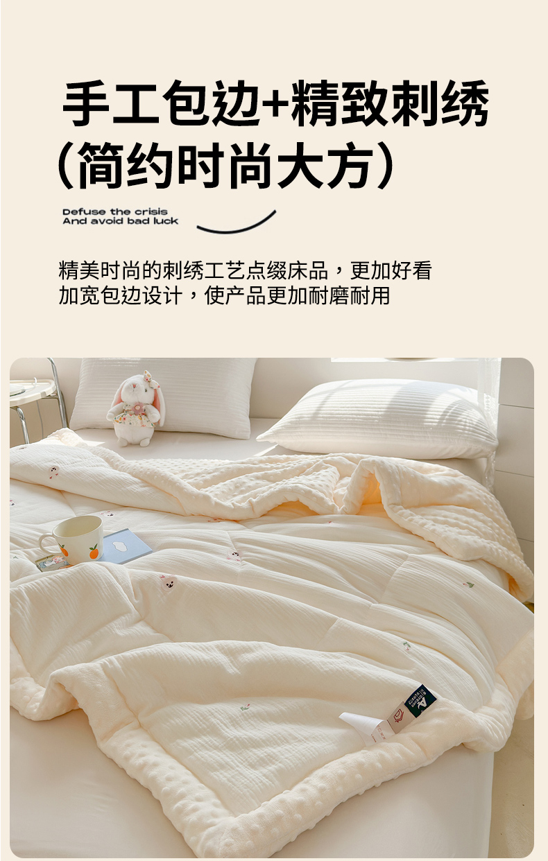 商品名称:木楌家居 2025新款全棉A类皱皱纱刺绣手包边豆豆被 芊朵
