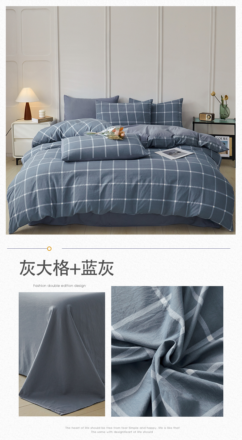 (总)盛秋家纺 2025新款亲肤格子水洗棉条纹格子四件套【简约风】,保罗+中灰,博克+蓝灰,咖大格+奶茶,抹茶+果绿,朵拉+海清,洛卡+中灰,灰大格+蓝灰,简约+海清,绿大格+明灰,蓝大格+宾利蓝,蓝小格+蓝灰,黄小格+云初黄,伯曼+灰绿,粉小格+奶油粉,格瑞斯+中灰,黑灰中条+高级灰,灰苏条+蓝灰,蓝调+海清,蓝灰中条+海清,蓝苏条+天空蓝,罗格+中灰,莫拉绿+海清,泡芙黄+奶茶,瑞克+中灰,芝士条纹+云初黄