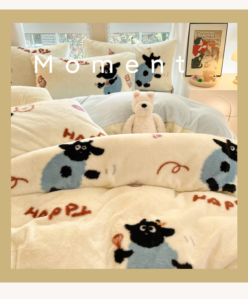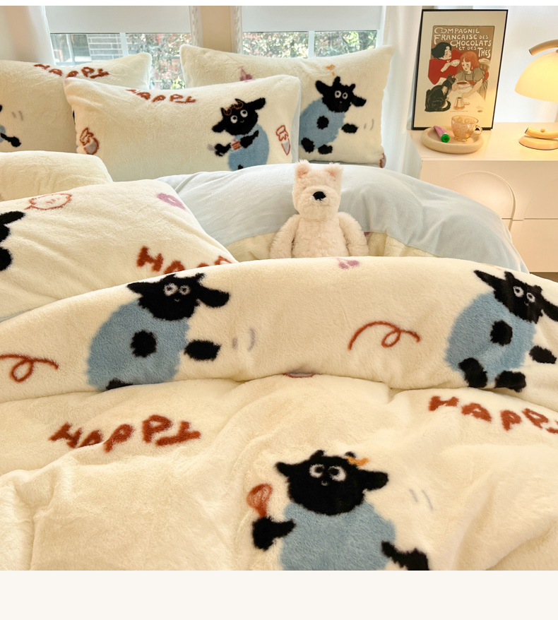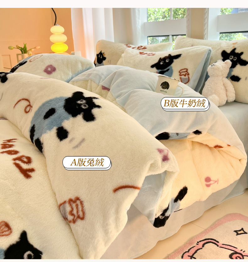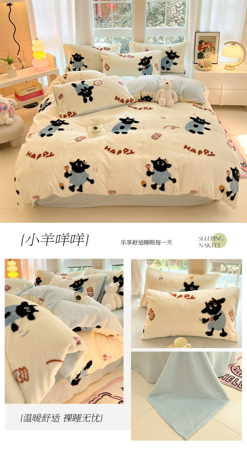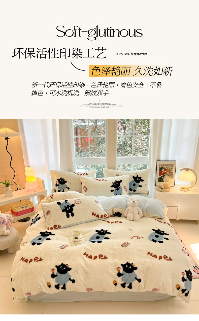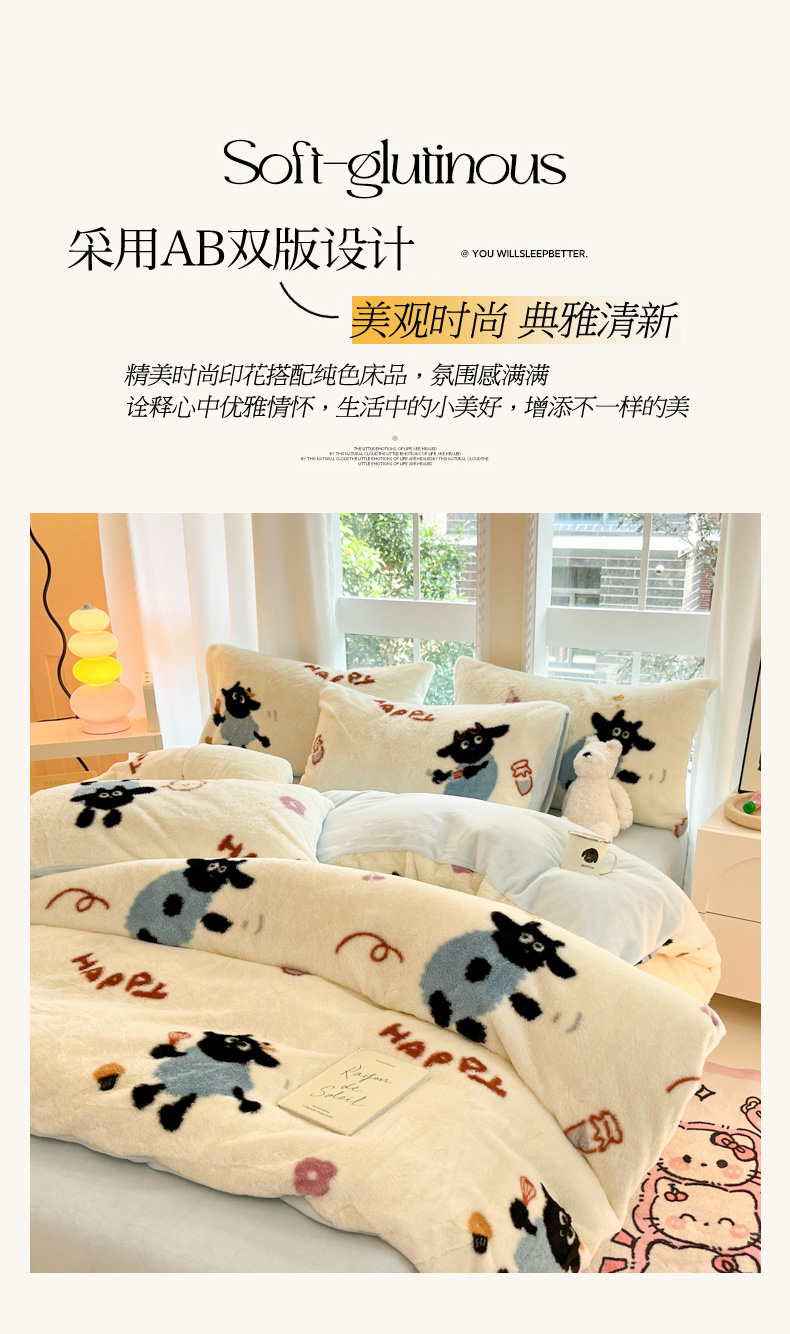 慕澄家纺 2024新款兔绒牛奶绒加厚保暖印花四件套 小羊咩咩