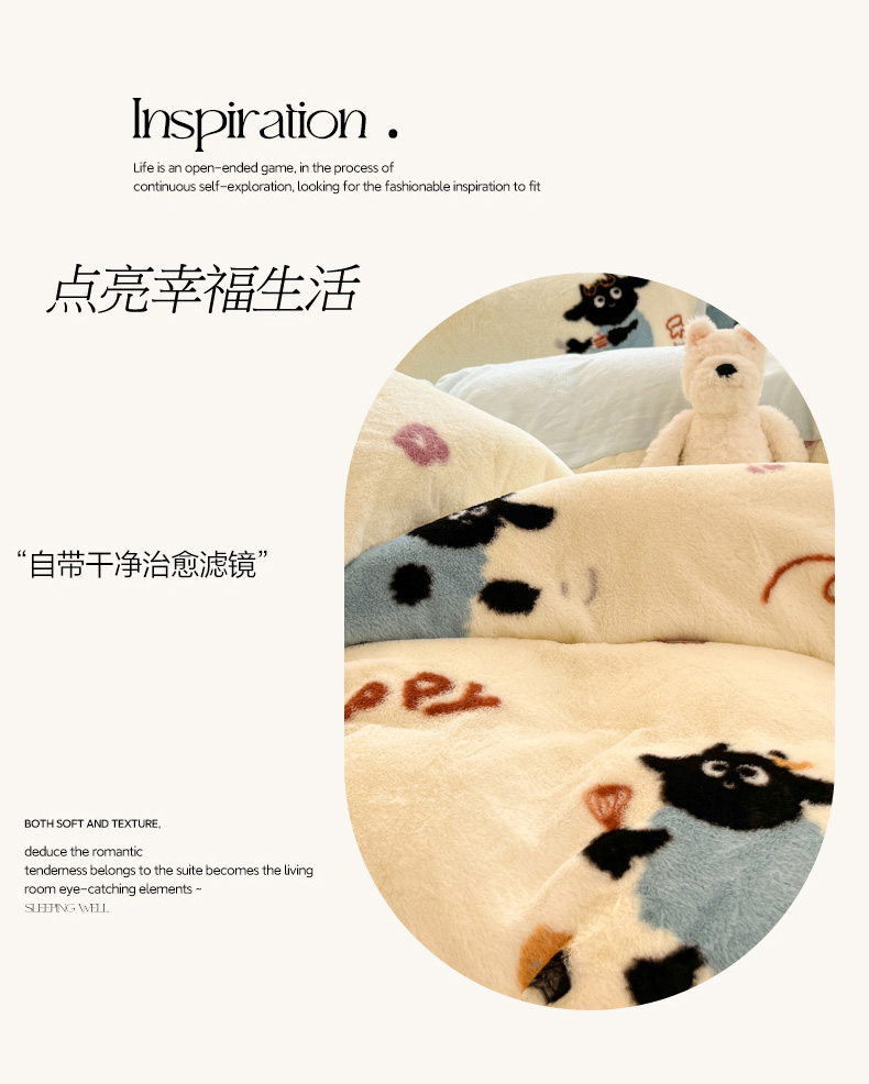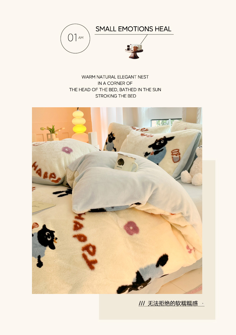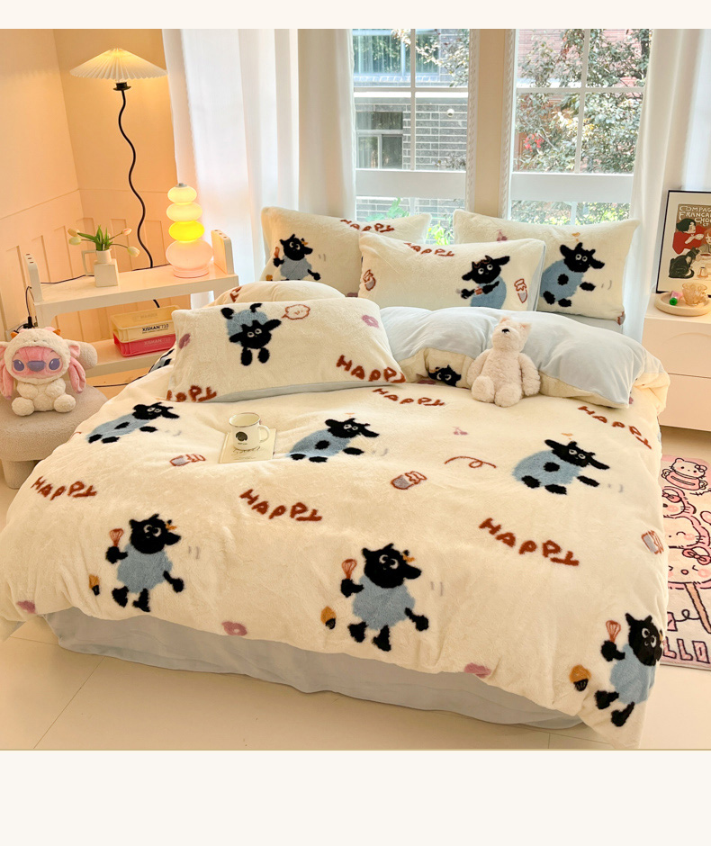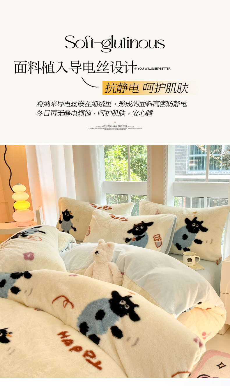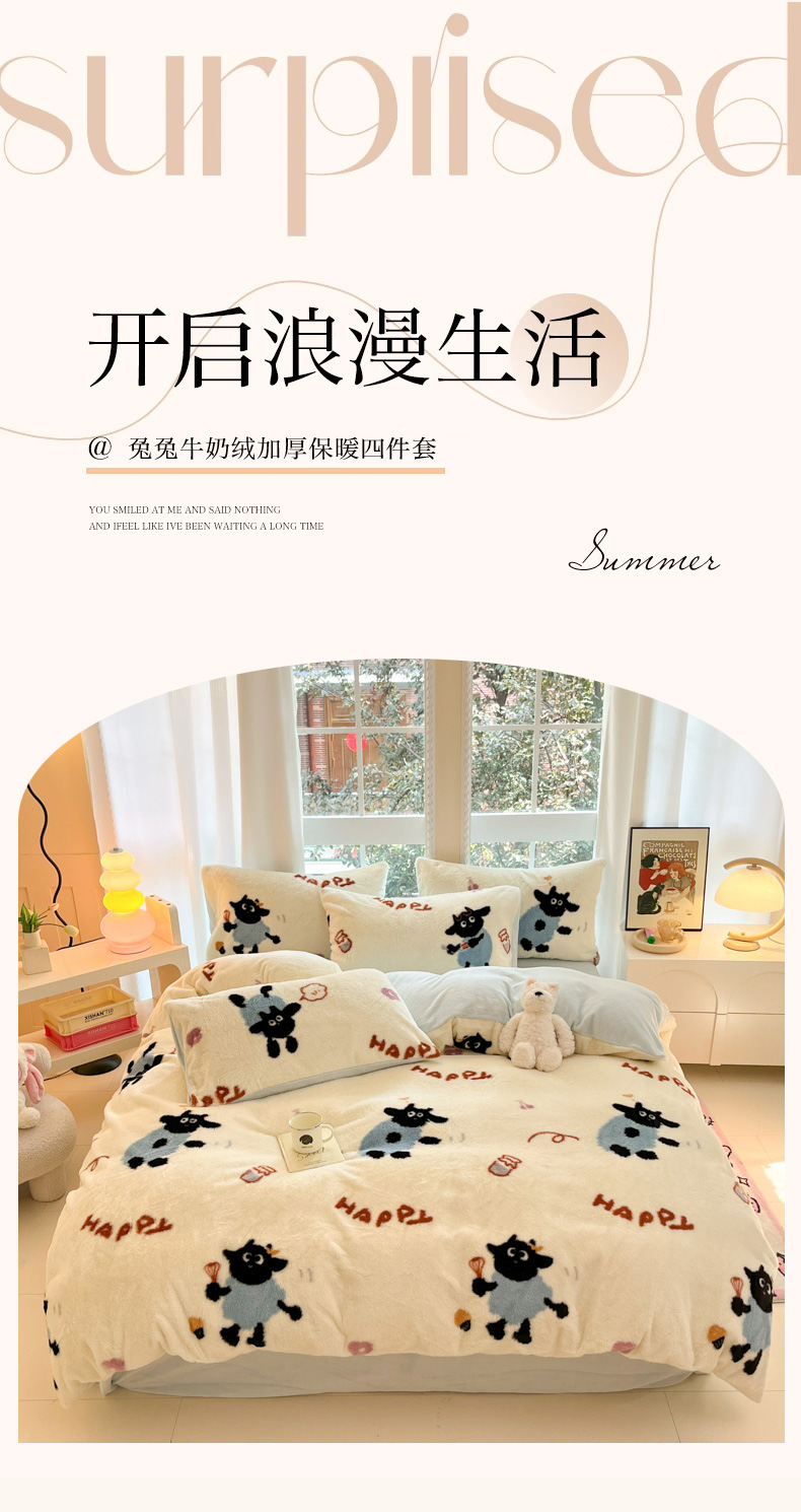 慕澄家纺 2024新款兔绒牛奶绒加厚保暖印花四件套 小羊咩咩