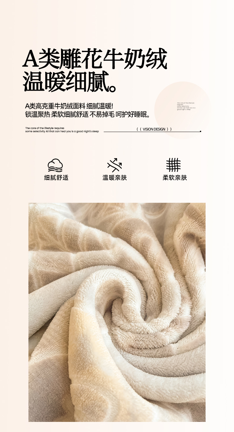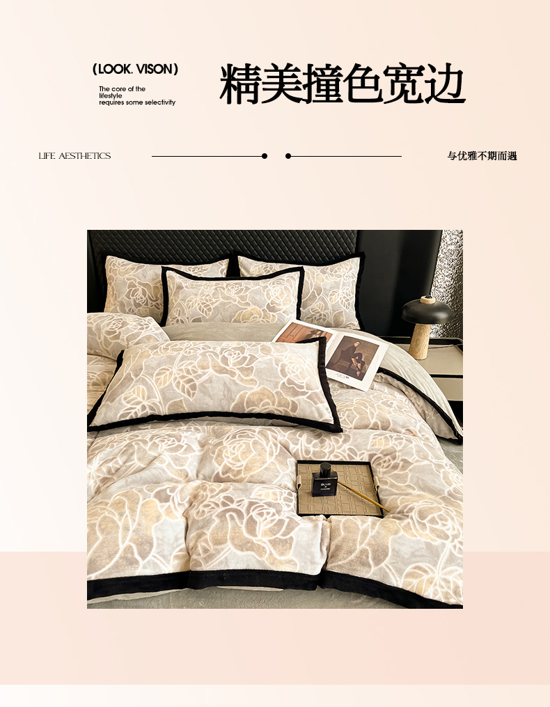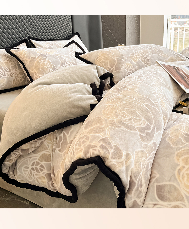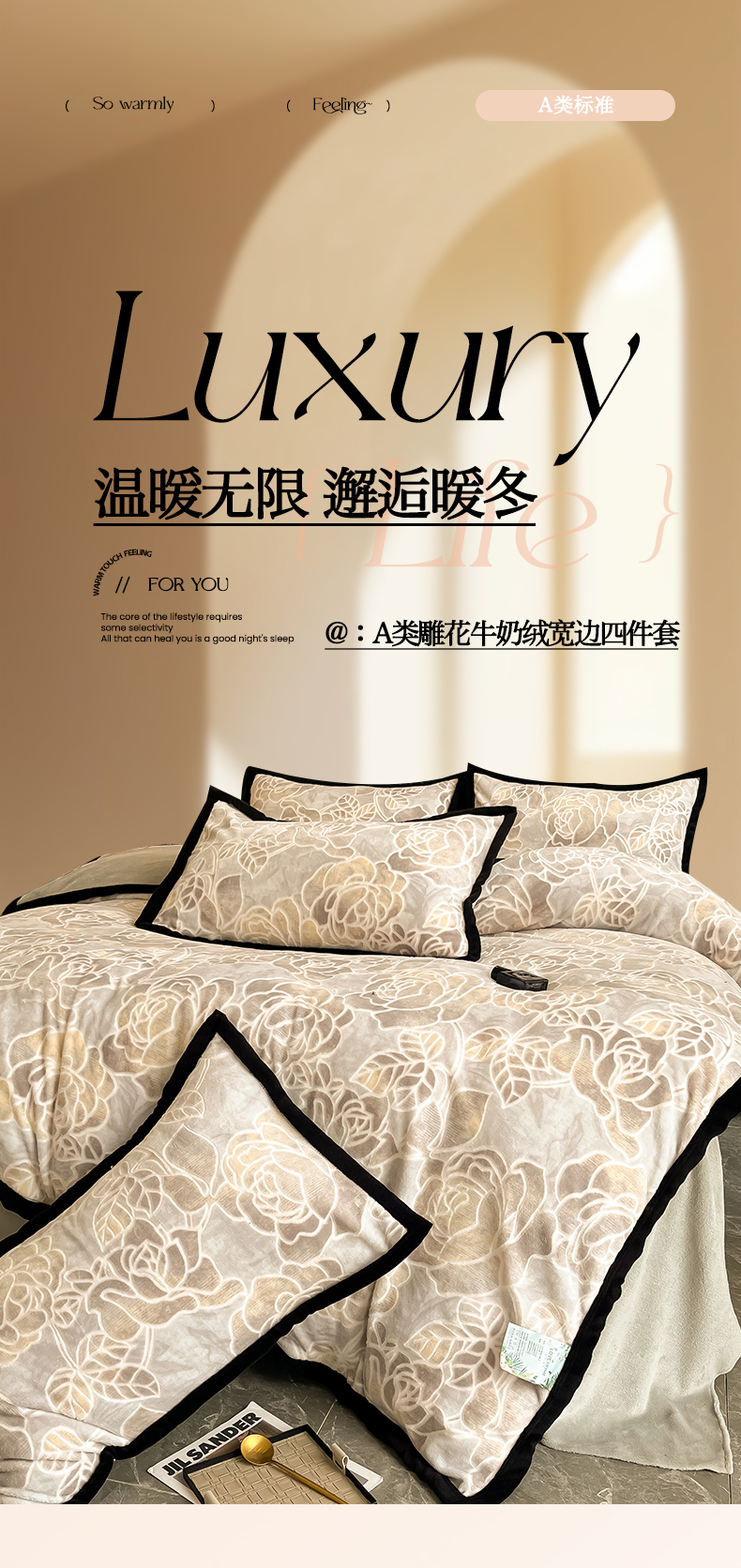 商品名称:(总)多乐家纺 2024新款高克重加厚保暖立体雕花牛奶绒宽包边四件套