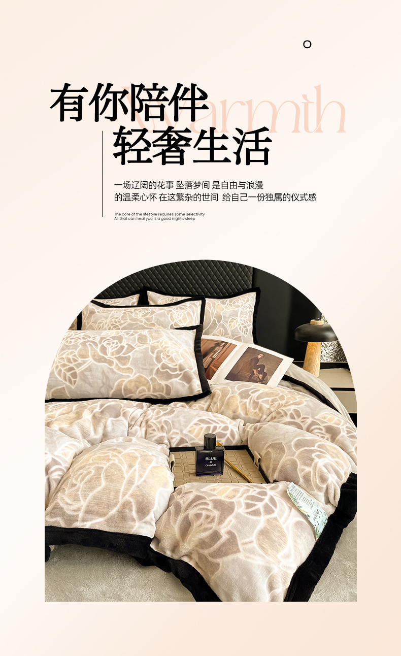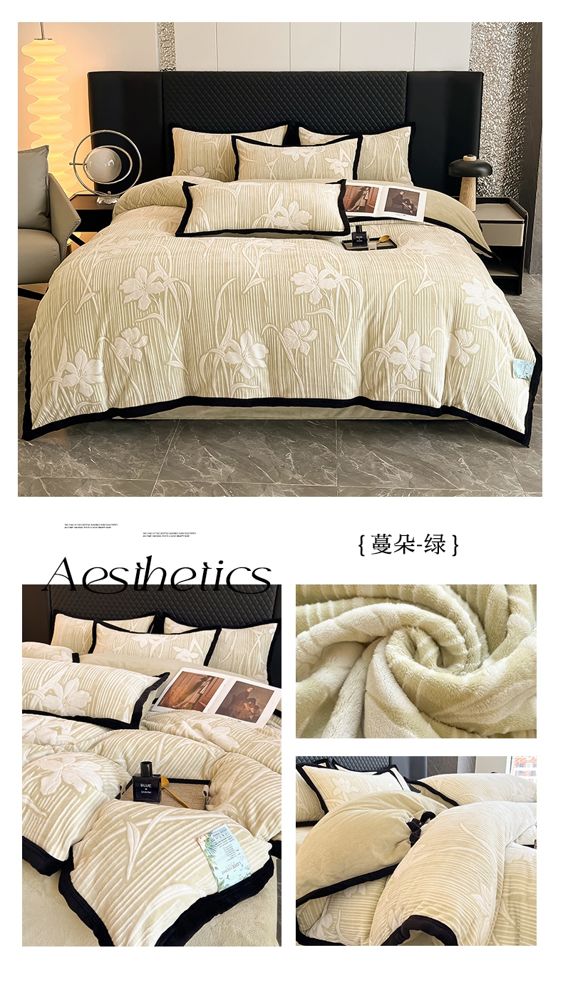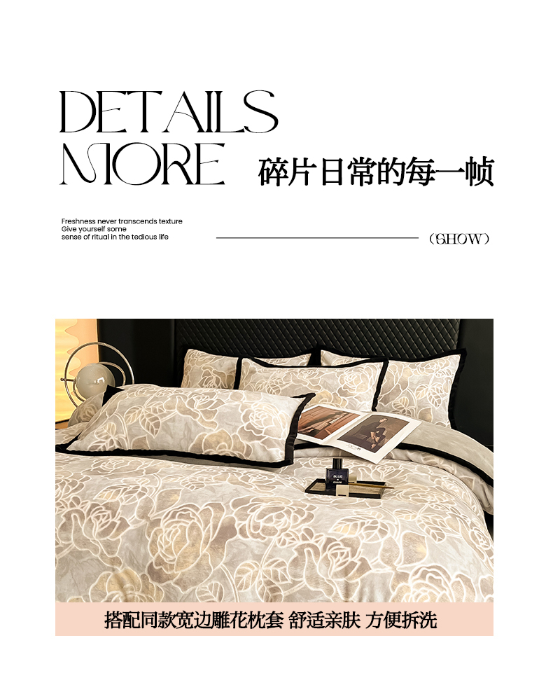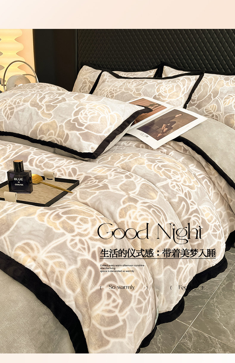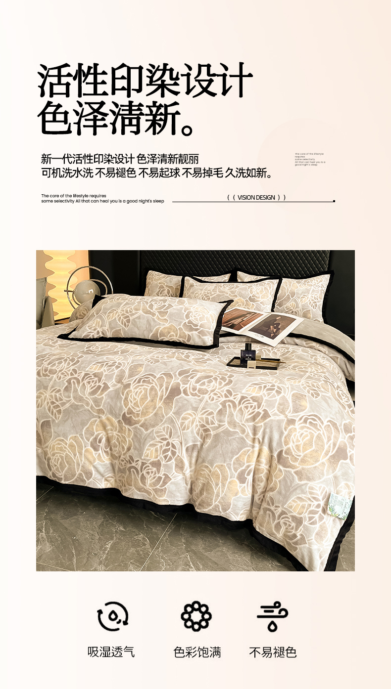 商品名称:(总)多乐家纺 2024新款高克重加厚保暖立体雕花牛奶绒宽包边四件套
