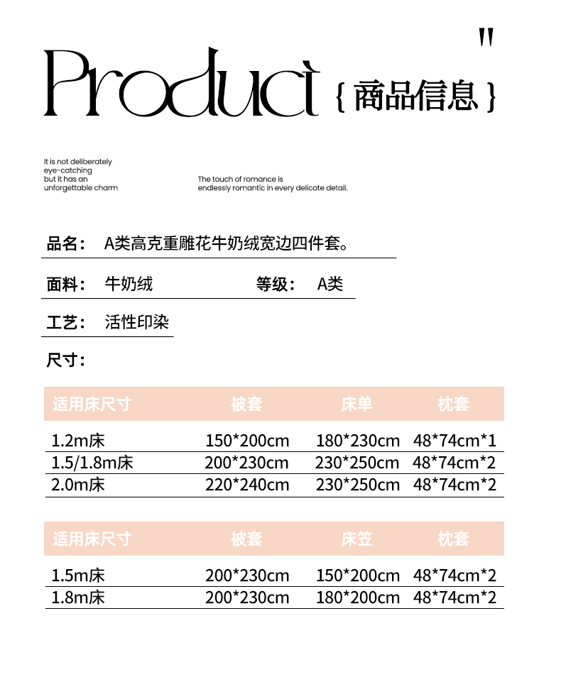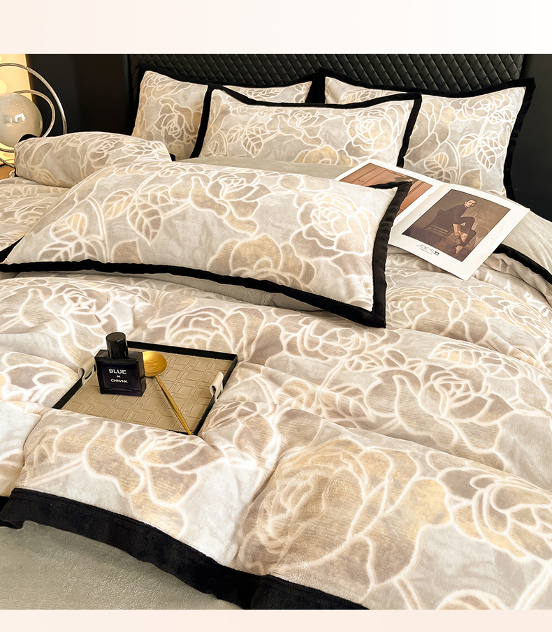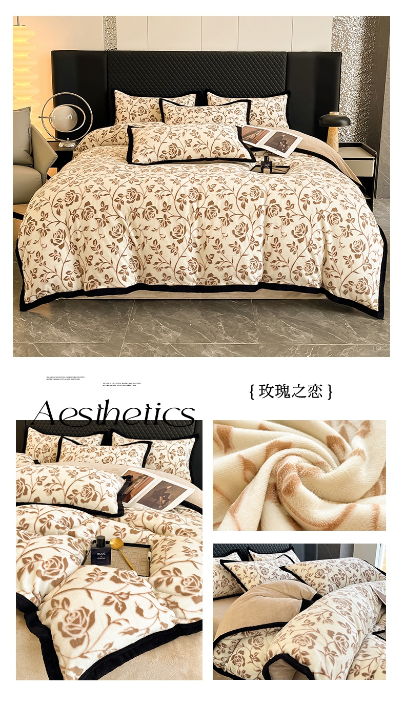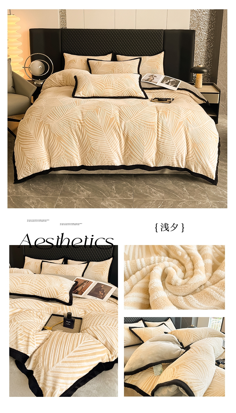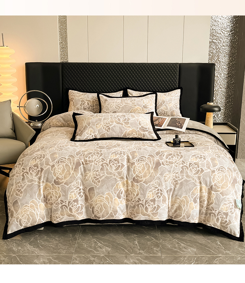 商品名称:(总)多乐家纺 2024新款高克重加厚保暖立体雕花牛奶绒宽包边四件套
