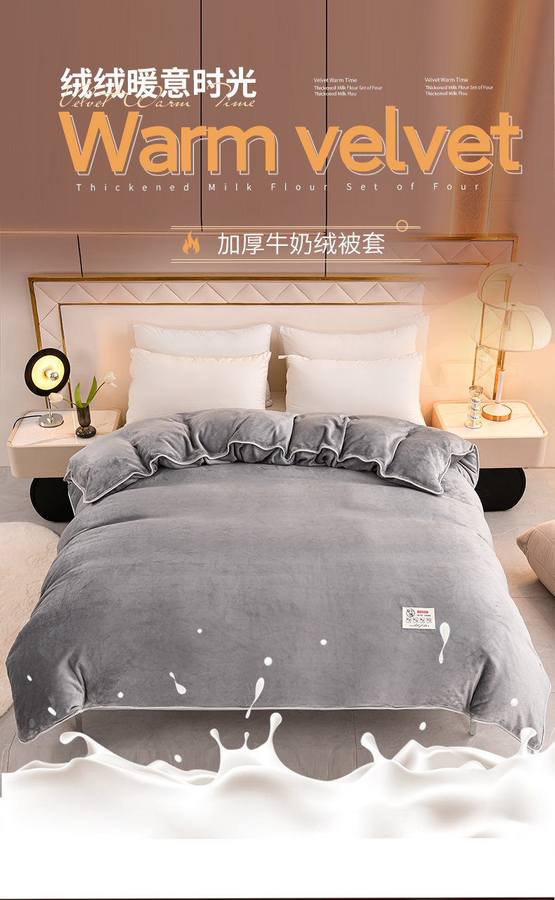 商品名称:绒品荟家纺 2025新款加厚牛奶绒单被套金貂绒法莱绒冬季法兰绒高克重被罩 雾霾灰