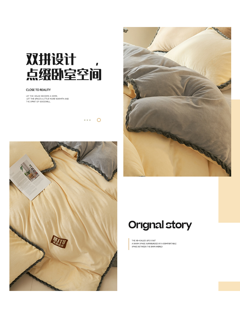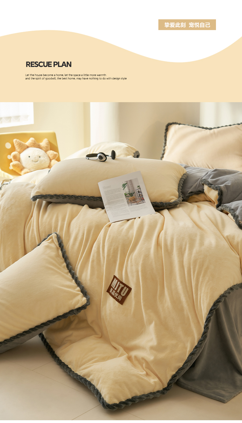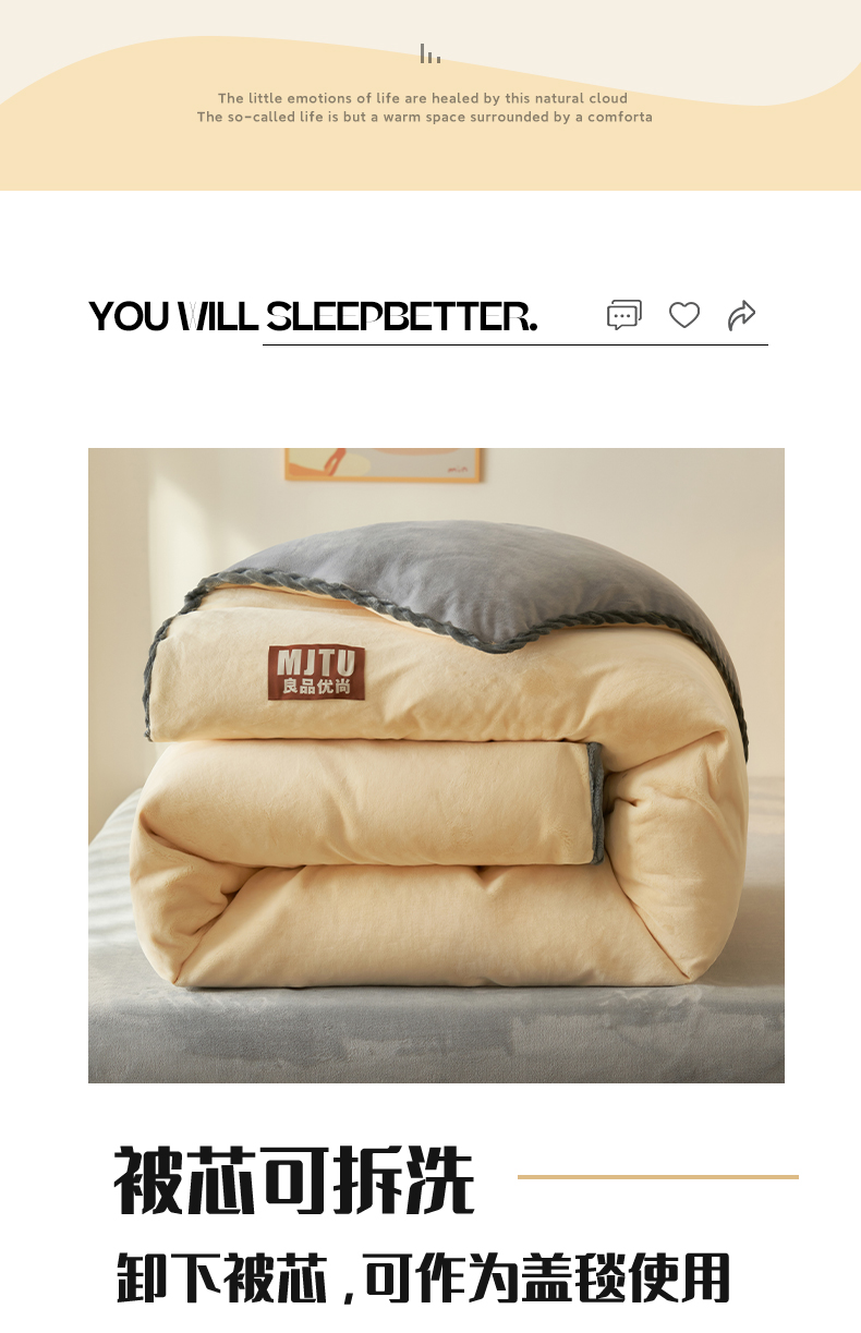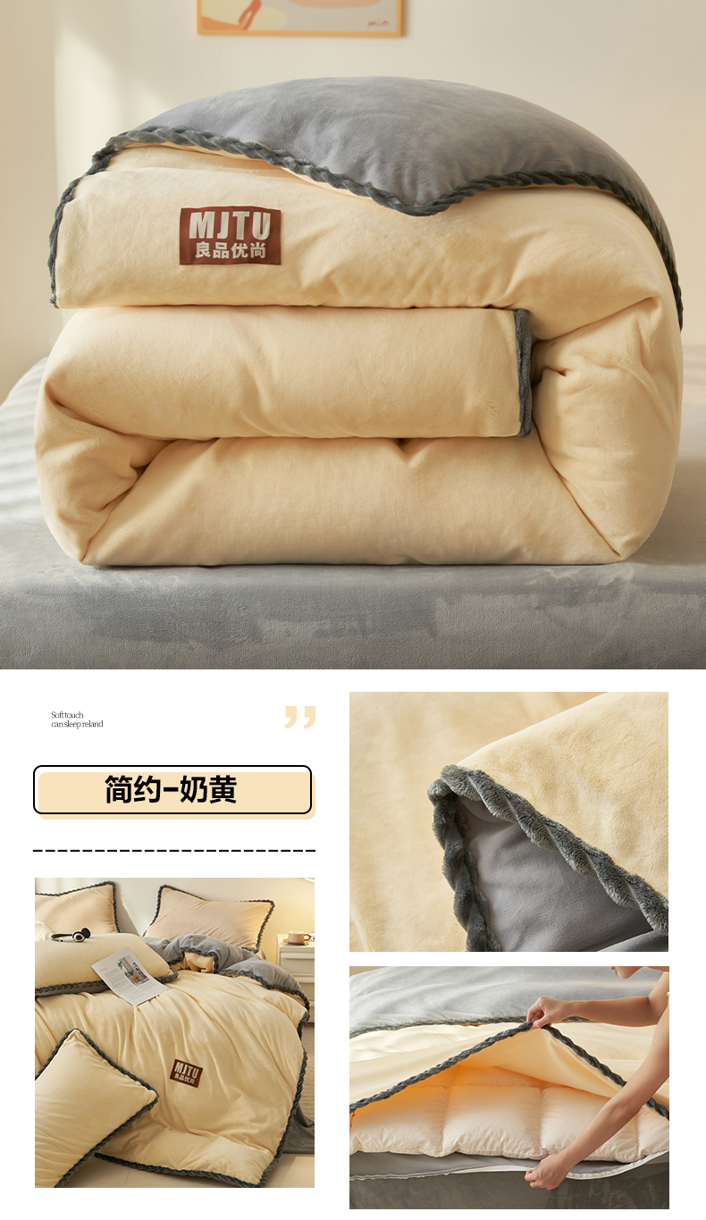 • 91家纺网 家纺一手货源 找家纺 2024新款日系简约小包边牛奶绒可拆洗冬被 被子被芯 简约-奶黄