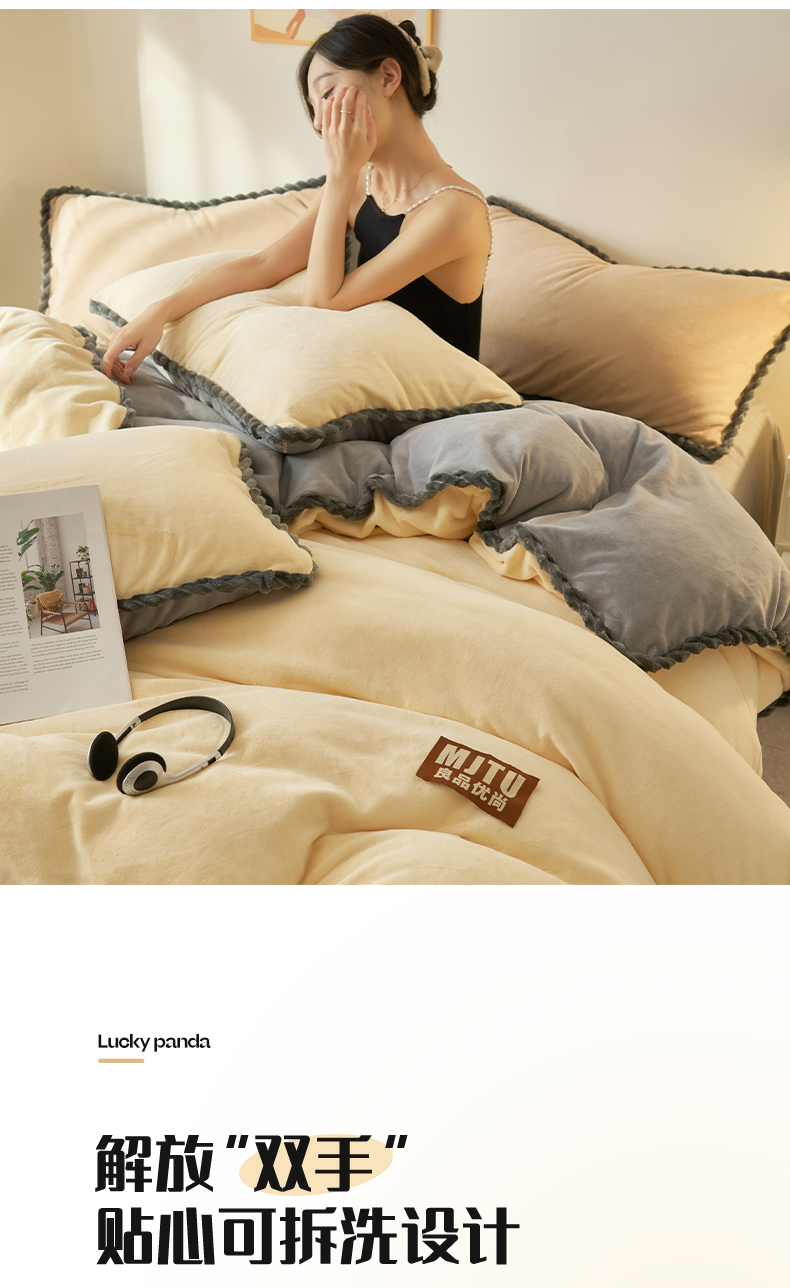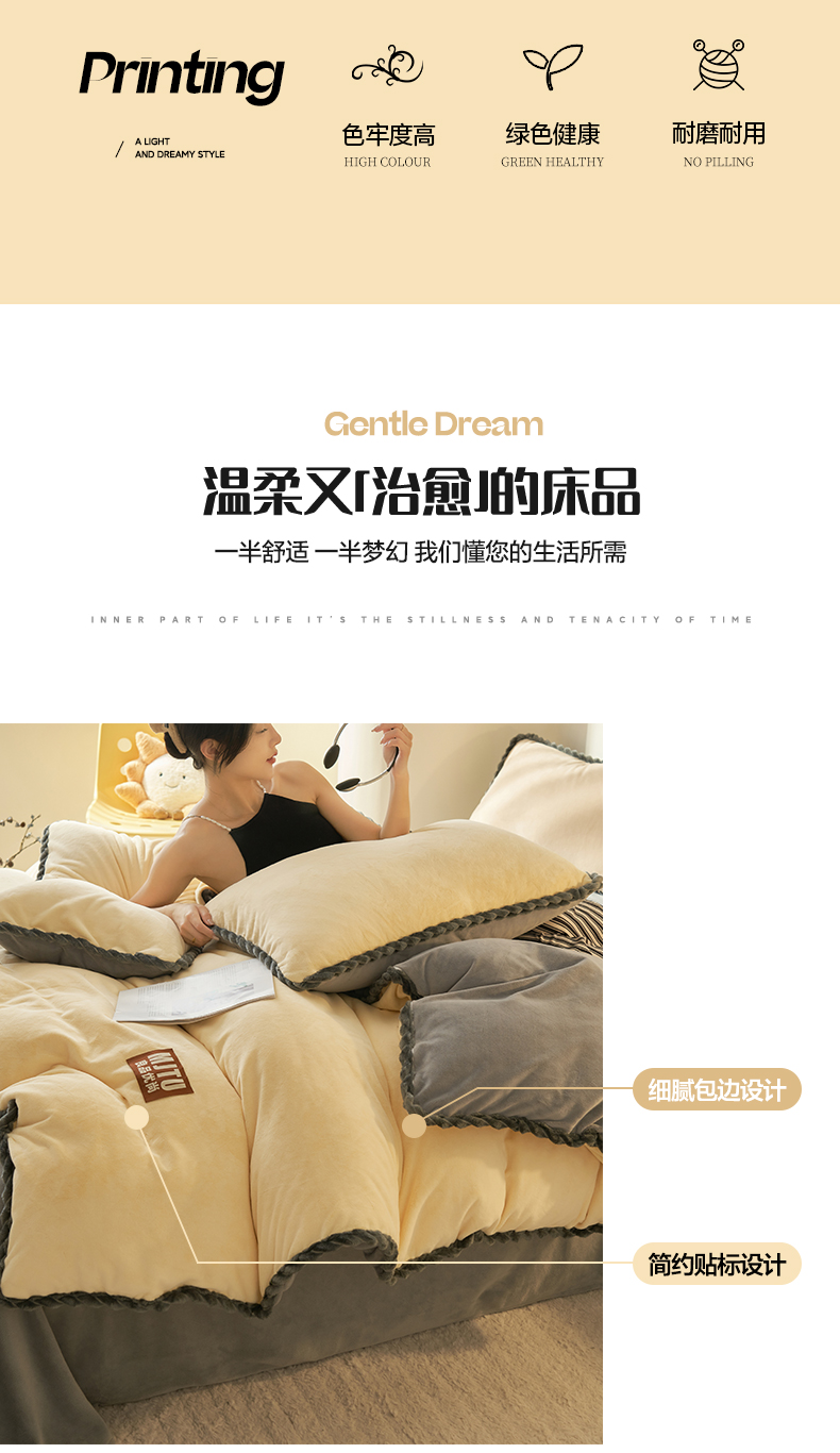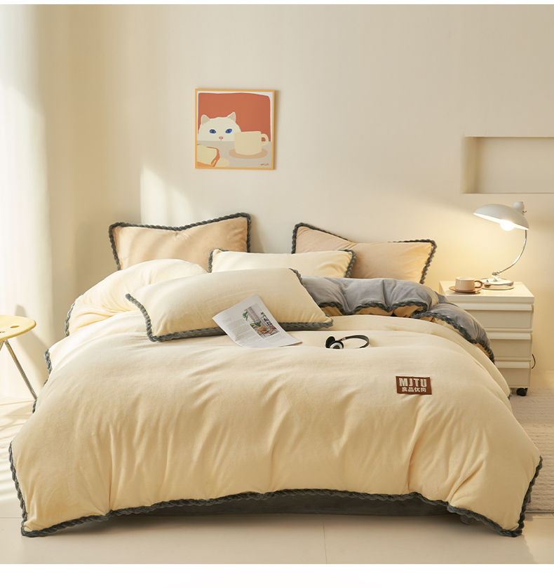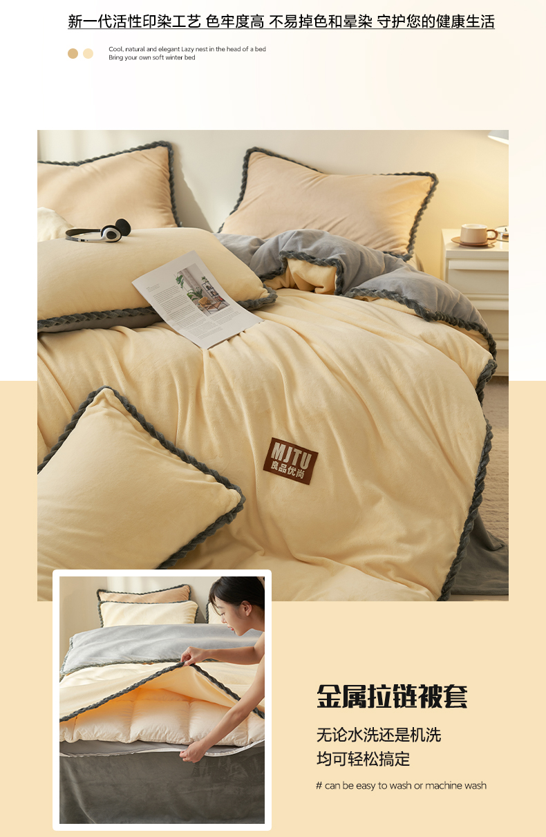 • 91家纺网 家纺一手货源 找家纺 2024新款日系简约小包边牛奶绒可拆洗冬被 被子被芯 简约-奶黄