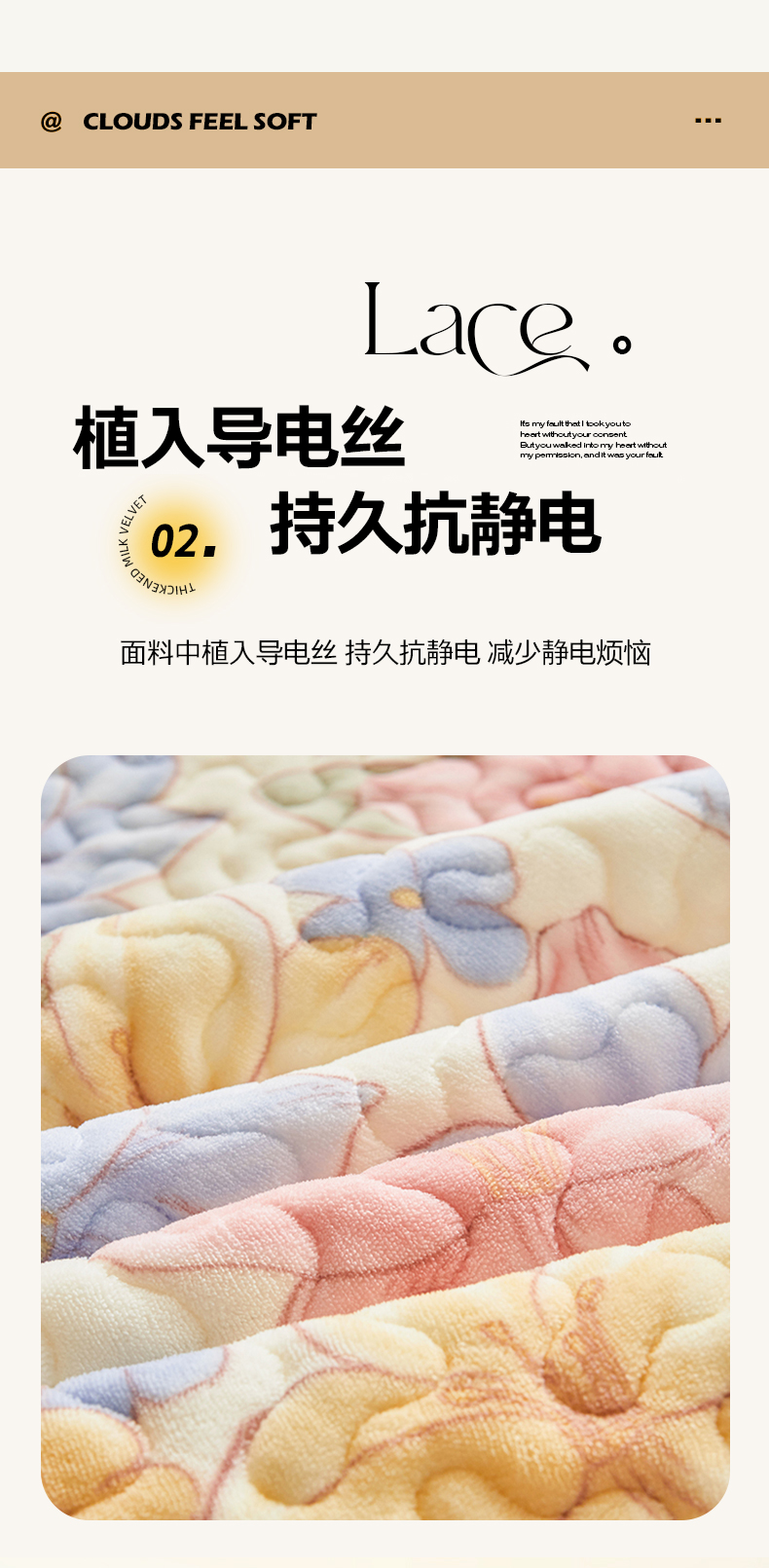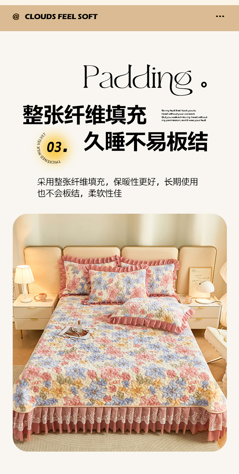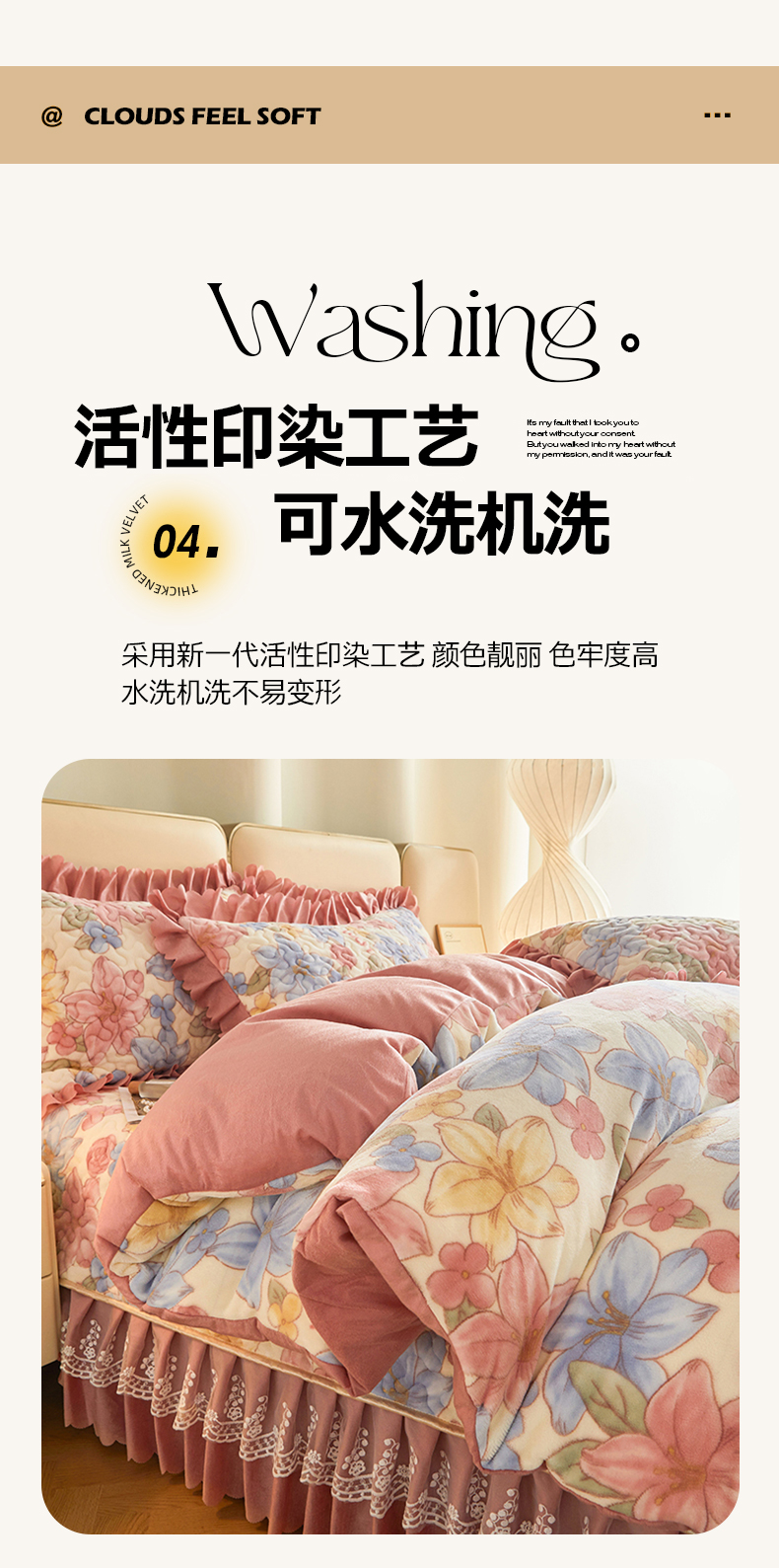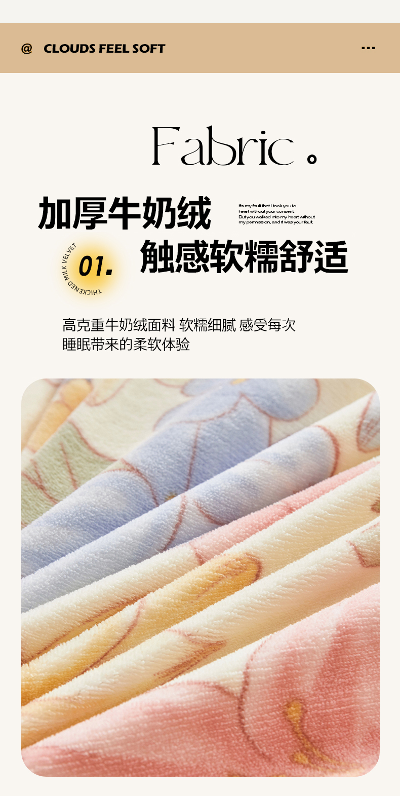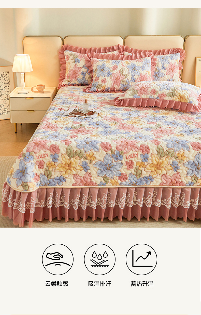 • 91家纺网 家纺一手货源 找家纺 艾裙海 2025新款高克重加厚保暖A类牛奶绒夹棉床盖系列四件套 花开物语