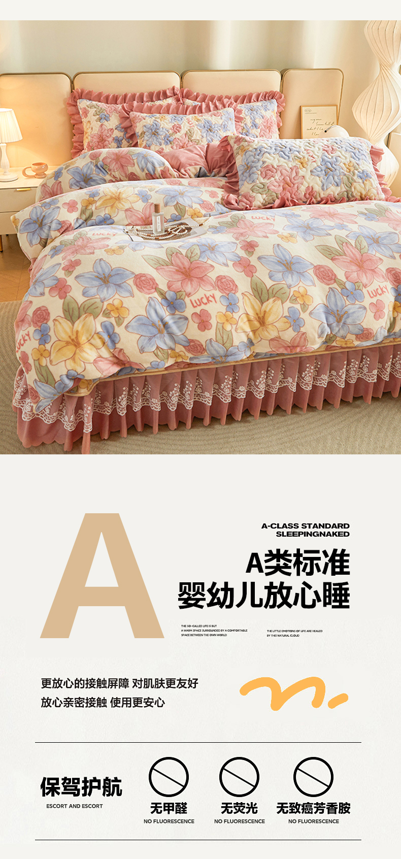 艾裙海 2025新款高克重加厚保暖A类牛奶绒夹棉床盖系列四件套 花开物语