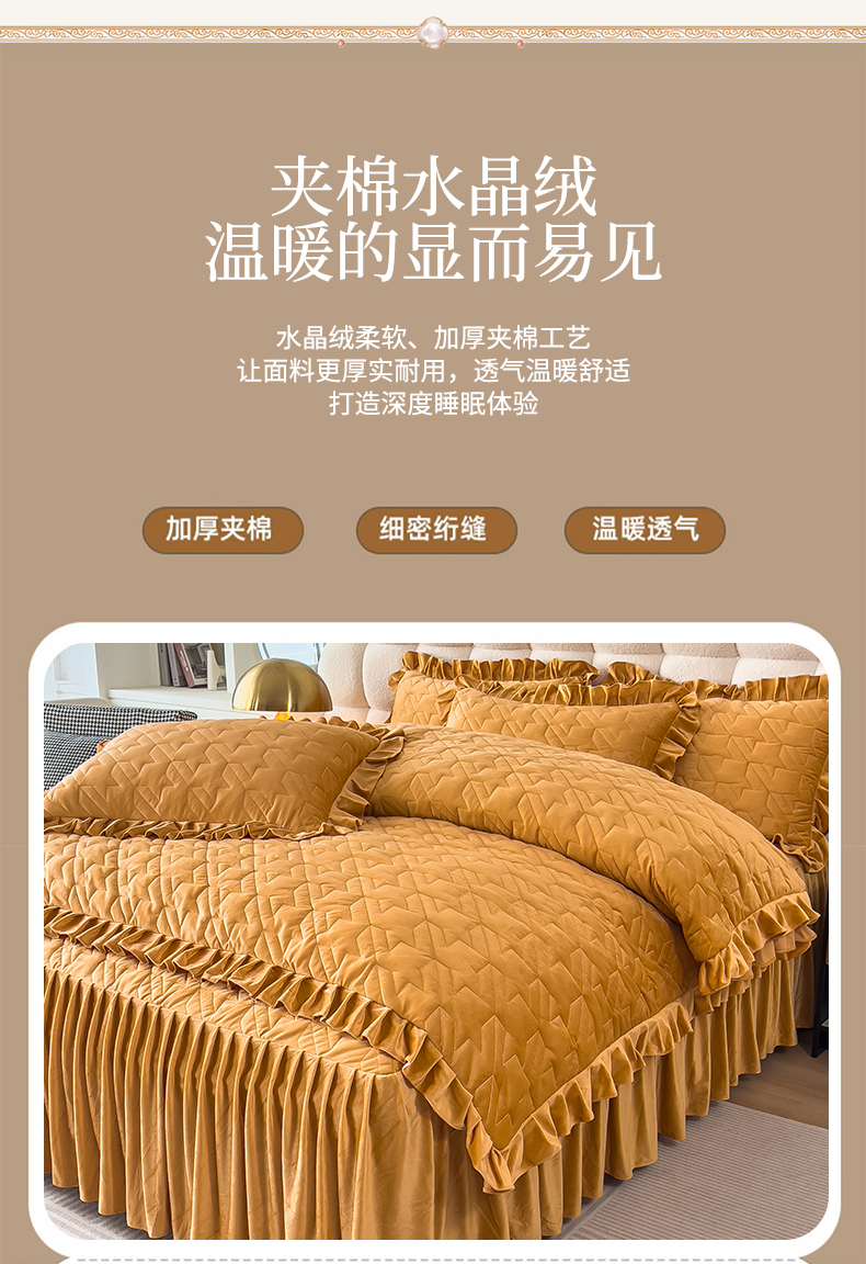 当前位置: 91家纺网 > 商品网购 > 床品套件 > 四件套 > 其它四件套 > 屹成家纺 2024新款水晶绒夹棉绗缝千鸟格四件套 千鸟格-金驼