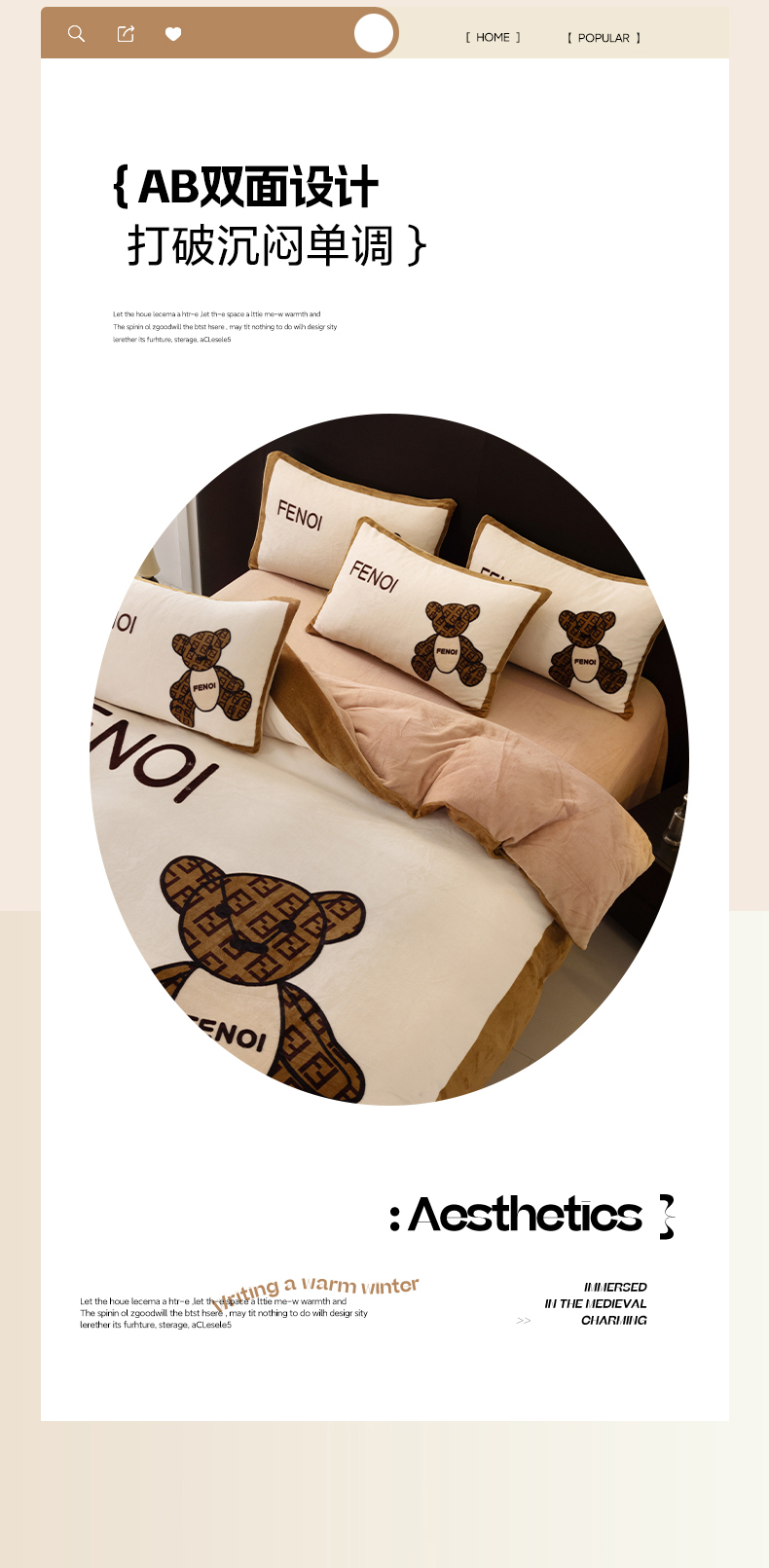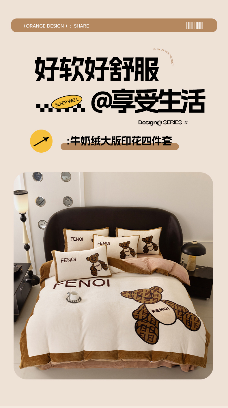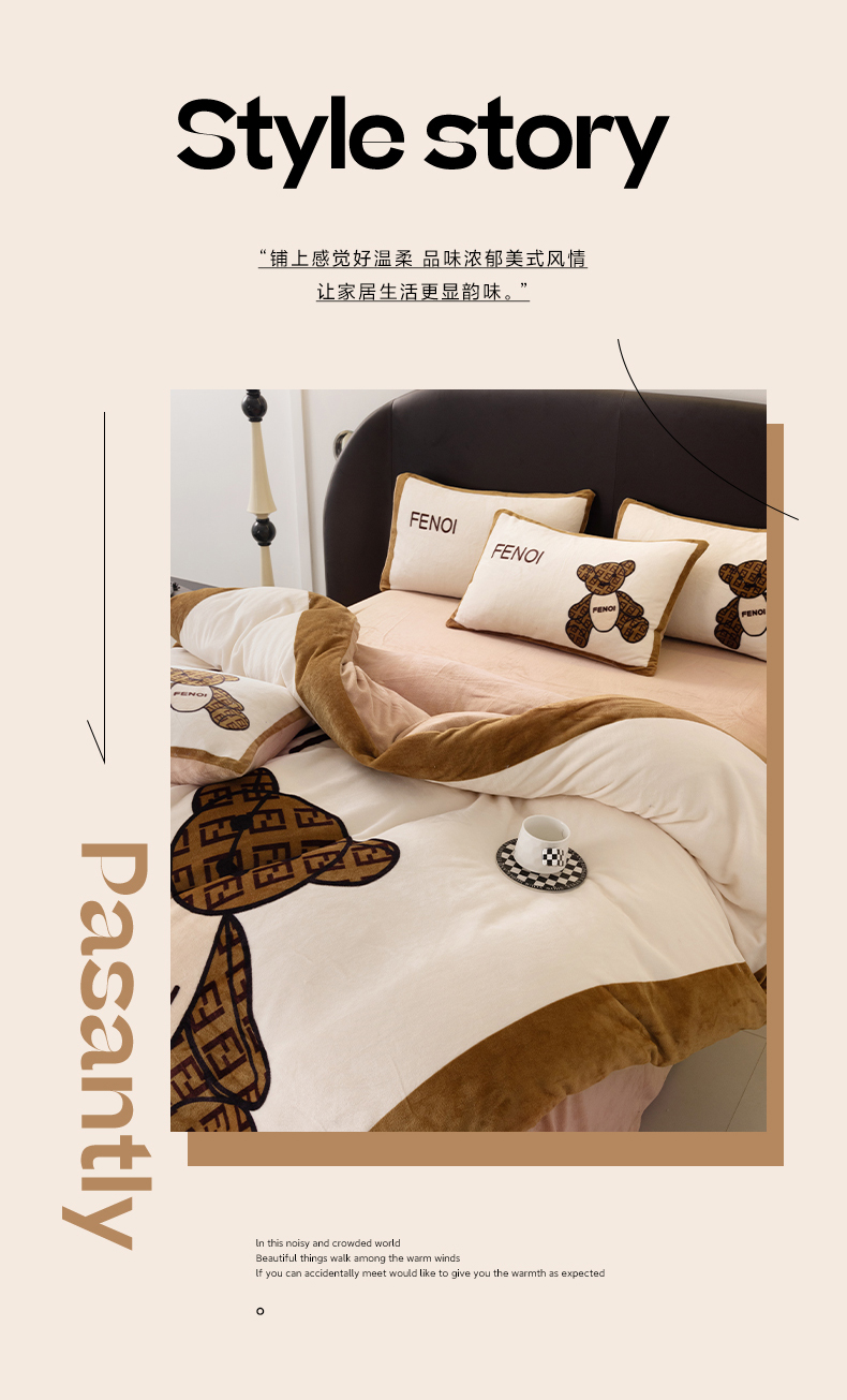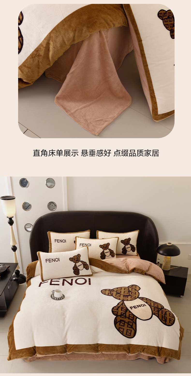 商品名称:色鬼布艺 2024新款高克重牛奶绒大版印花四件套 芬利熊