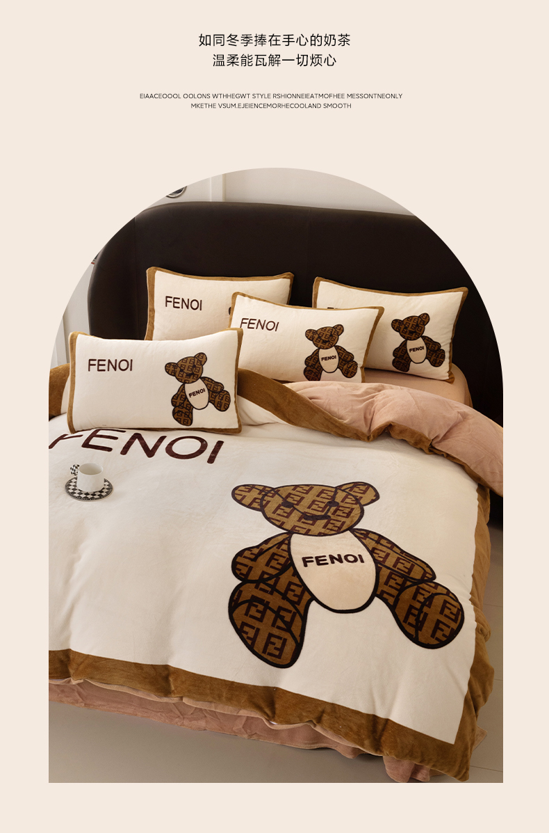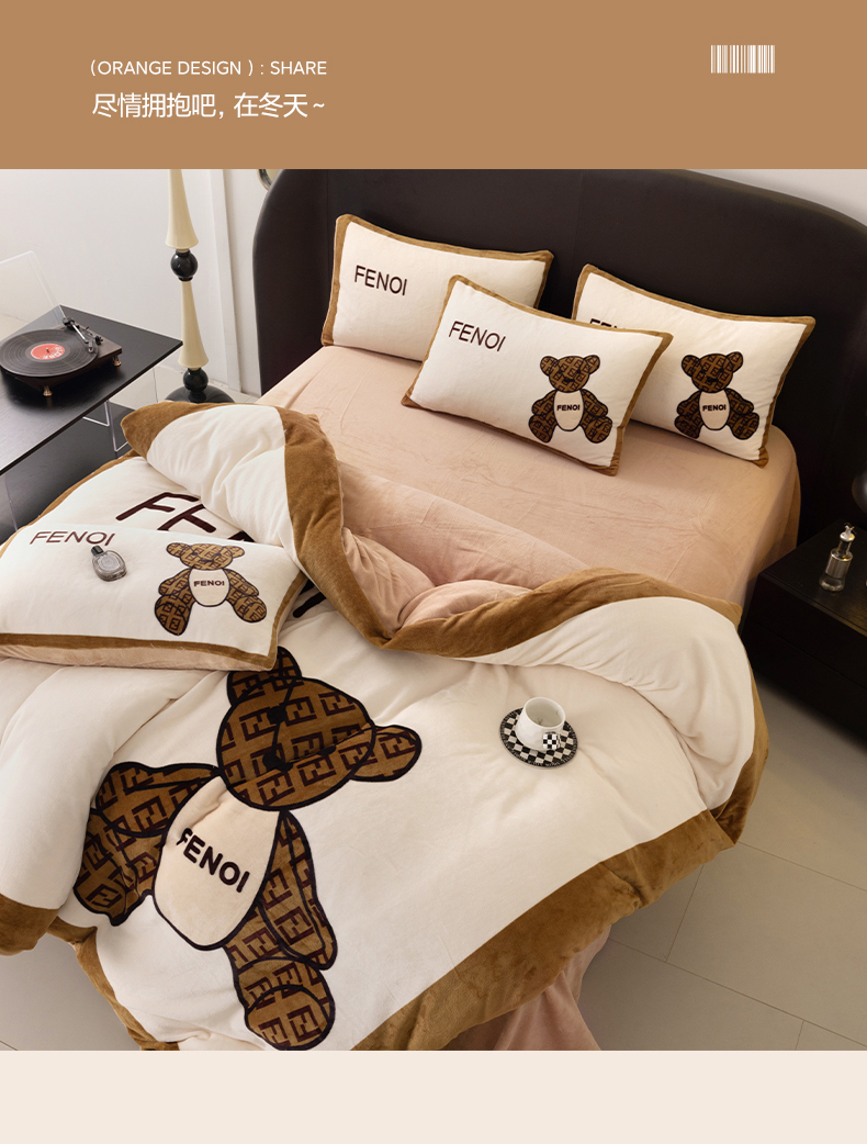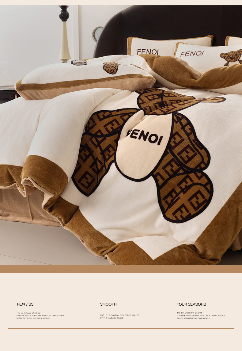 色鬼布艺 2024新款高克重牛奶绒大版印花四件套 芬利熊