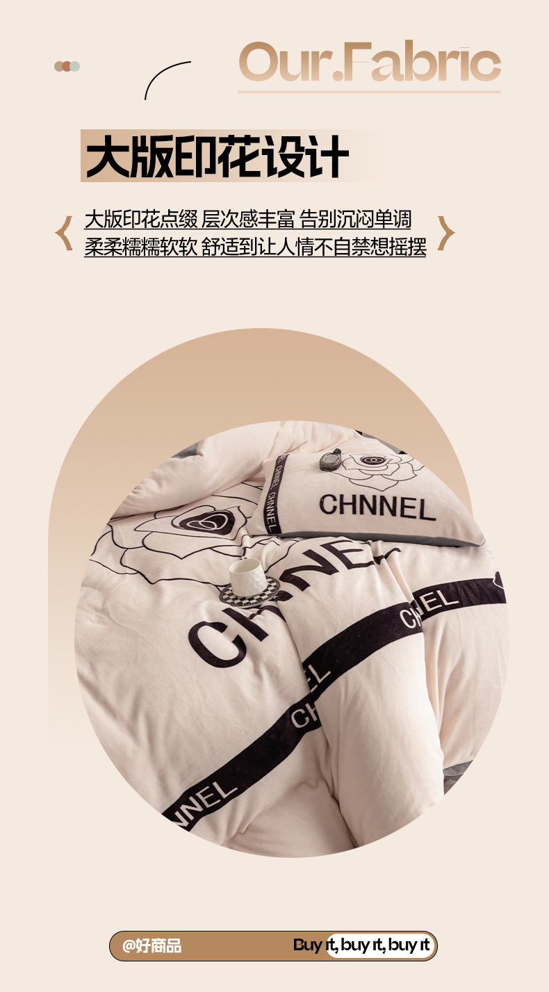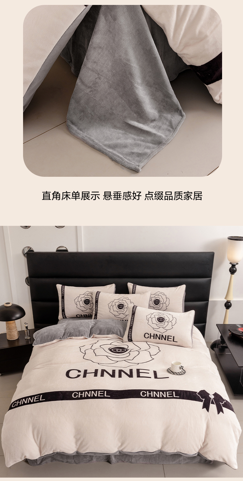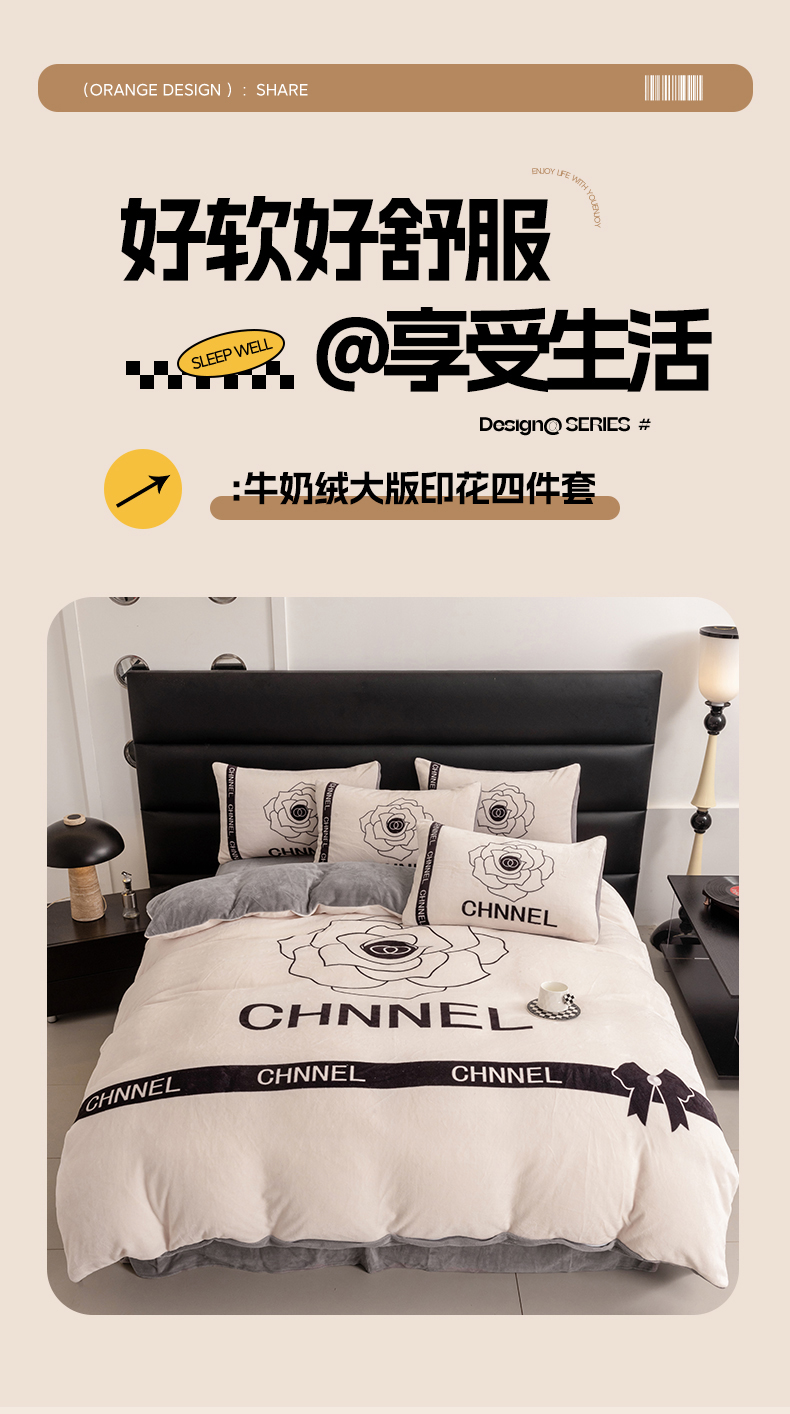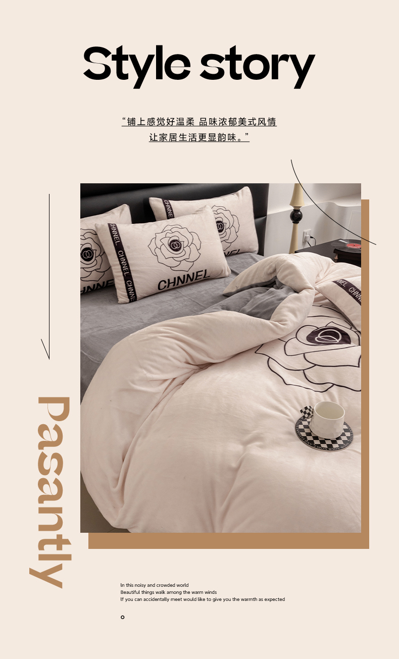 商品名称:色鬼布艺 2024新款高克重牛奶绒大版印花四件套 山茶花