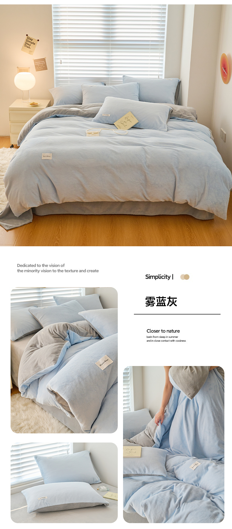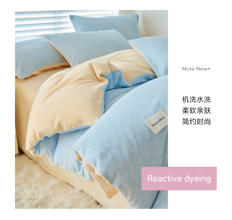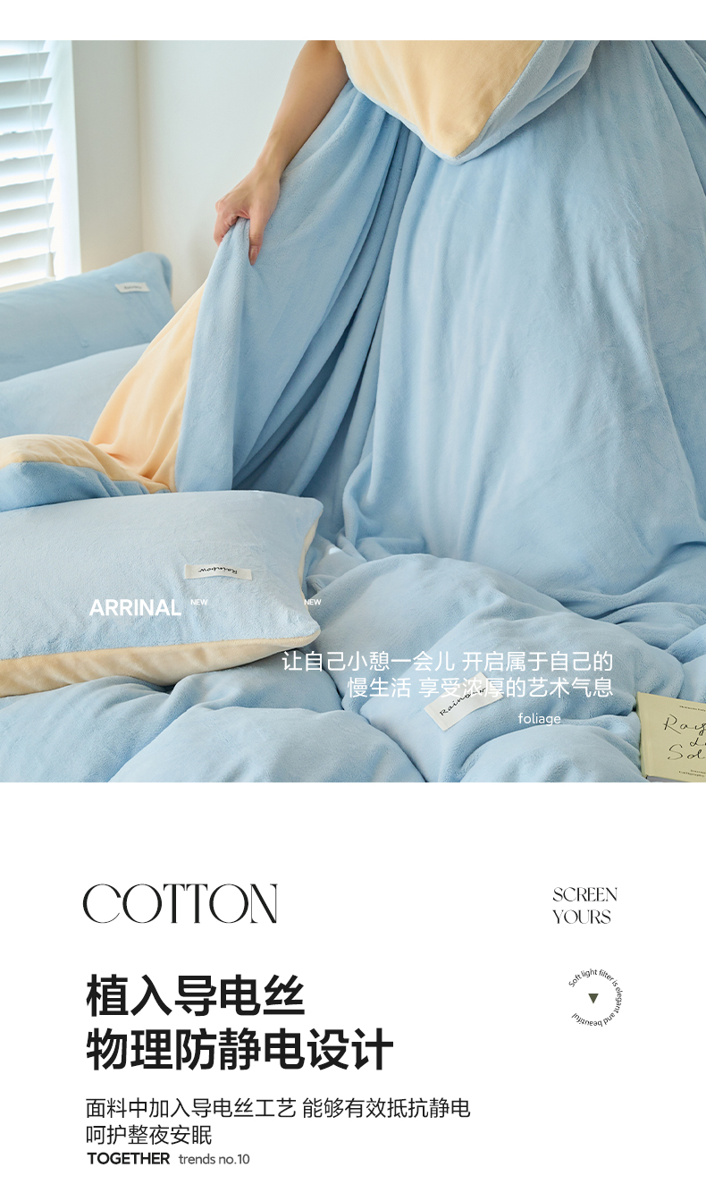 • 91家纺网 家纺一手货源 找家纺 晨曦家纺 2024新款ins简约风牛奶绒双拼单被套 雾蓝灰