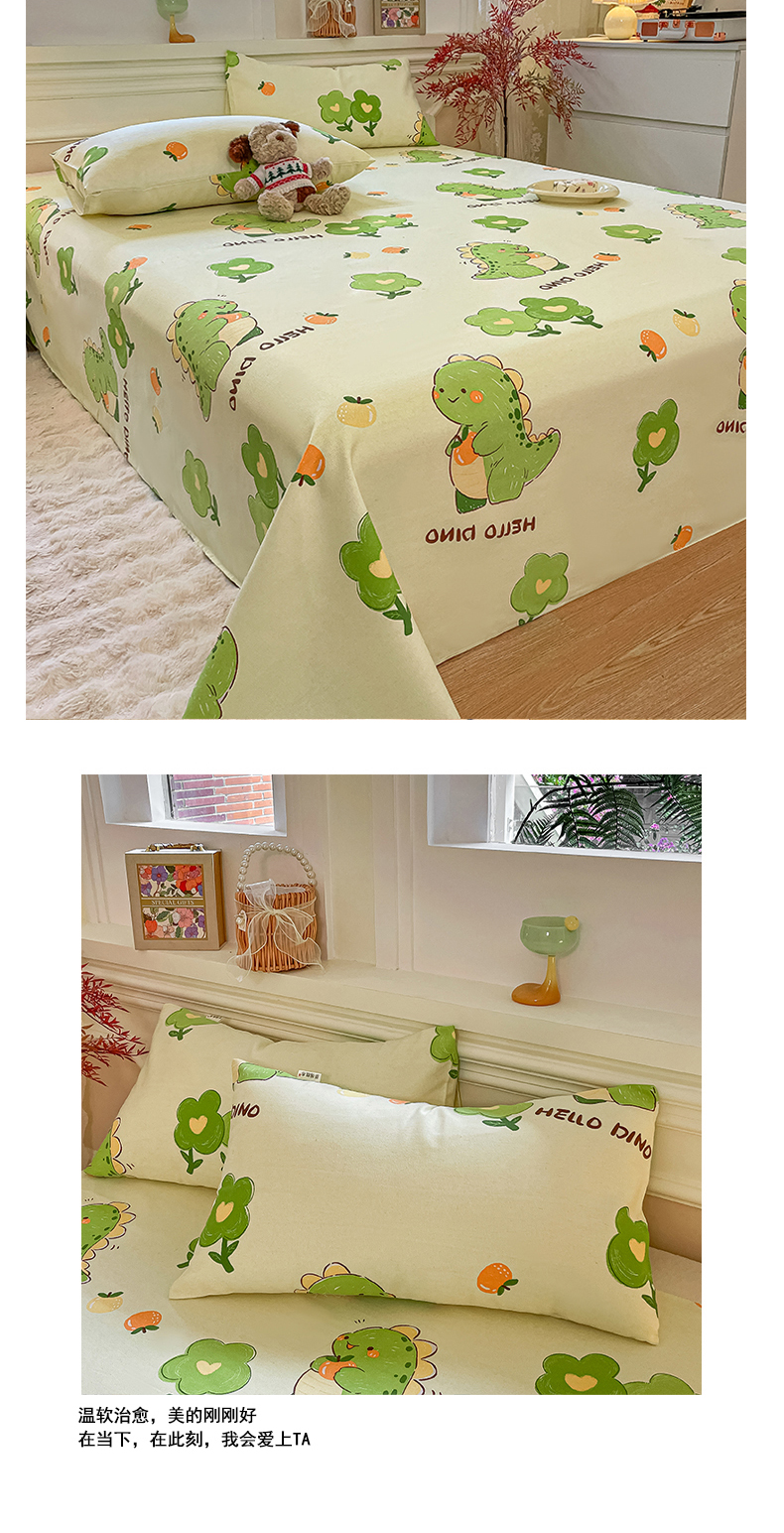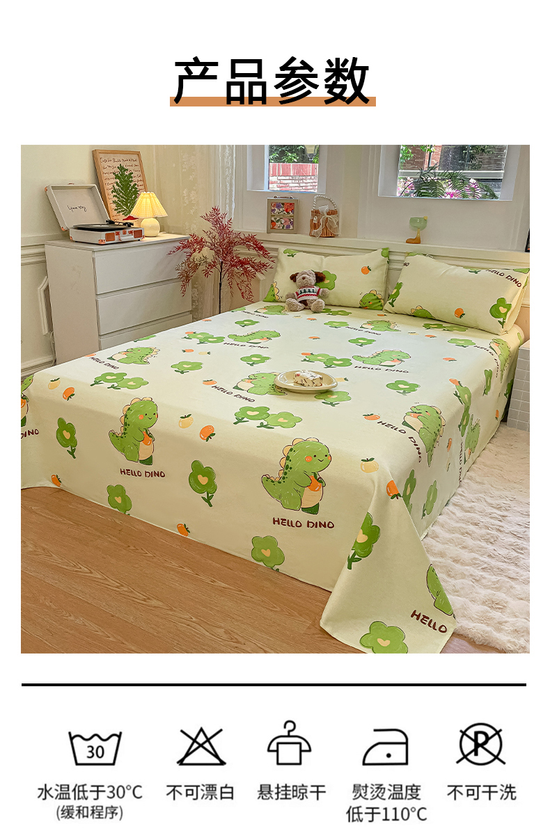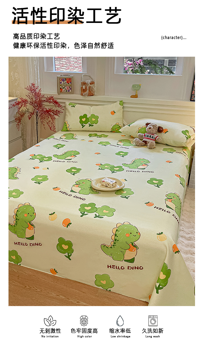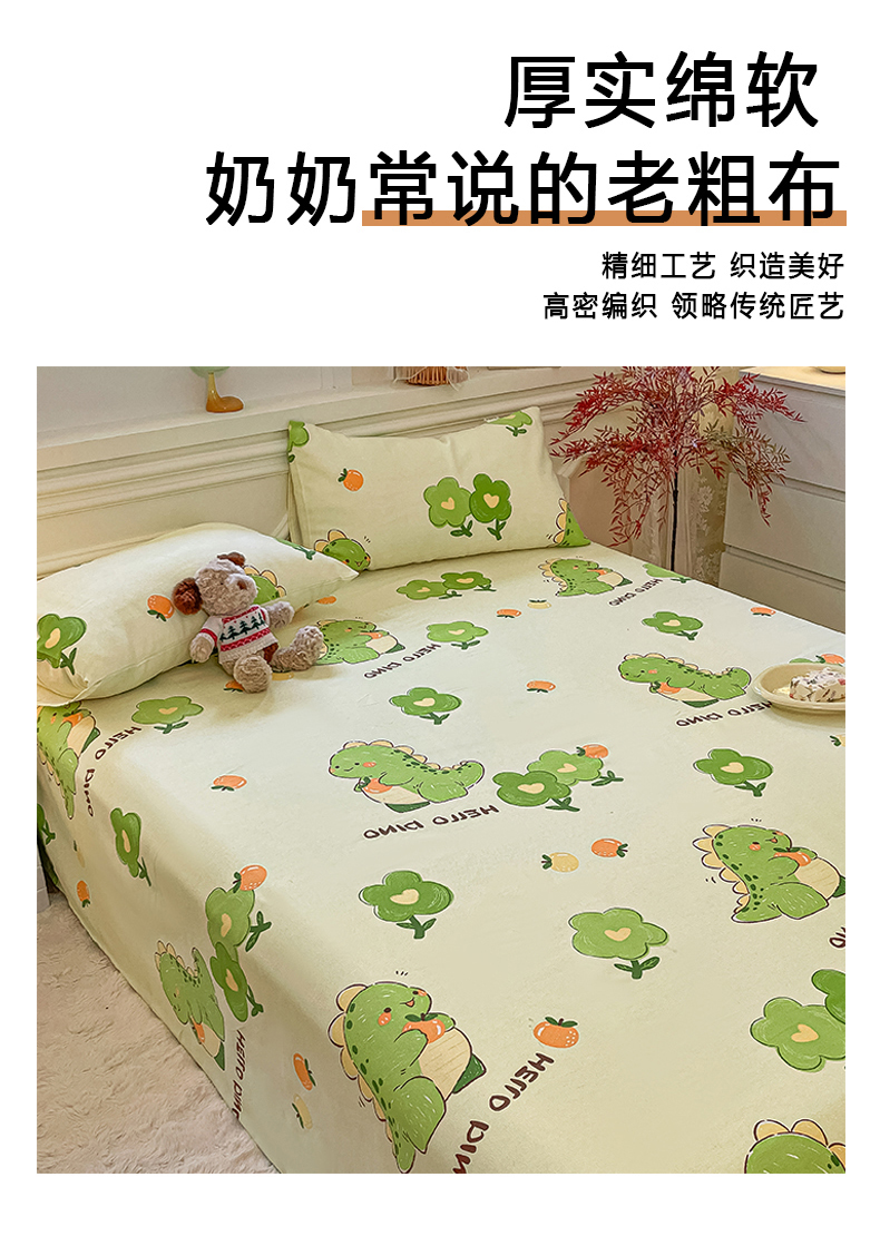 义博家纺 2025新款全棉老粗布床单 恐龙绘画