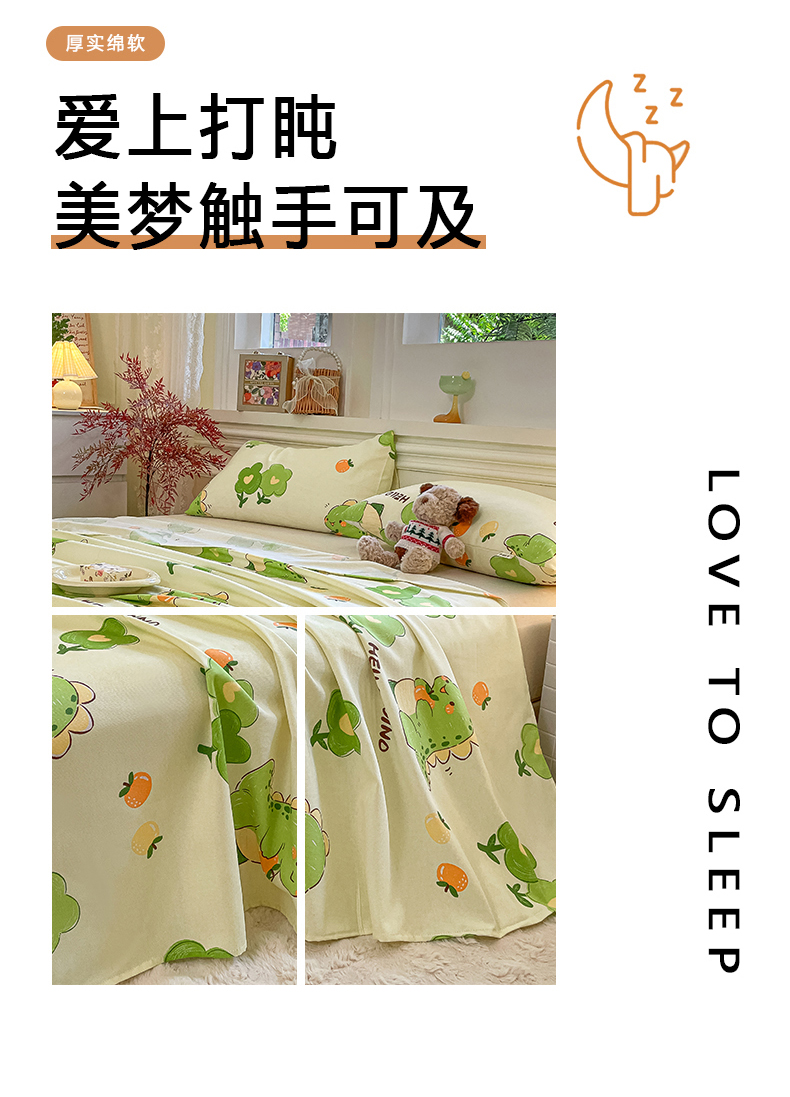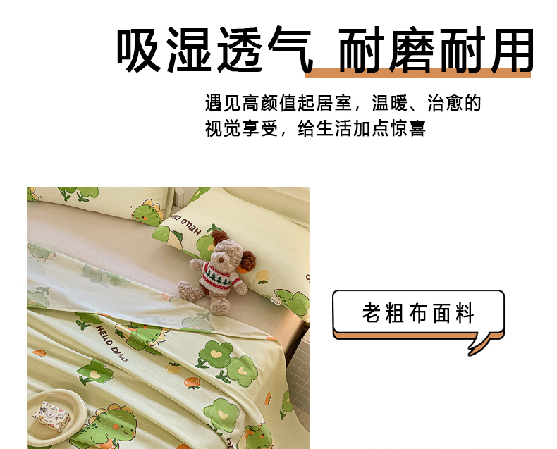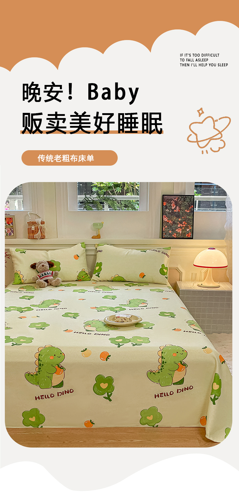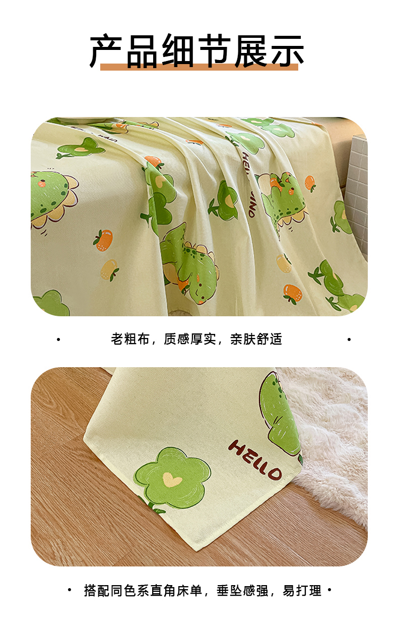 • 91家纺网 家纺一手货源 找家纺 义博家纺 2025新款全棉老粗布床单 恐龙绘画