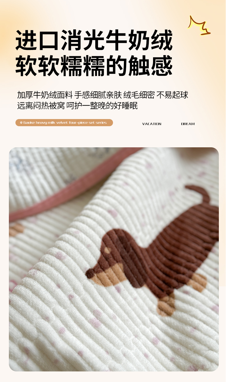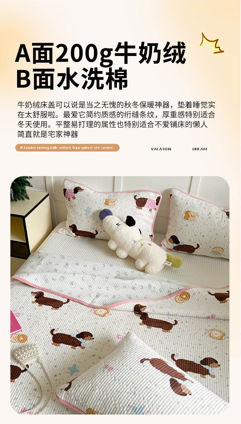 (总)萝莉家纺 2025秋冬新品韩版花边款加厚牛奶绒四件套,猫狗,花粉,花绿,可爱猫,甜品店,小肥猫,心心,熊熊