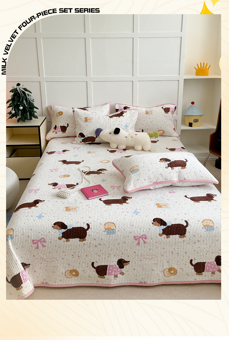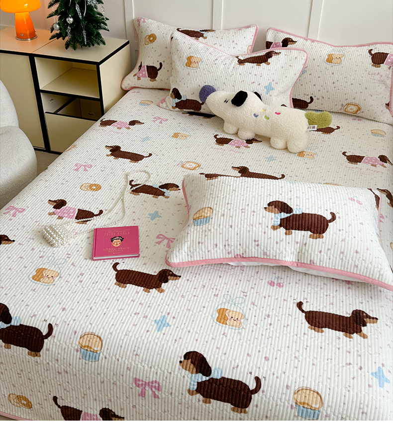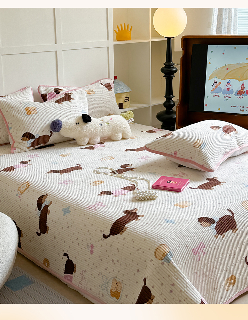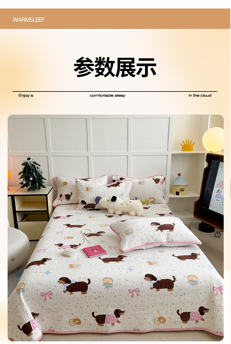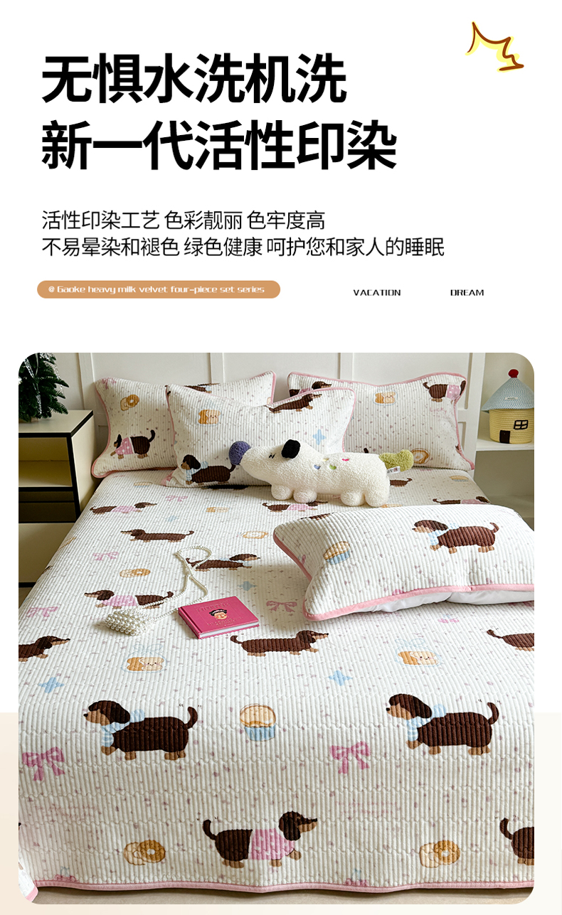 萝莉家纺 2024爆款印花牛奶绒夹棉绗缝床盖三件套 斑点狗狗