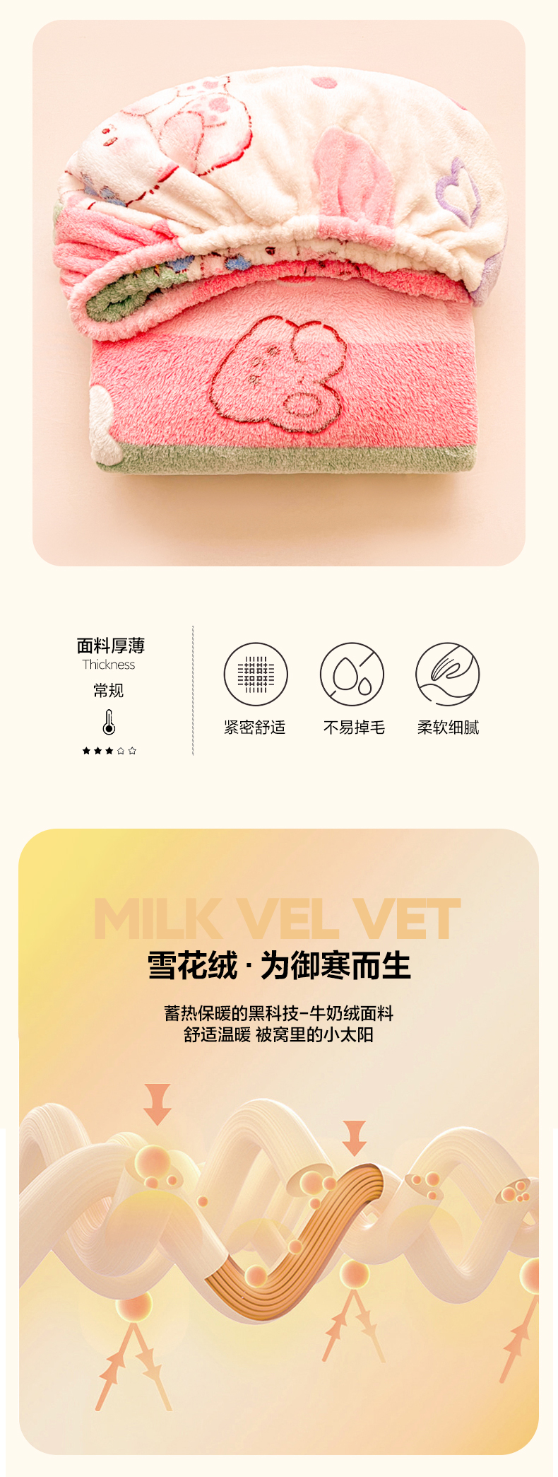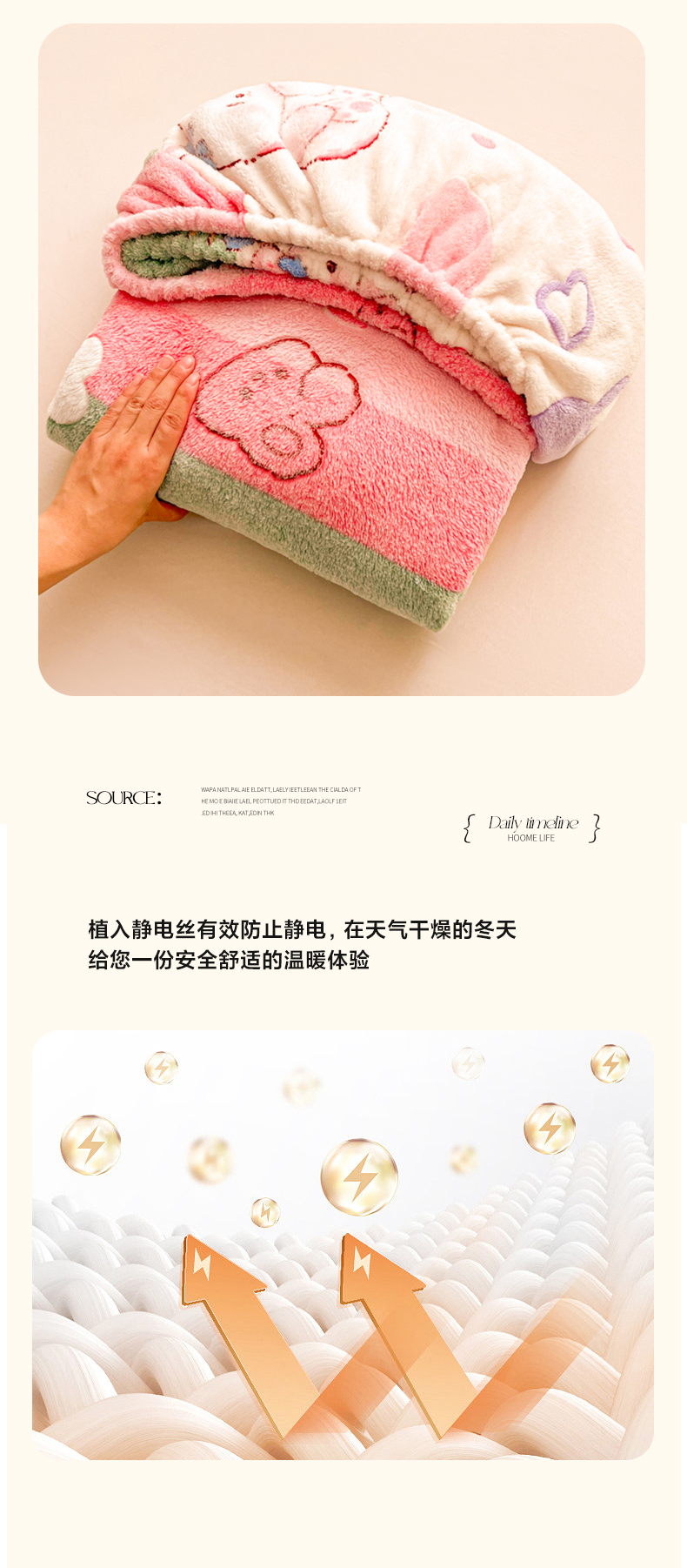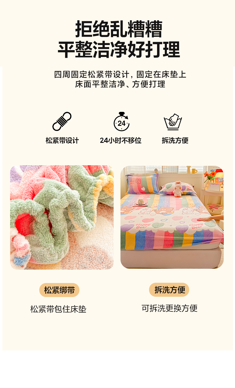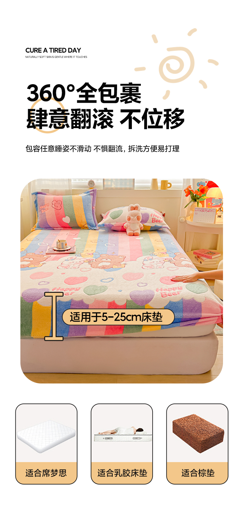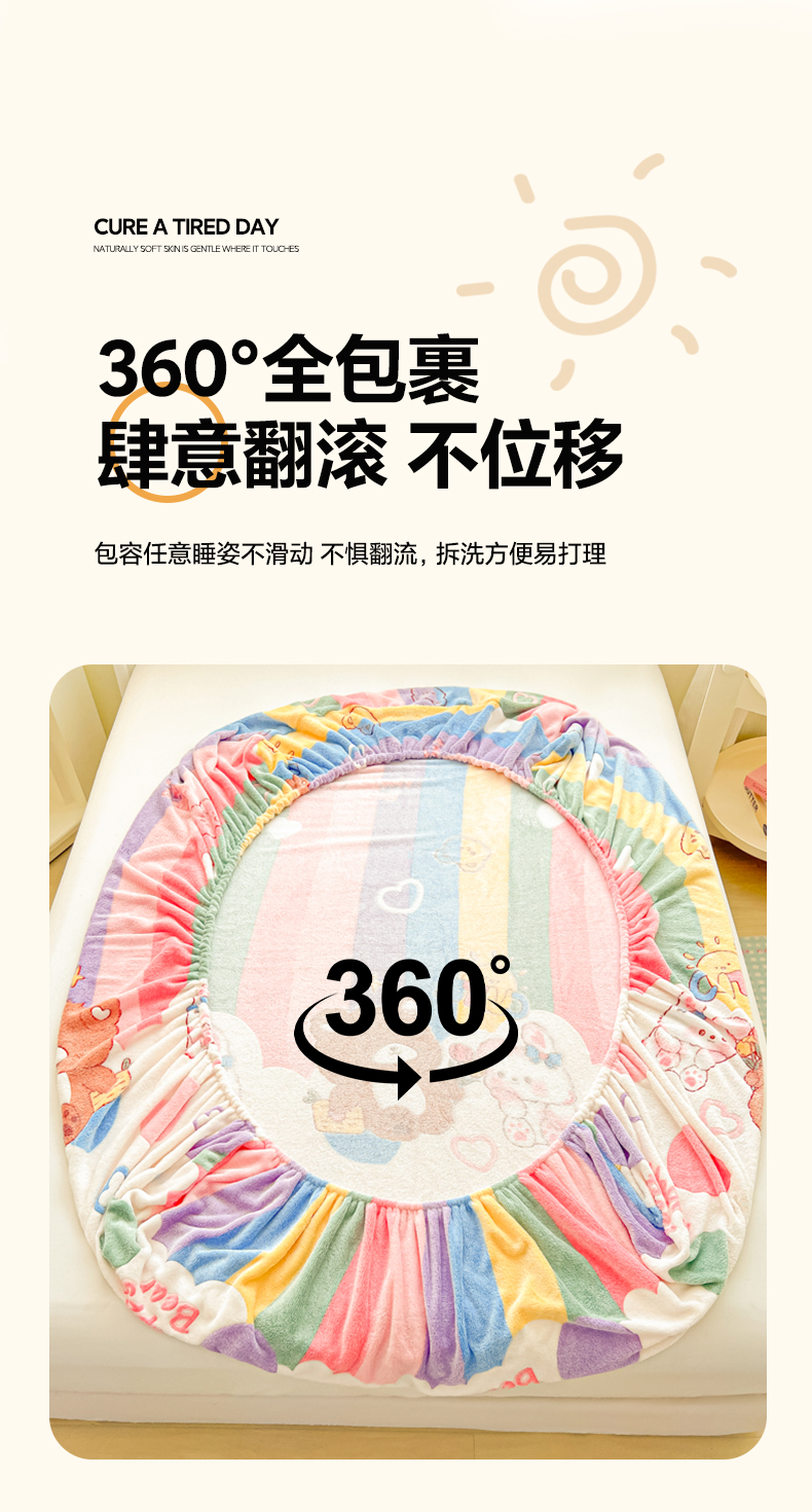 • 91家纺网 家纺一手货源 找家纺 韩巢家纺 2024新款加厚雪花绒卡通印花保暖牛奶绒珊瑚绒床笠三件套 七彩