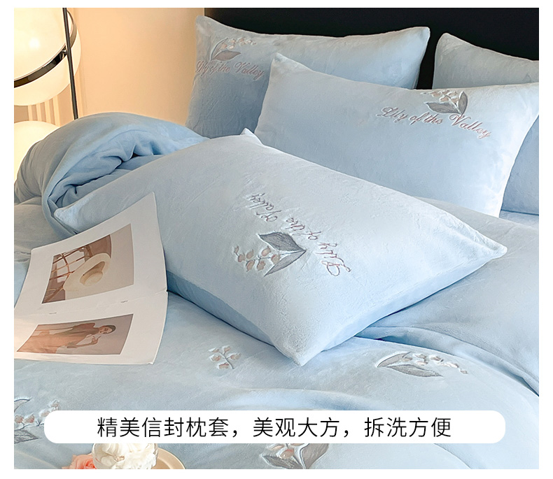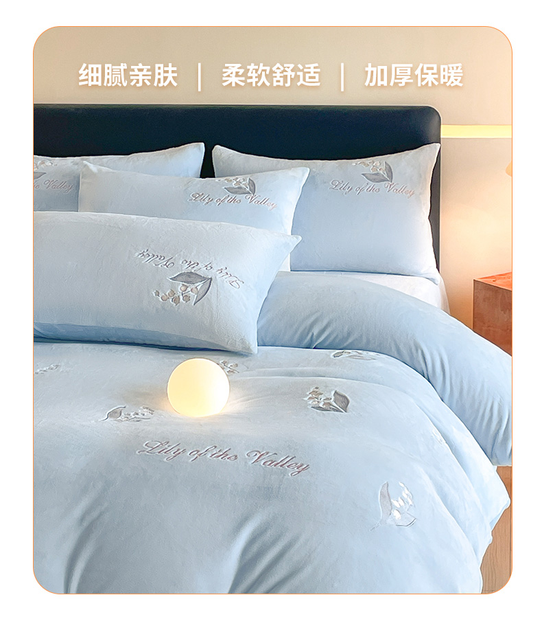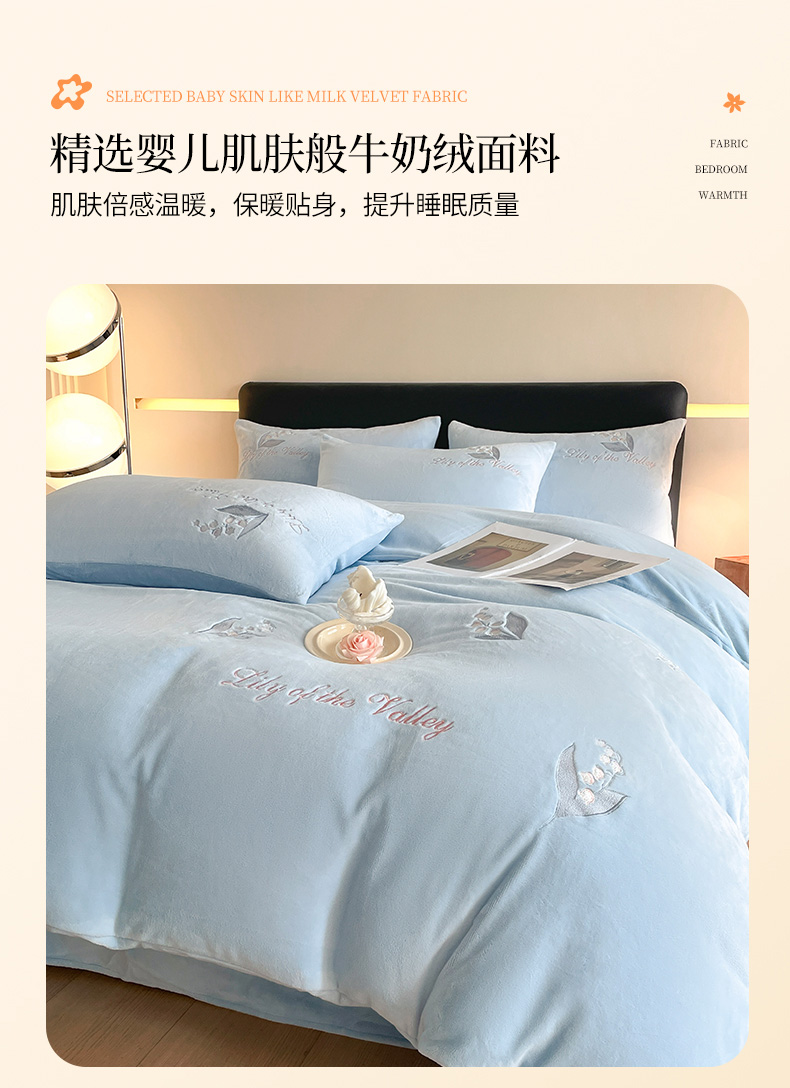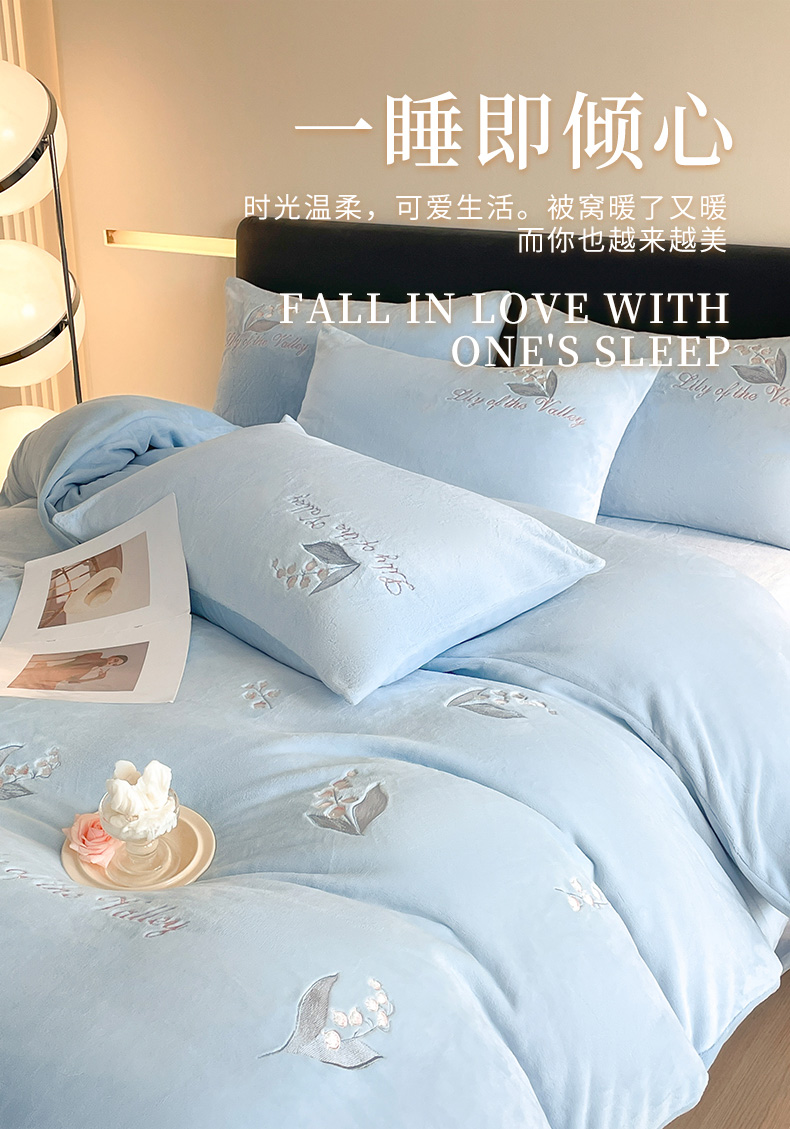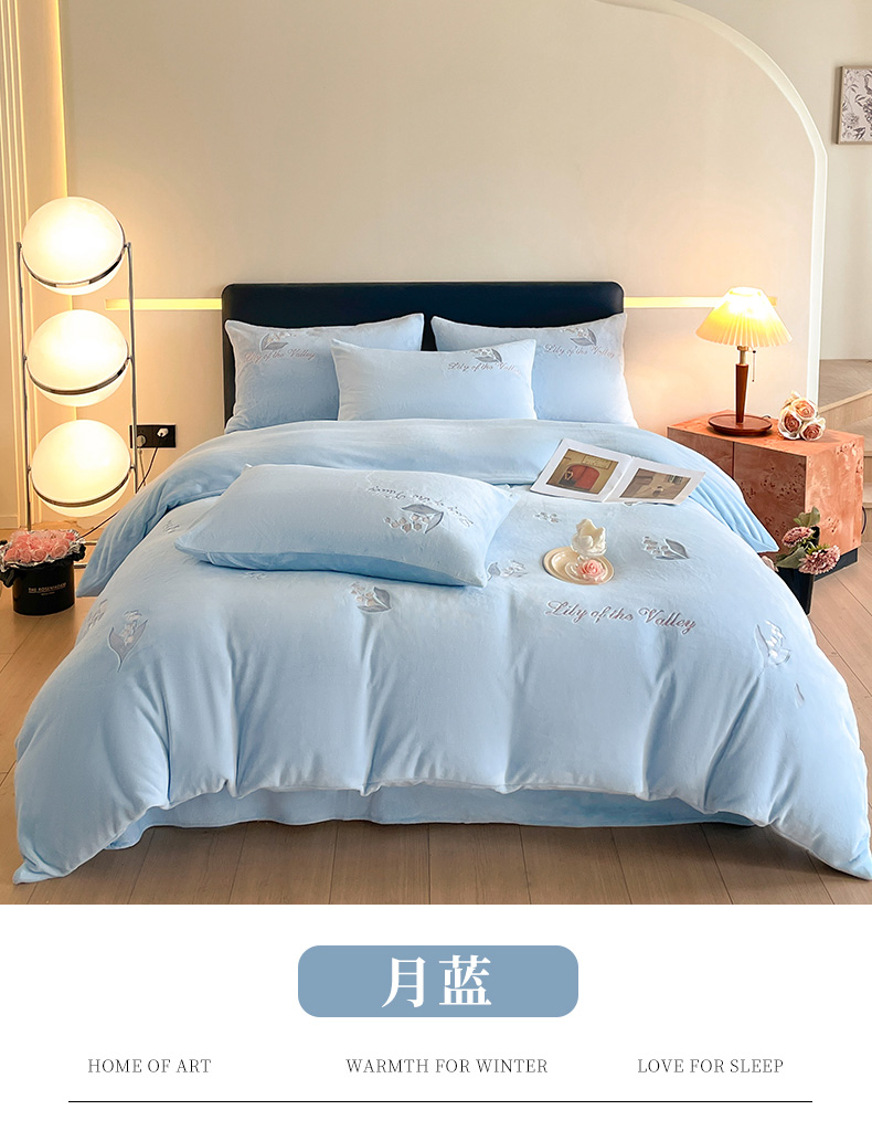商品名称:爱缦 2024新款铃兰物语系列全消光牛奶绒四件套 铃兰物语-月蓝