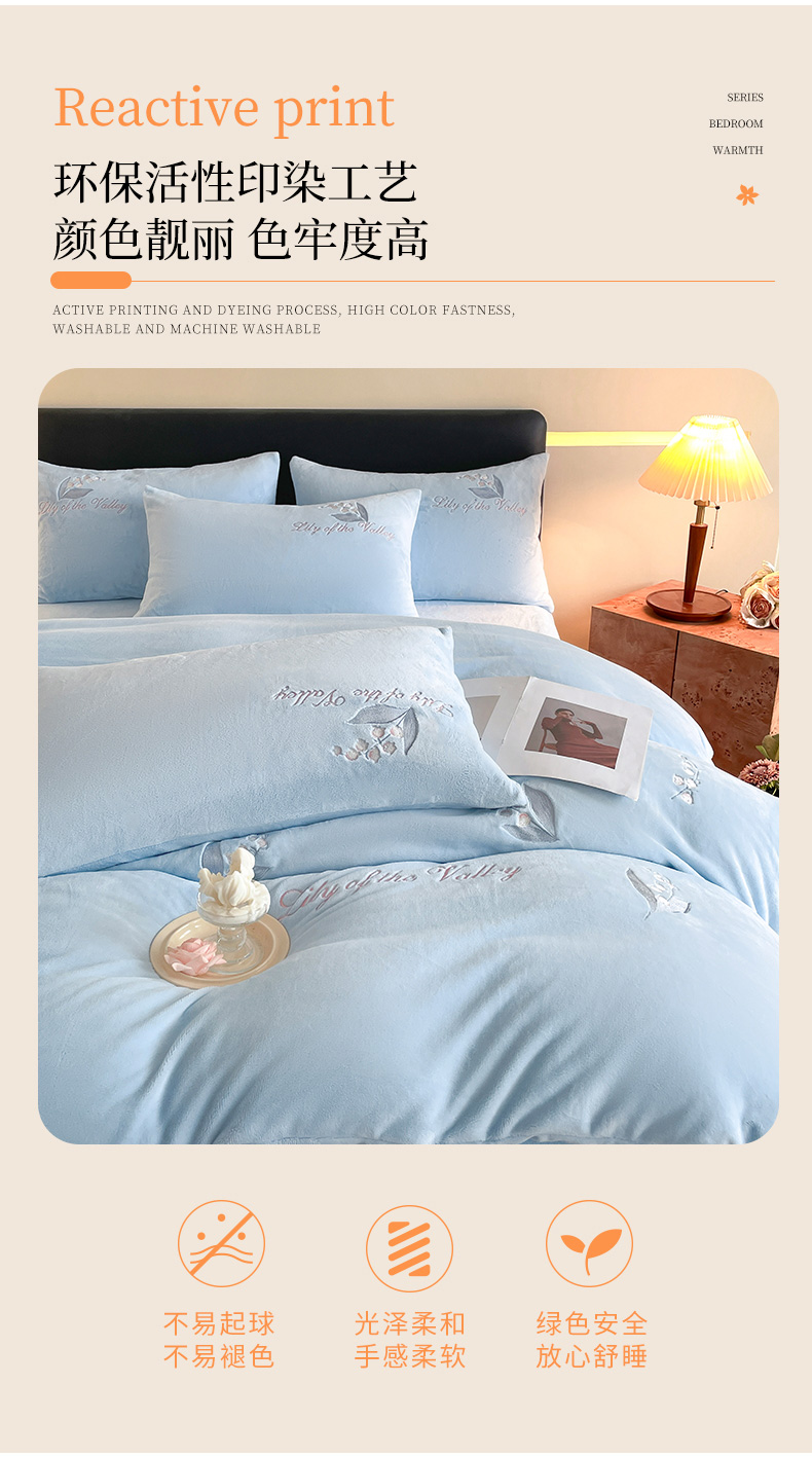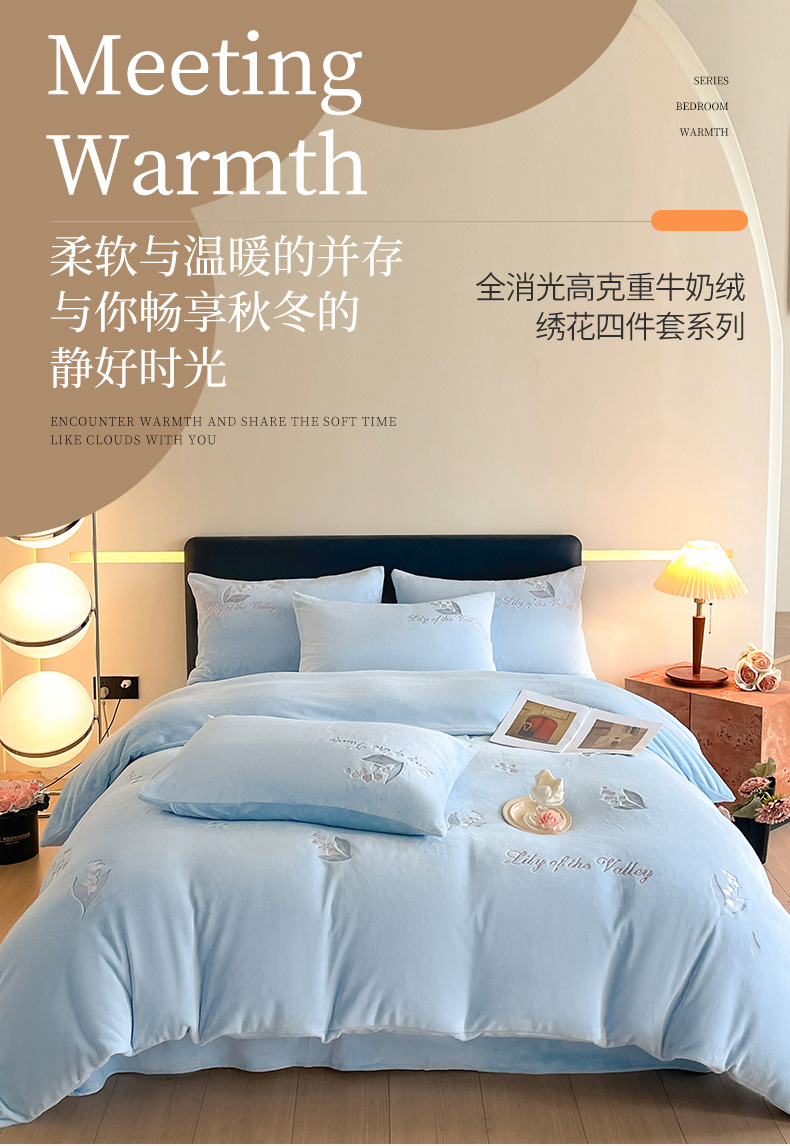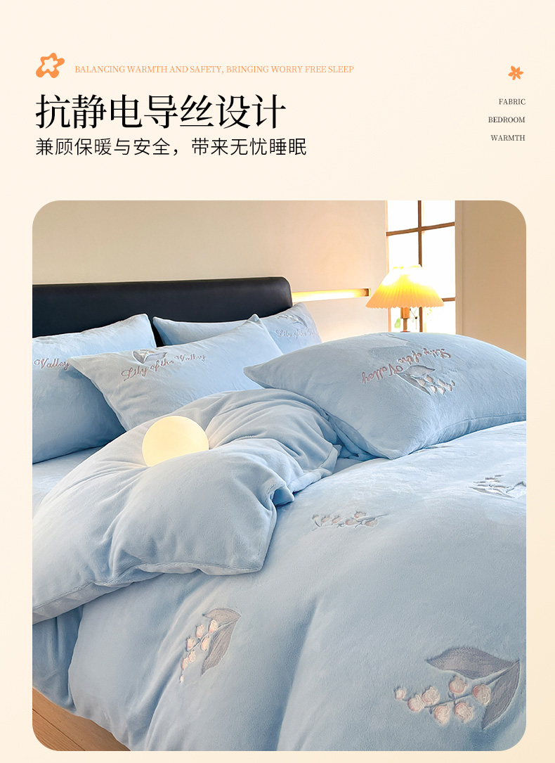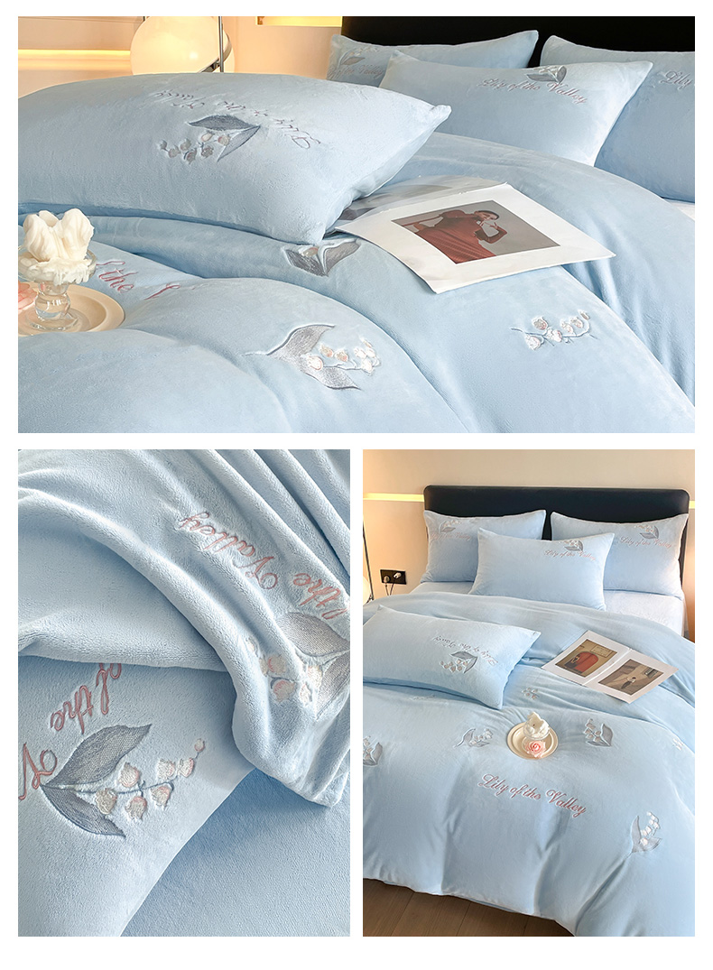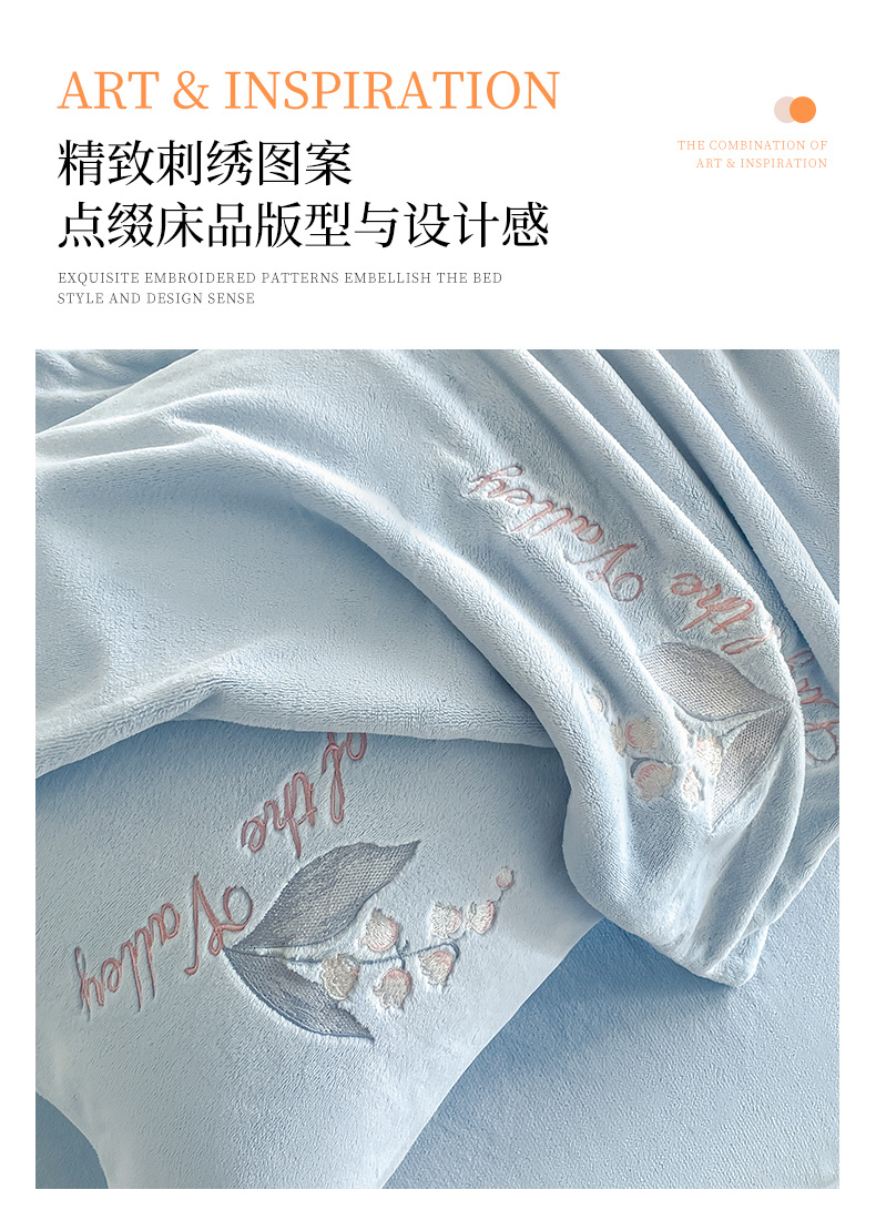 商品名称:爱缦 2024新款铃兰物语系列全消光牛奶绒四件套 铃兰物语-月蓝