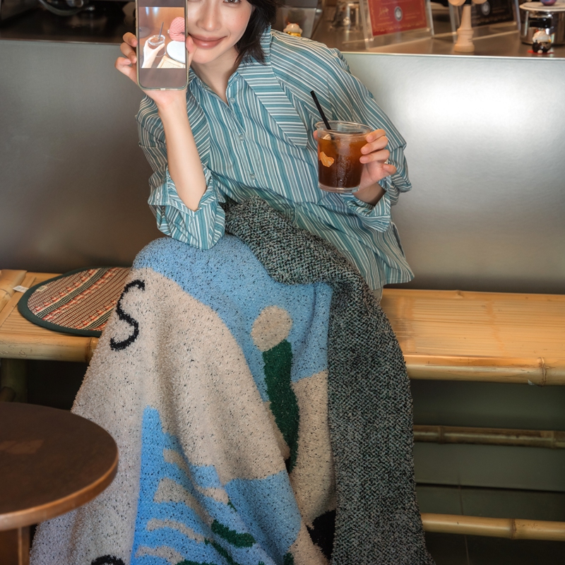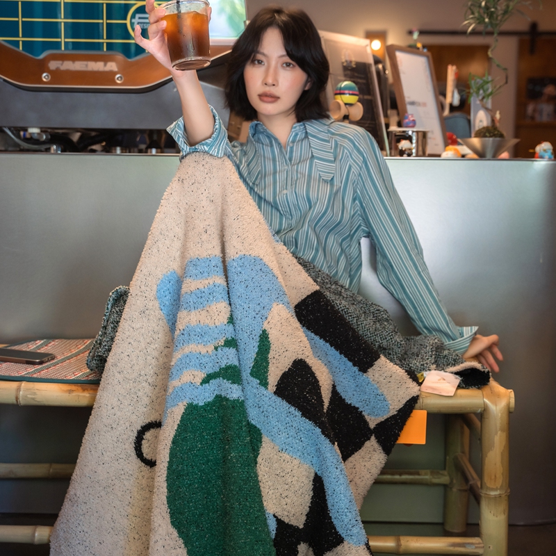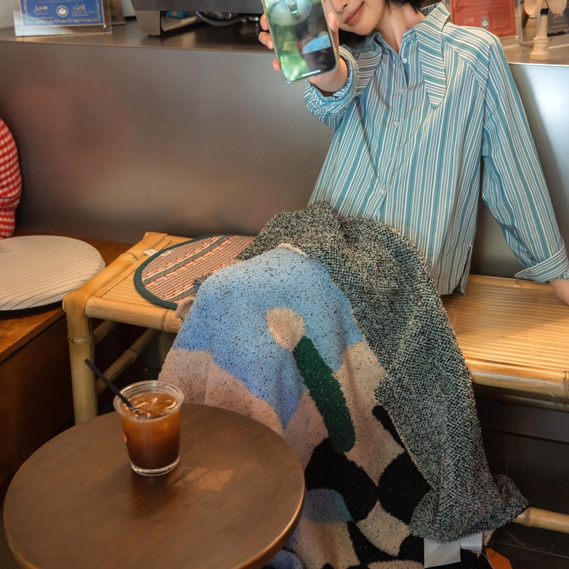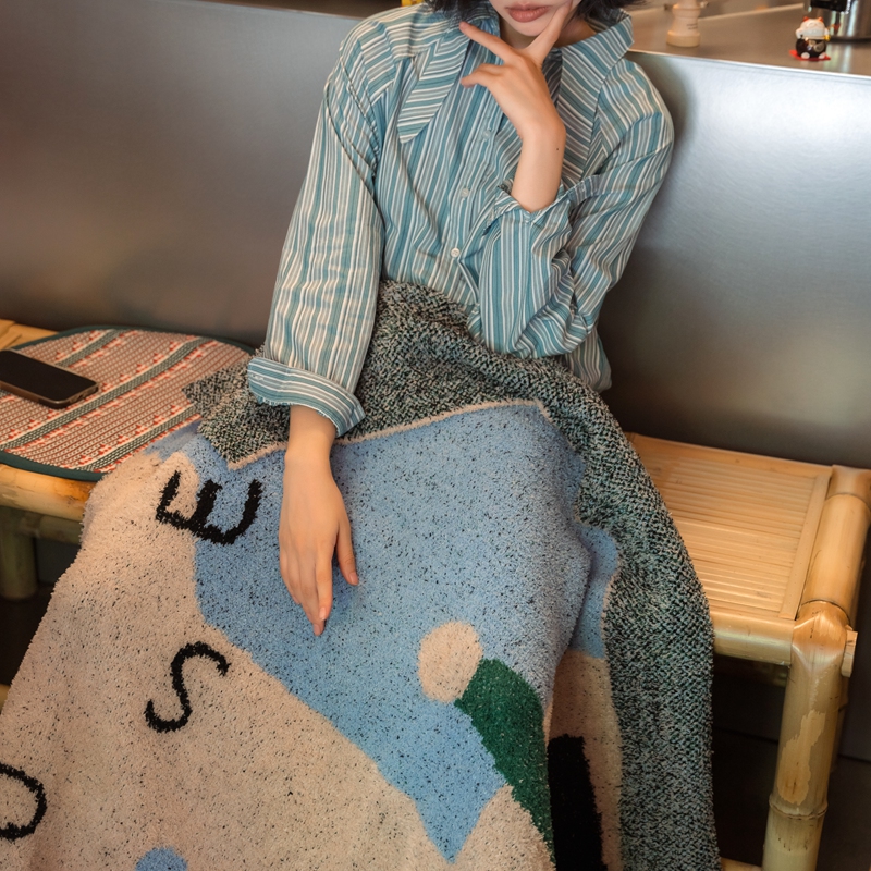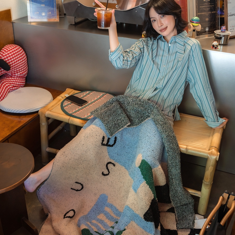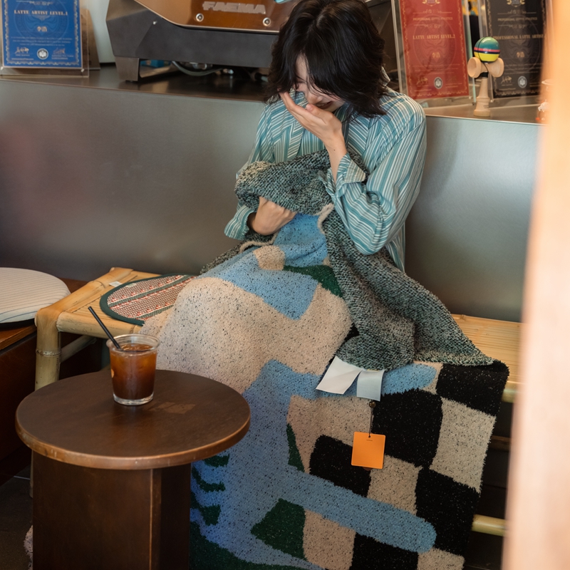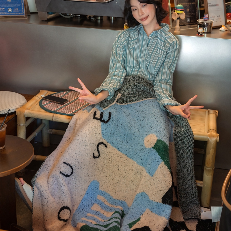 圆岛 2024新款多功能针织半边绒毛毯 豪斯棋盘