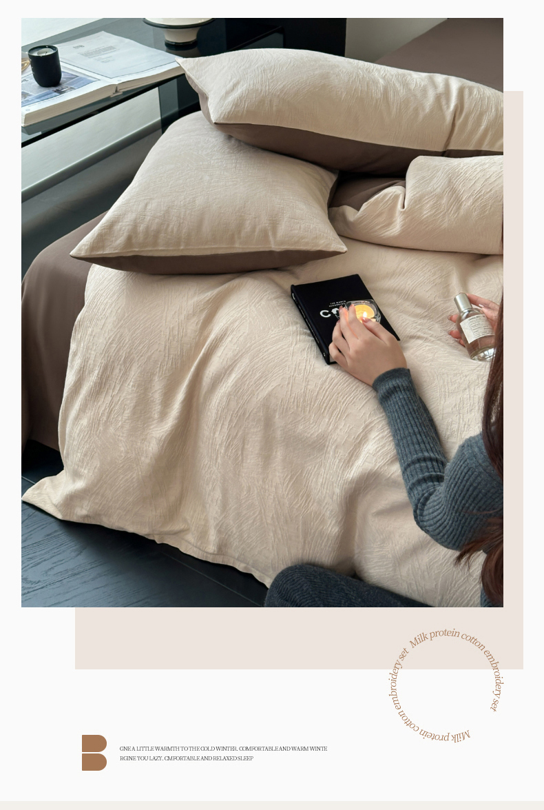 当前位置: 91家纺网 > 商品网购 > 床品套件 > 四件套 > 全棉普通四件套 > (总)梦享生活家居 2024新款全棉肌理纹系列四件套-素写