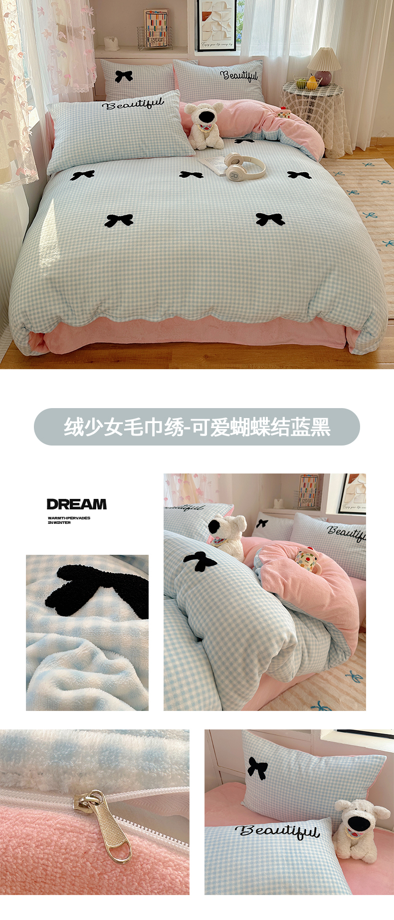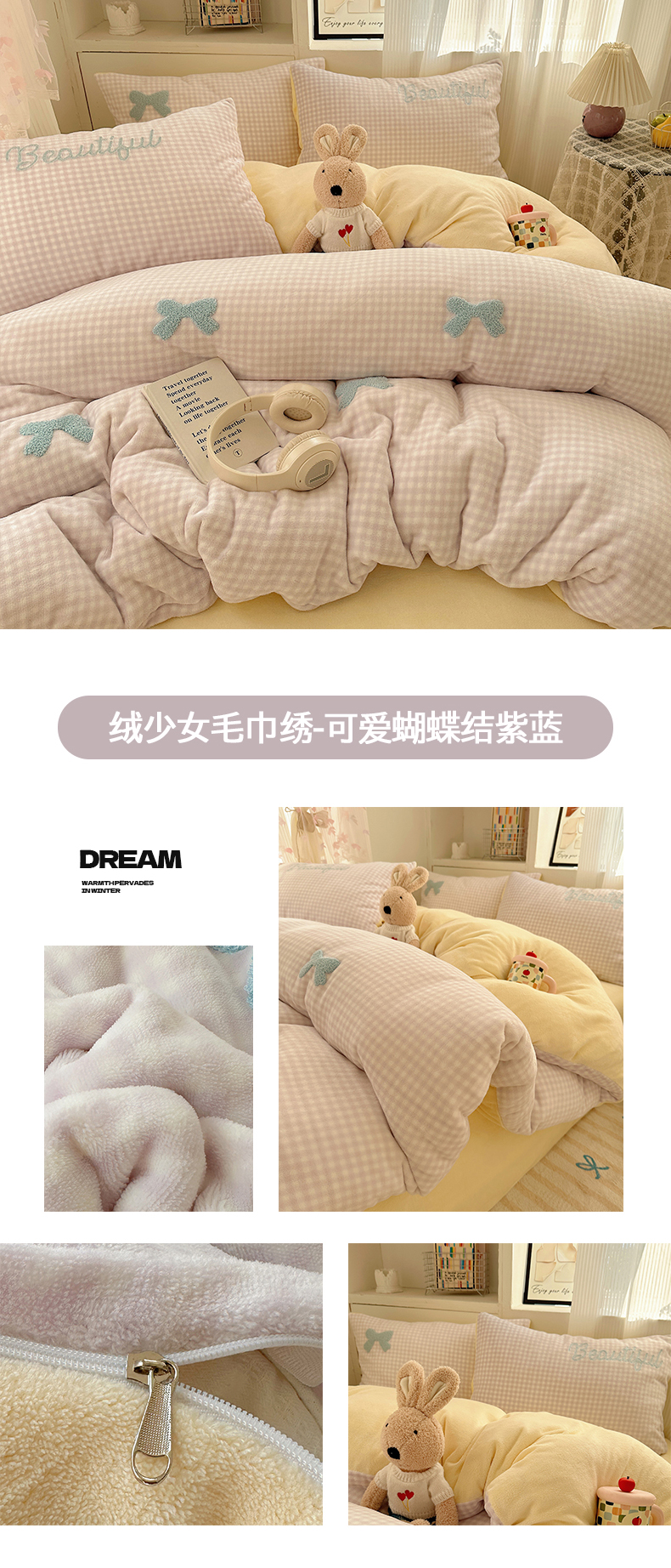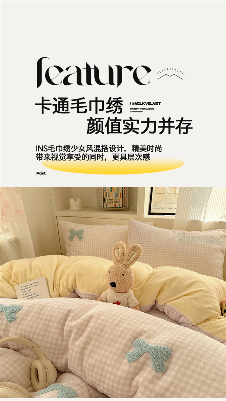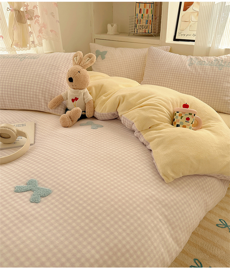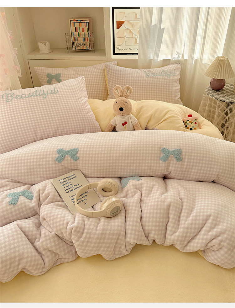 当前位置: 91家纺网 > 商品网购 > 床品套件 > 四件套 > 牛奶绒四件套 > (总)2024新款A类ins毛巾绣少女猫咪可爱蝴蝶结格子混搭加厚牛奶绒系列四件套