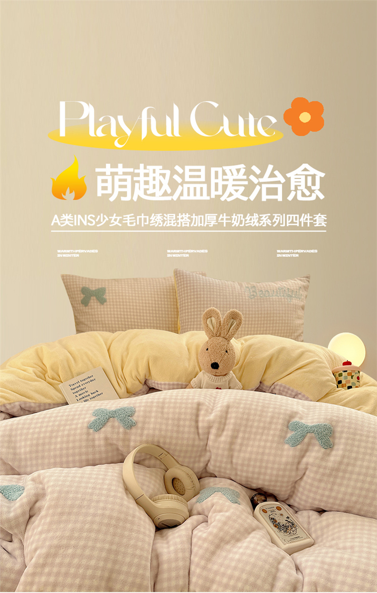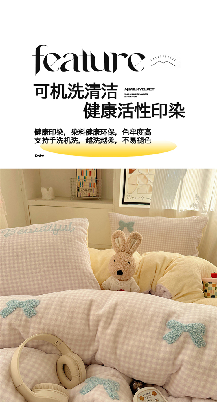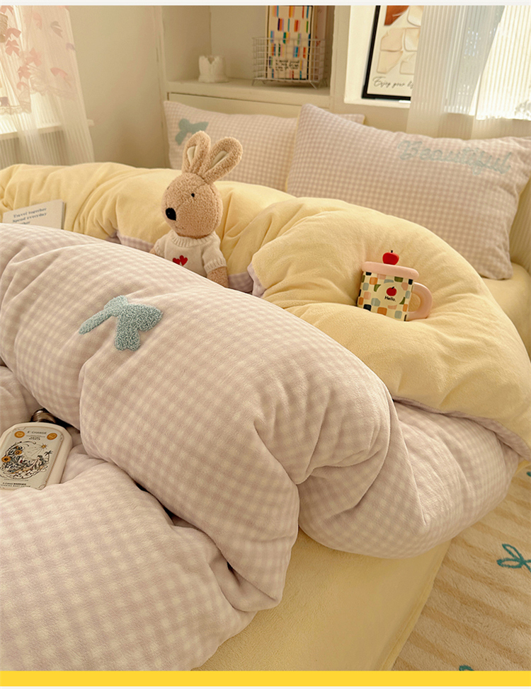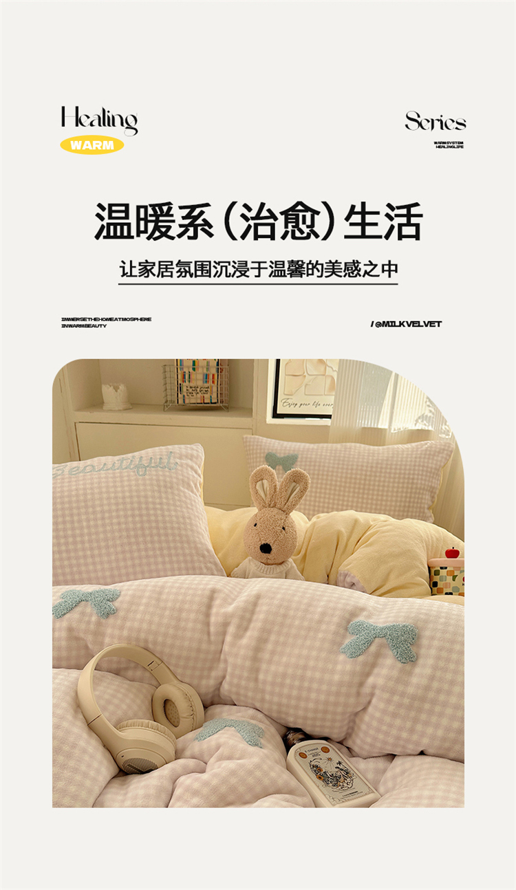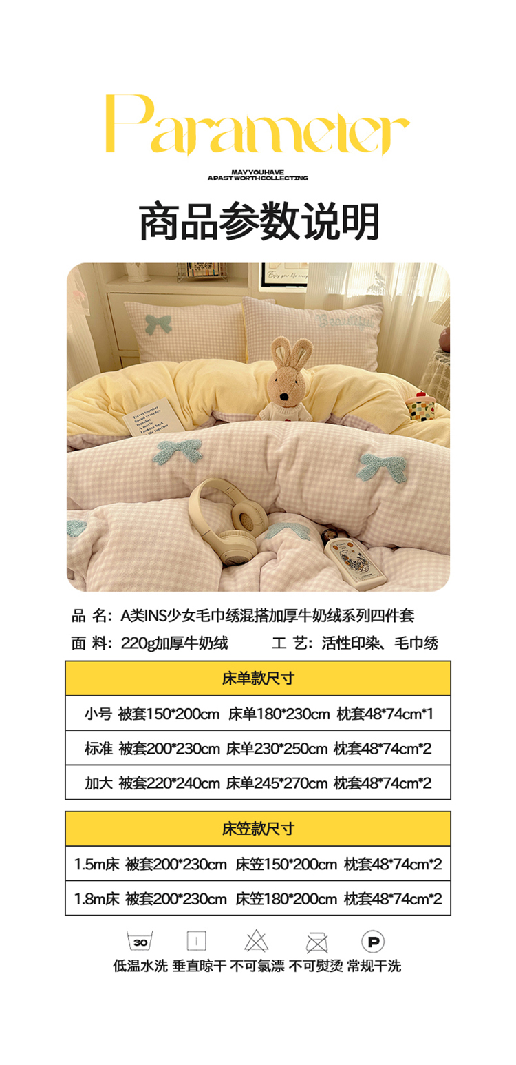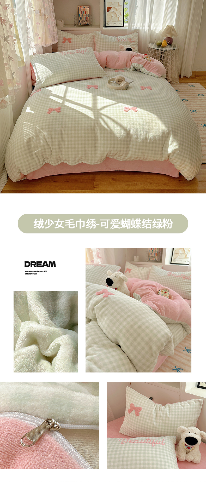 当前位置: 91家纺网 > 商品网购 > 床品套件 > 四件套 > 牛奶绒四件套 > (总)2024新款A类ins毛巾绣少女猫咪可爱蝴蝶结格子混搭加厚牛奶绒系列四件套