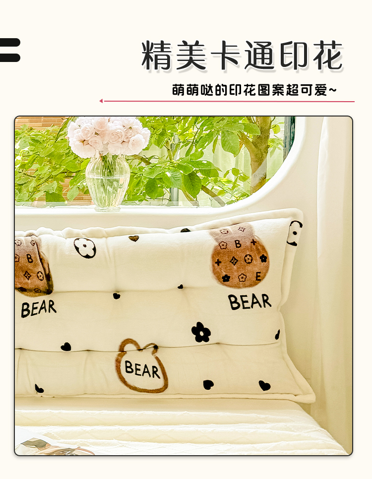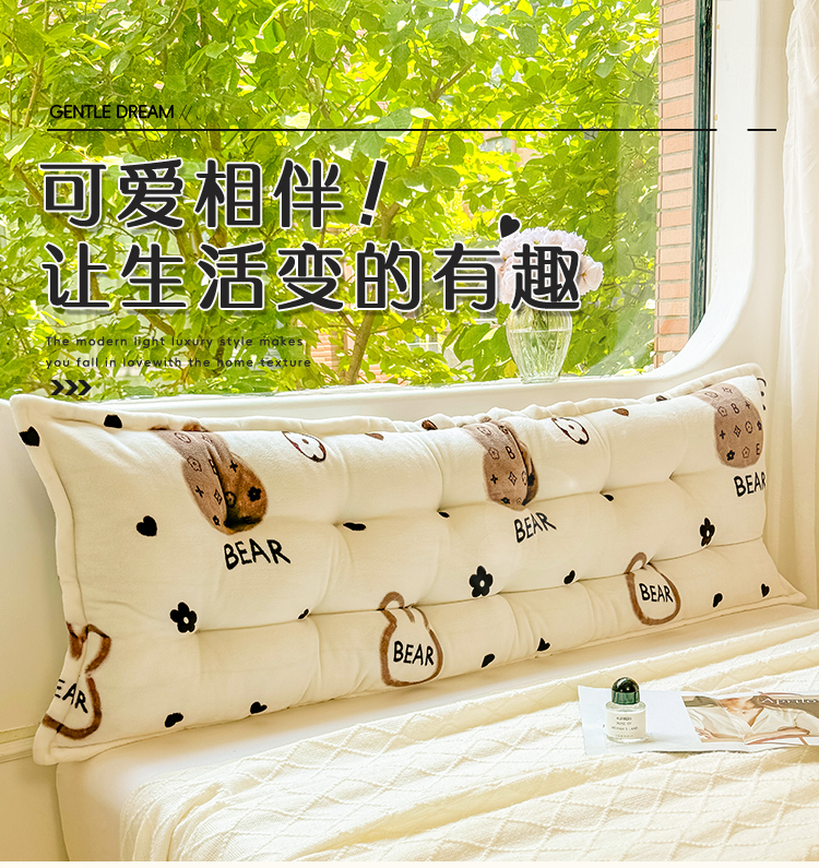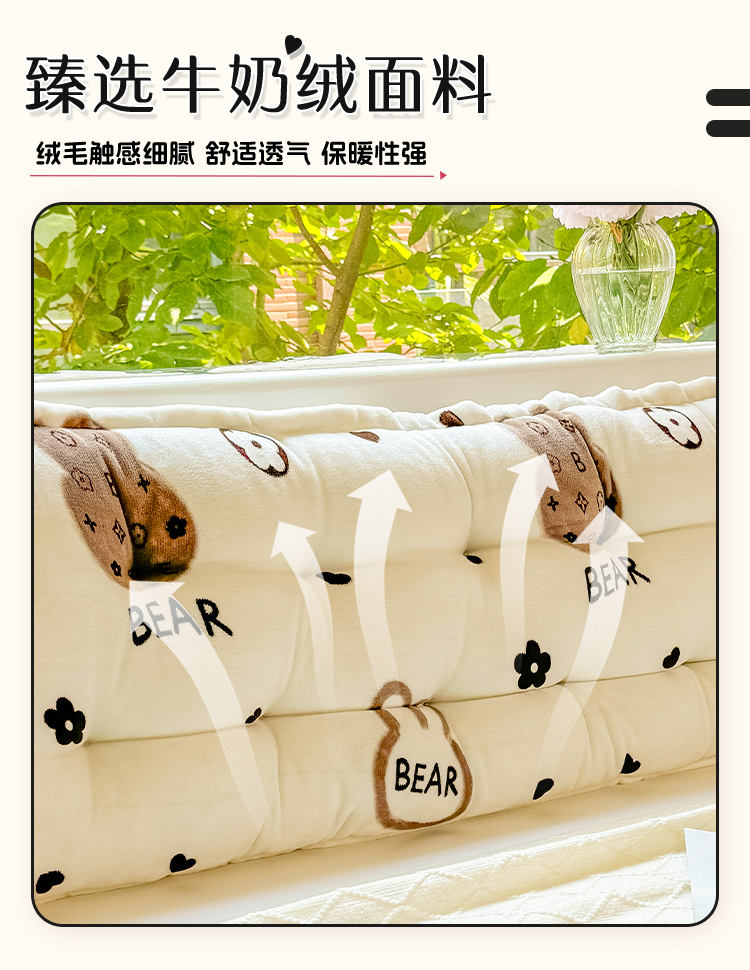 商品名称:碧尔 2025新款可爱儿童床头靠垫学生卧室客厅沙发飘窗榻榻米软包靠背床上靠枕双排扣直条机械钉扣牛奶绒 棕色小熊