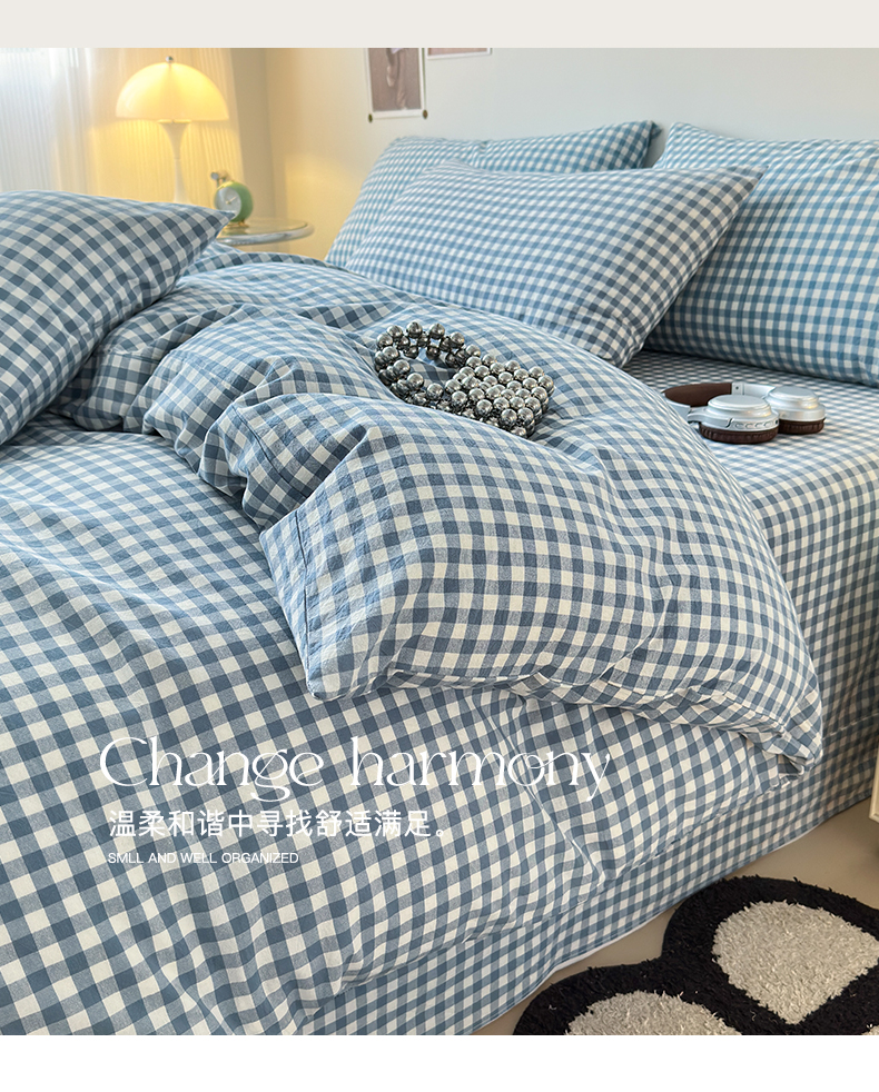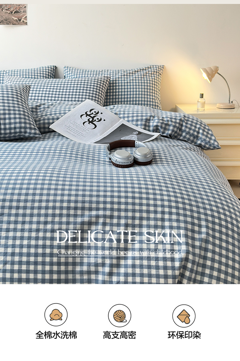 当前位置: 91家纺网 > 商品网购 > 床品套件 > 四件套 > 水洗棉四件套 > 清雅福 2024新款全棉A类水洗棉四件套单被套 蓝小格