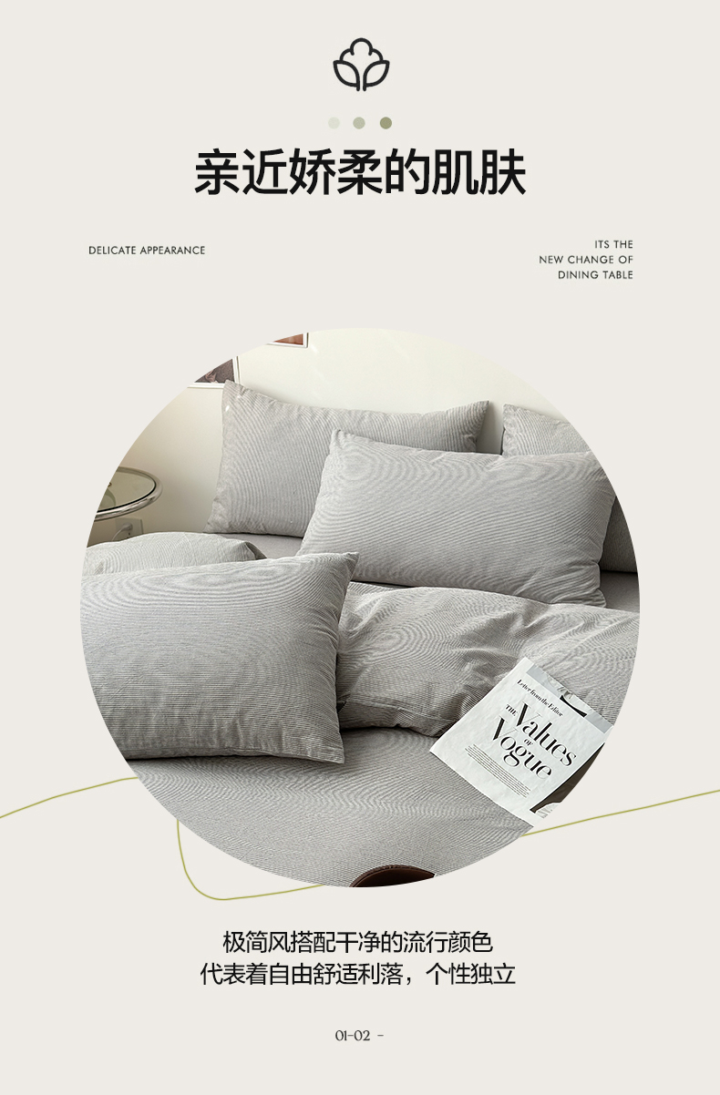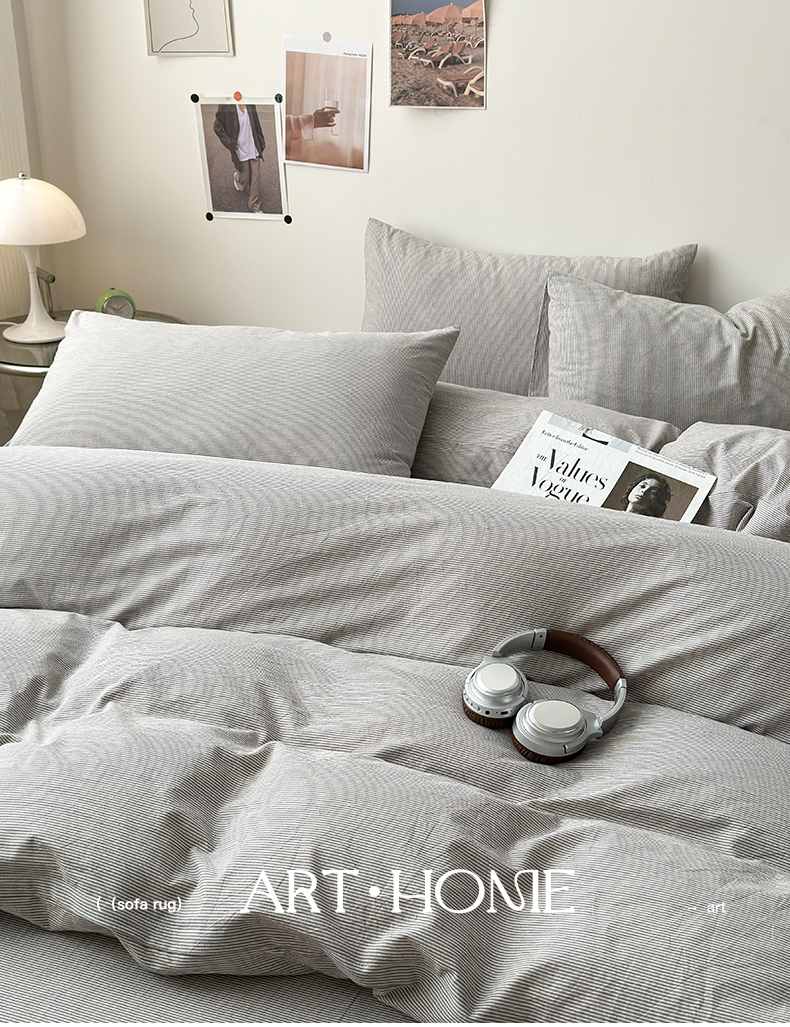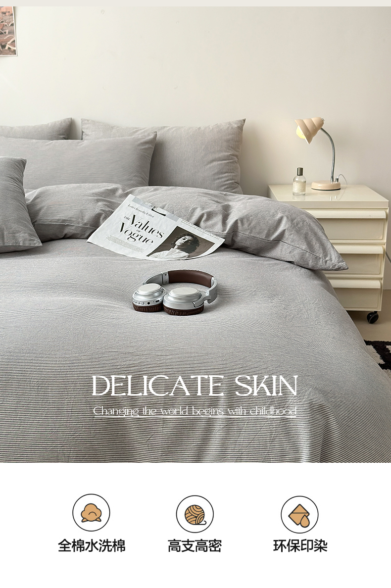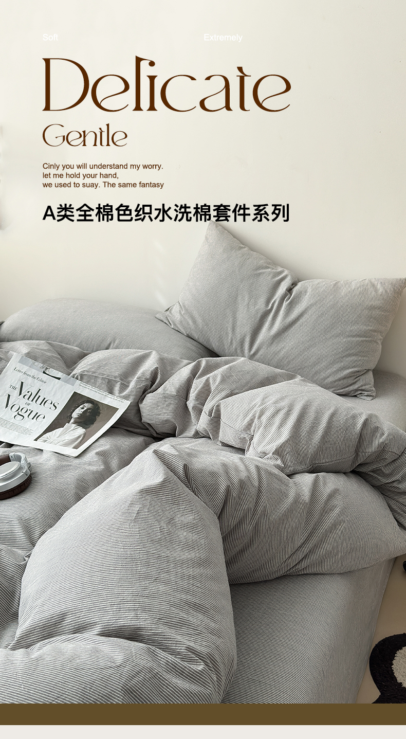 当前位置: 91家纺网 > 商品网购 > 床品套件 > 四件套 > 水洗棉四件套 > 清雅福 2024新款全棉A类水洗棉四件套单被套 灰密条