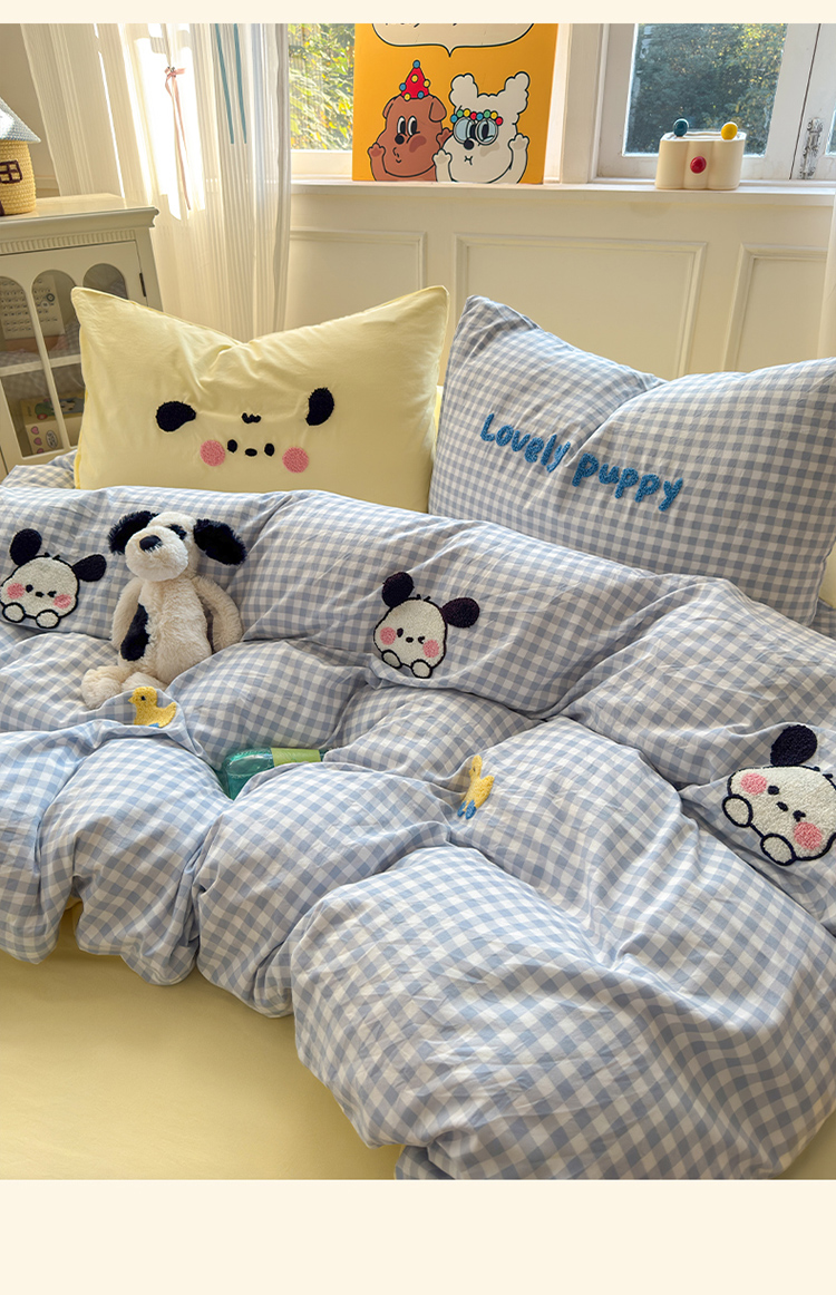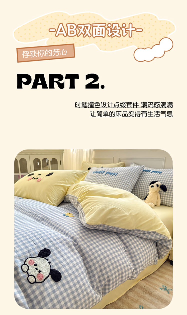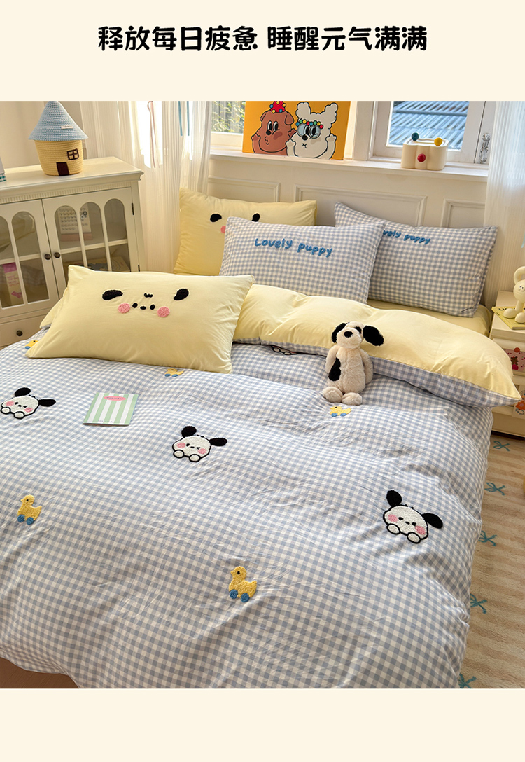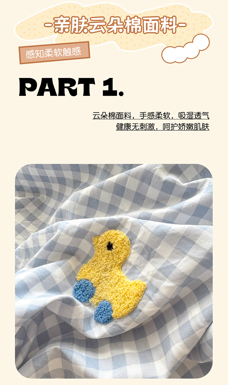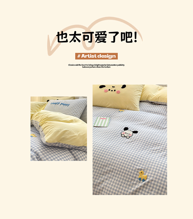 当前位置: 91家纺网 > 商品网购 > 床品套件 > 四件套 > 其它四件套 > 罗亿家纺 2025新款韩版糯糯棉(110克)毛巾绣四件套-场景三(提供买家秀) 小狗冲浪鸭