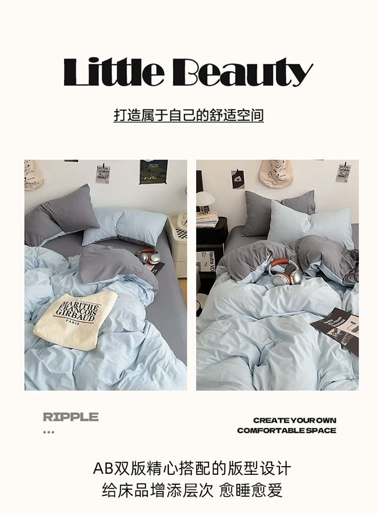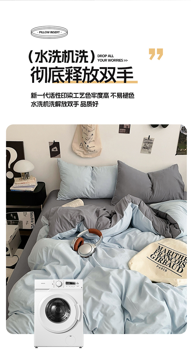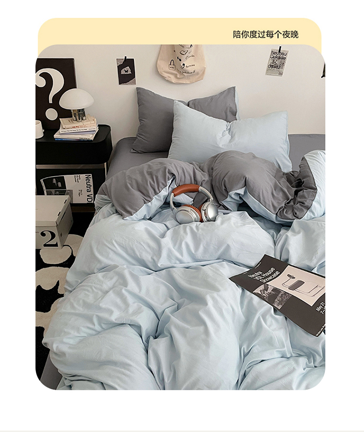 当前位置: 91家纺网 > 商品网购 > 床品套件 > 四件套 > 水洗棉四件套 > 优佳优品 2024新款亲肤水洗棉纯色四件套莫奈灰蓝