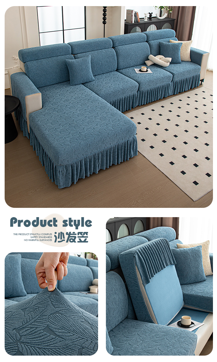 当前位置: 91家纺网 > 商品网购 > 居家布艺 > 坐垫/椅垫/沙发垫 > 沙发垫 > 沐沐家纺 2026新款小树叶裙边沙发笠 孔雀蓝