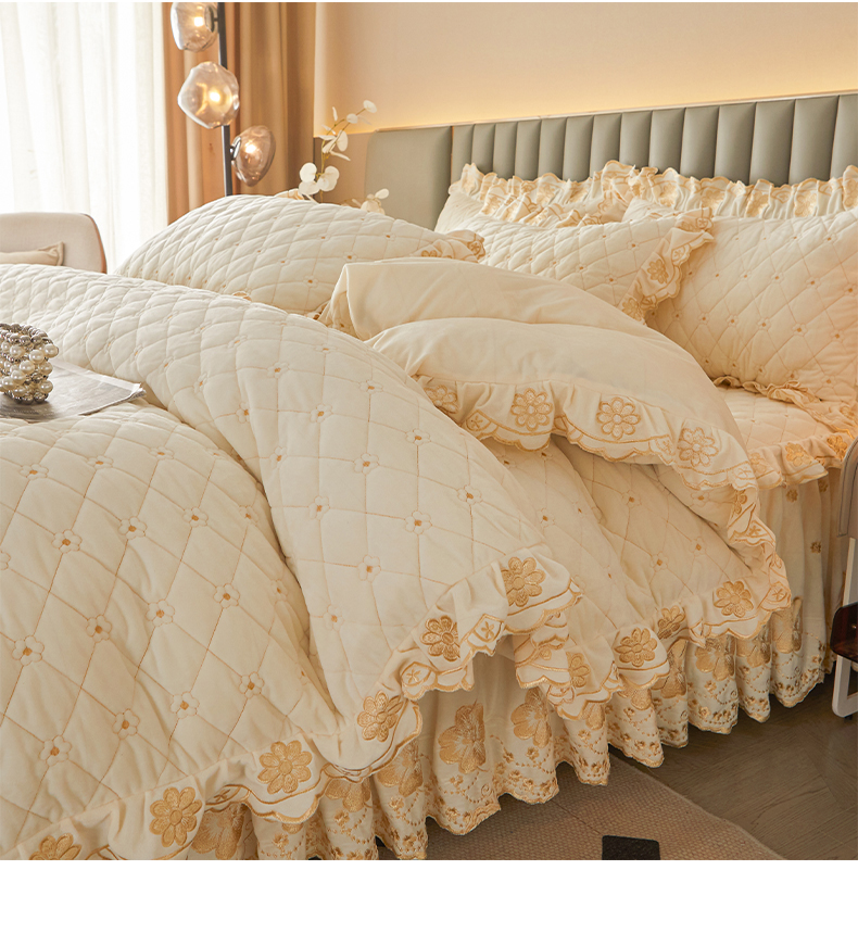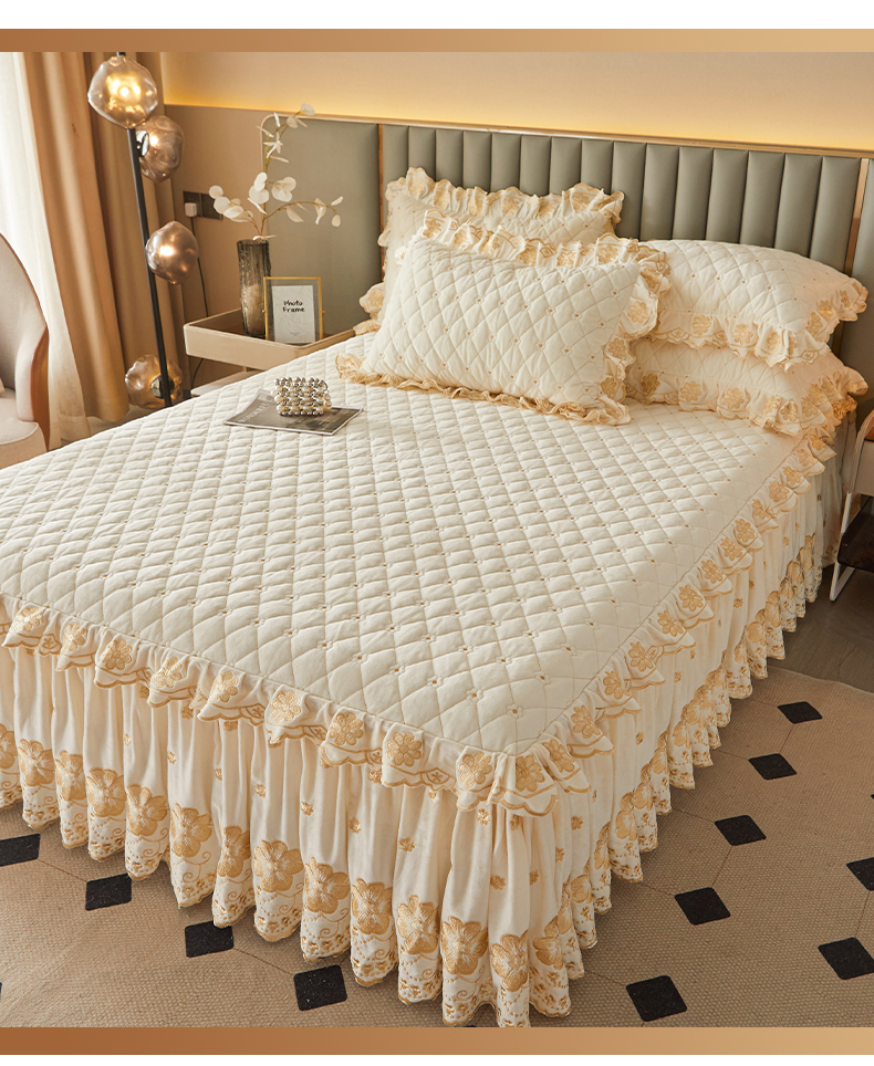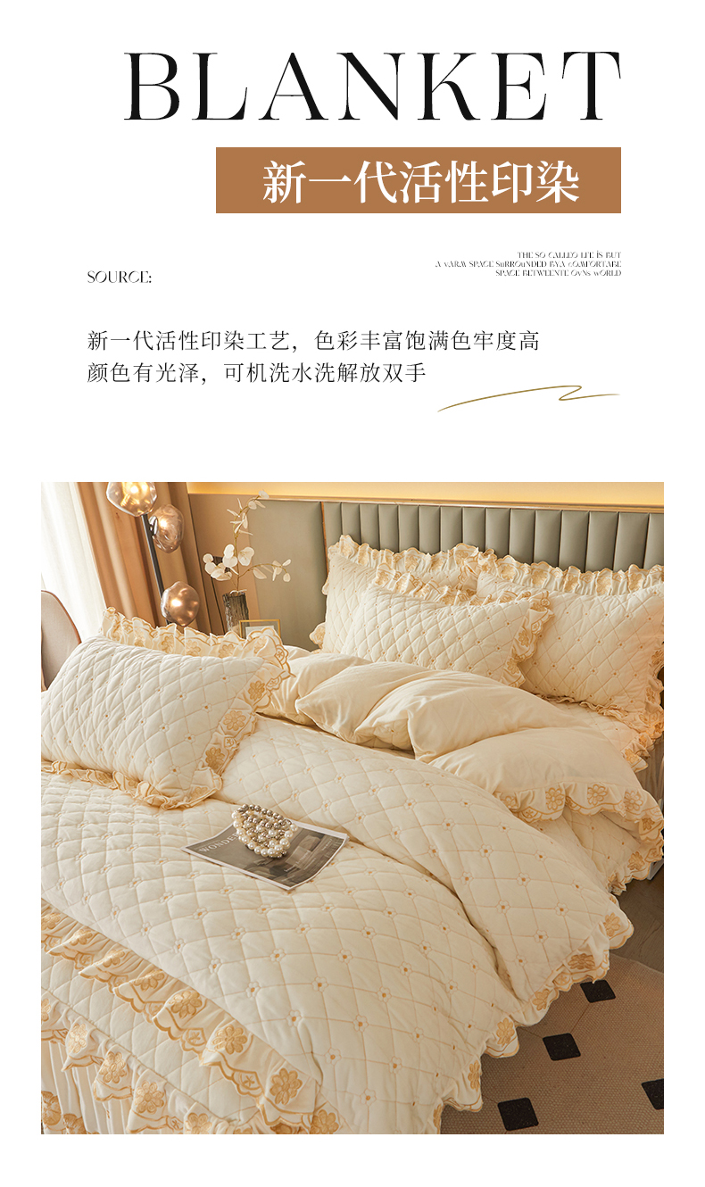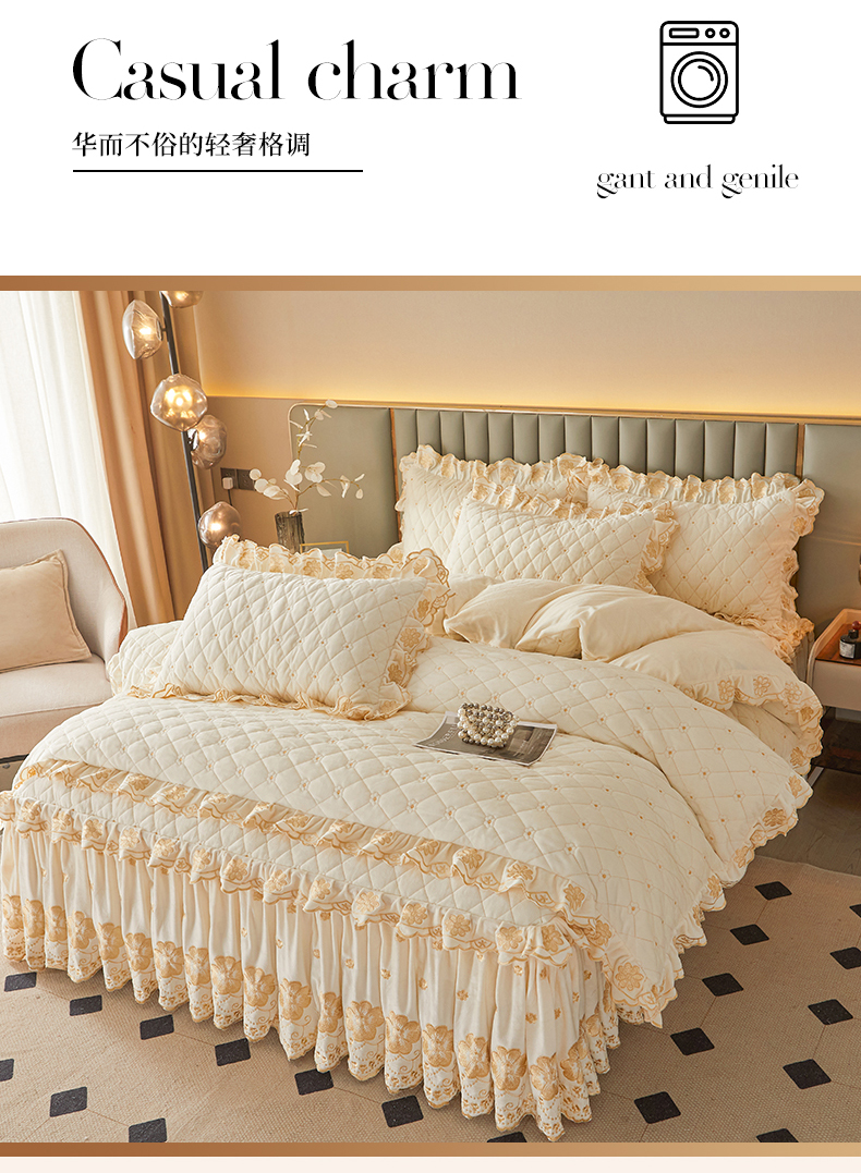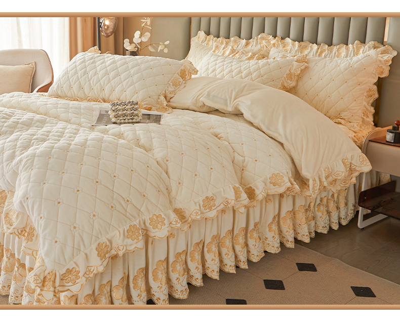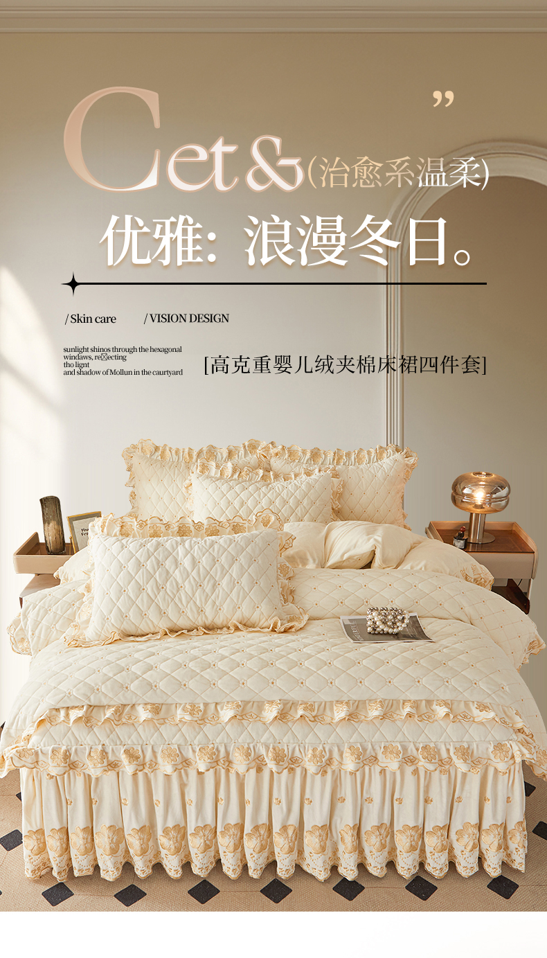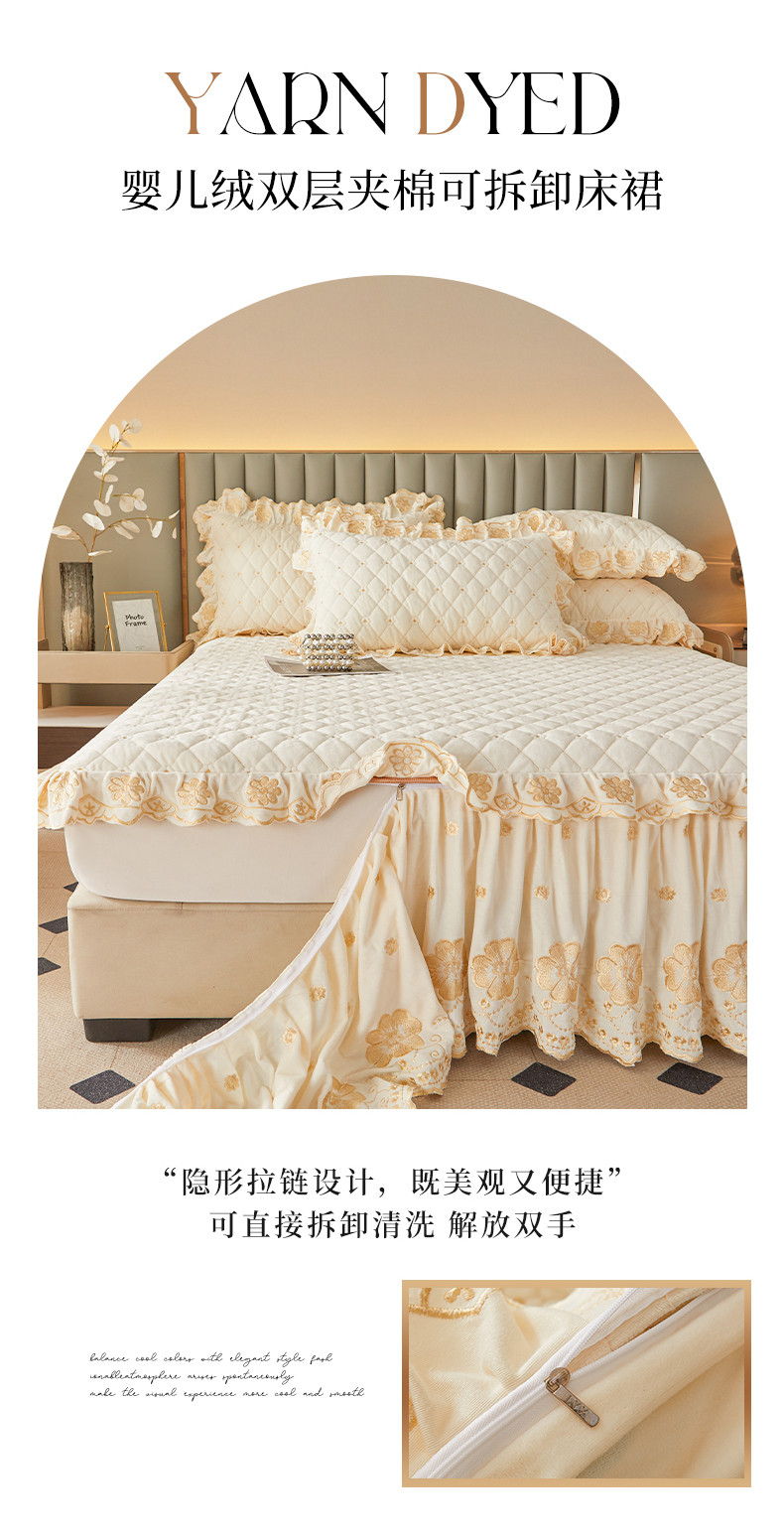 当前位置: 91家纺网 > 商品网购 > 床品套件 > 四件套 > 其它四件套 > 罗艺轩 2025新款婴儿绒双层夹棉可拆卸床裙四件套-花语 花语-奶昔
