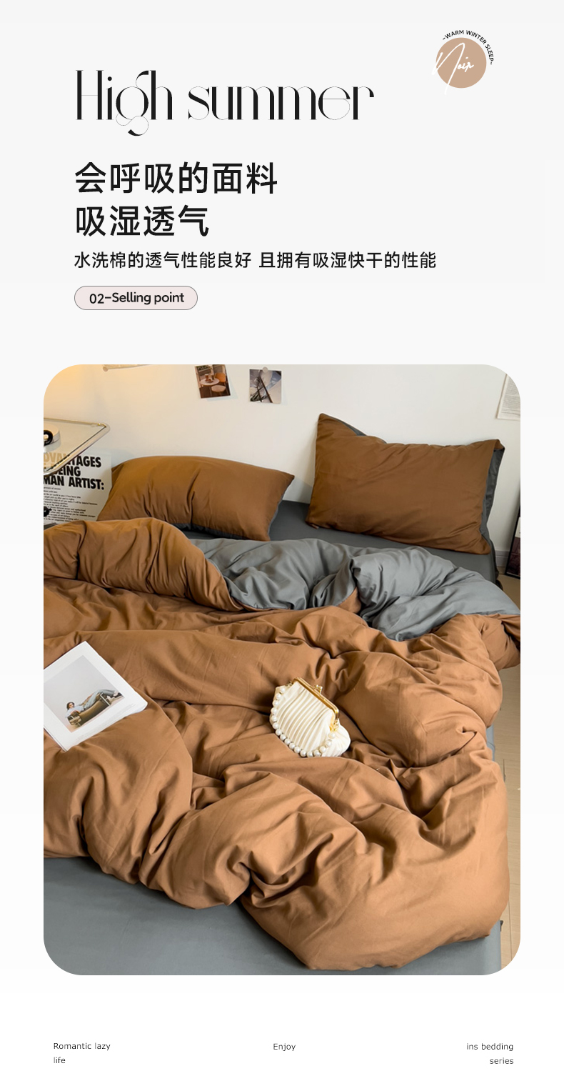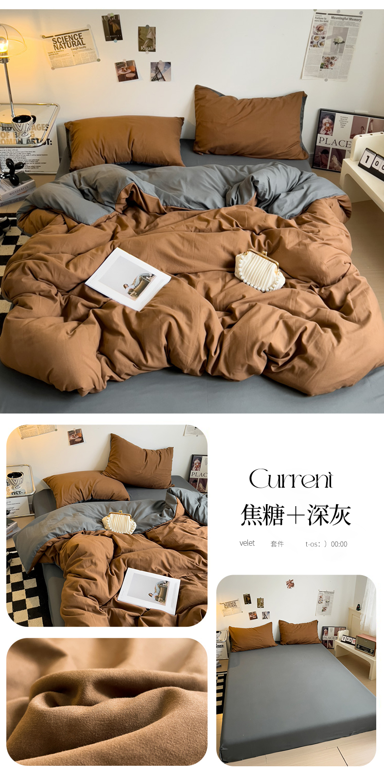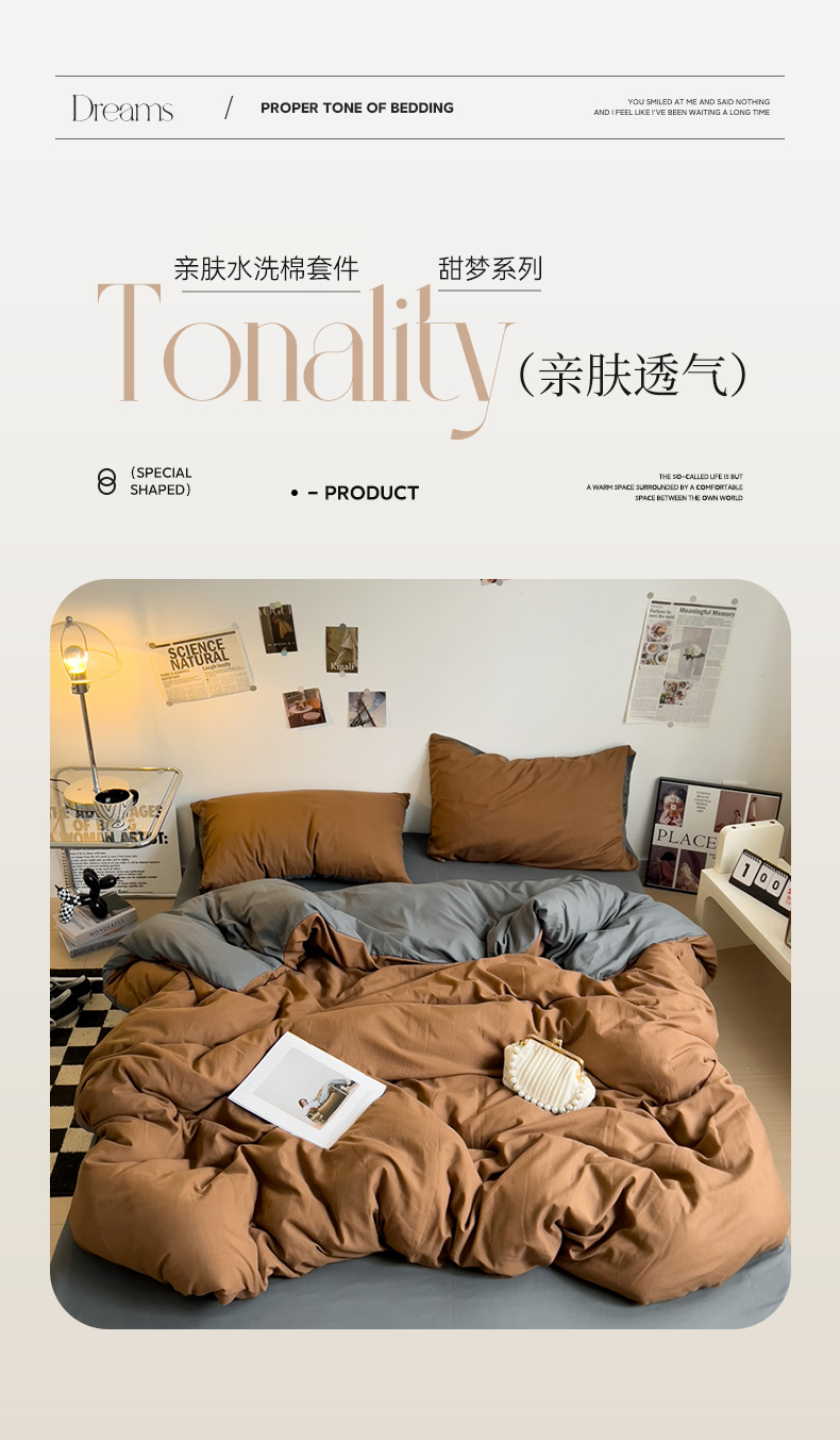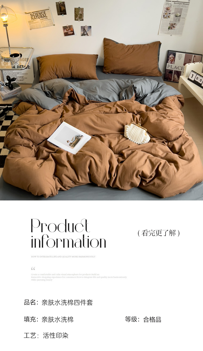 当前位置: 91家纺网 > 商品网购 > 床品套件 > 四件套 > 水洗棉四件套 > 梦卓家纺 2025爆款ins风超柔褶皱亲肤磨毛水洗棉四件套 焦糖+深灰