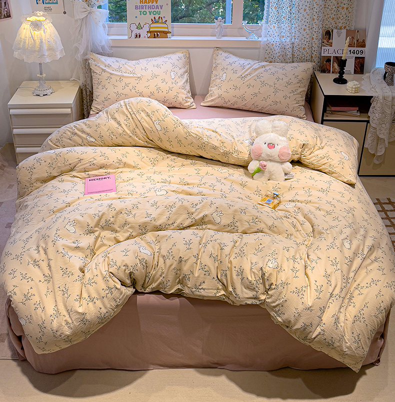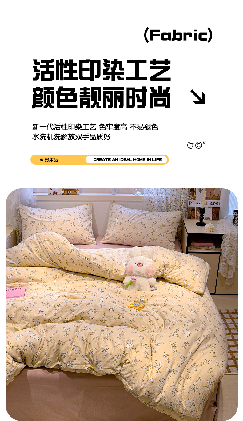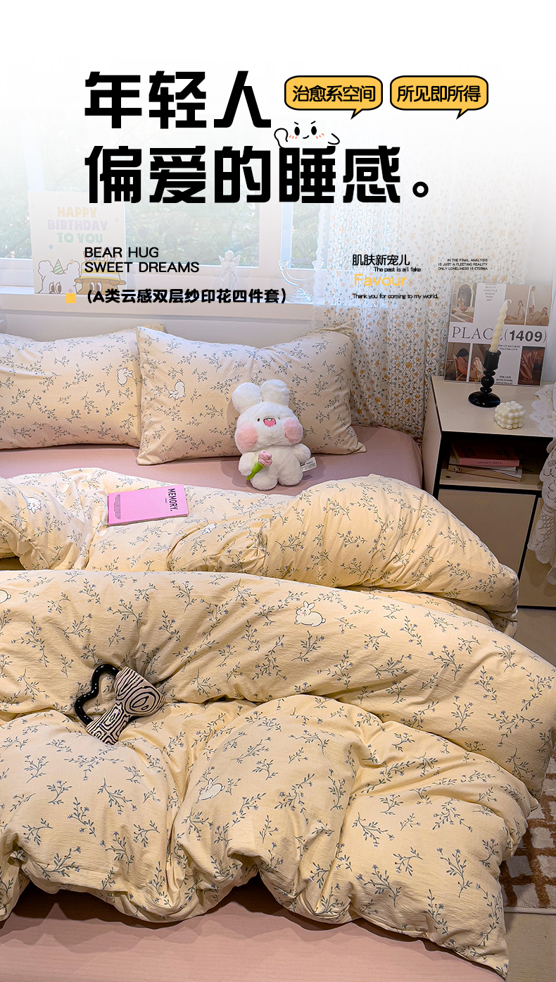 当前位置: 91家纺网 > 商品网购 > 床品套件 > 四件套 > 其它四件套 > 奈颜 2025新款爆款云感提花双层纱裸睡四件套-叠拍图 花花小兔