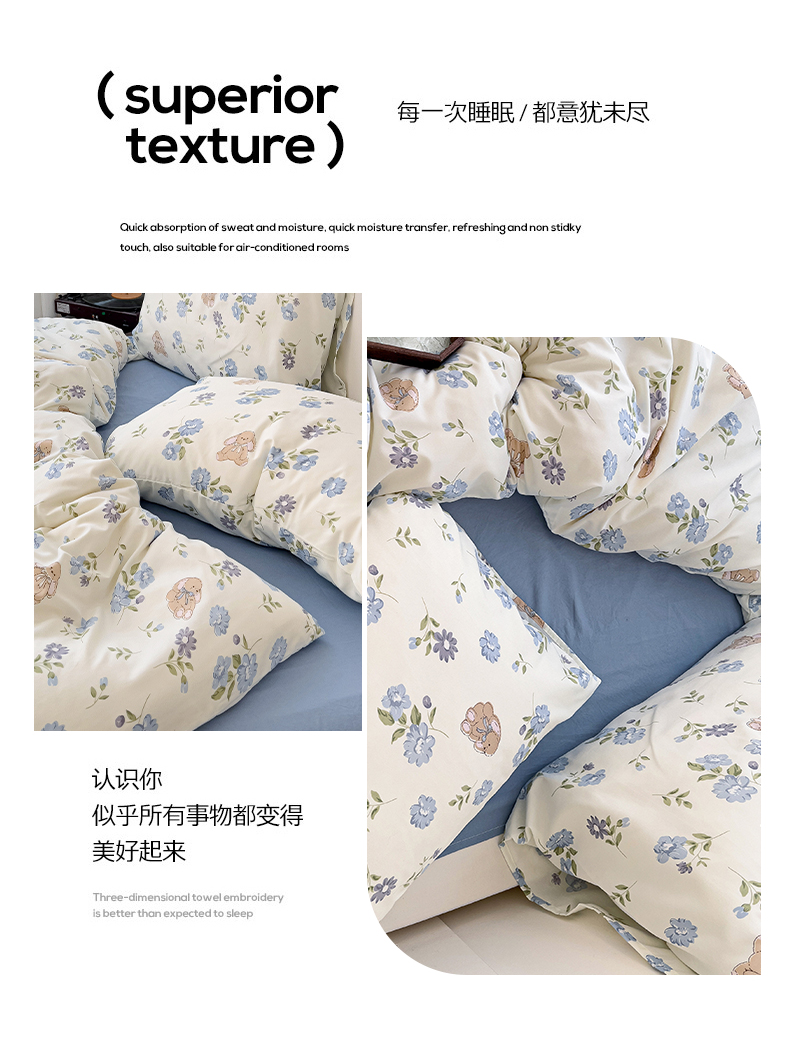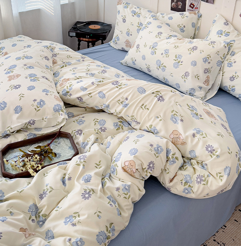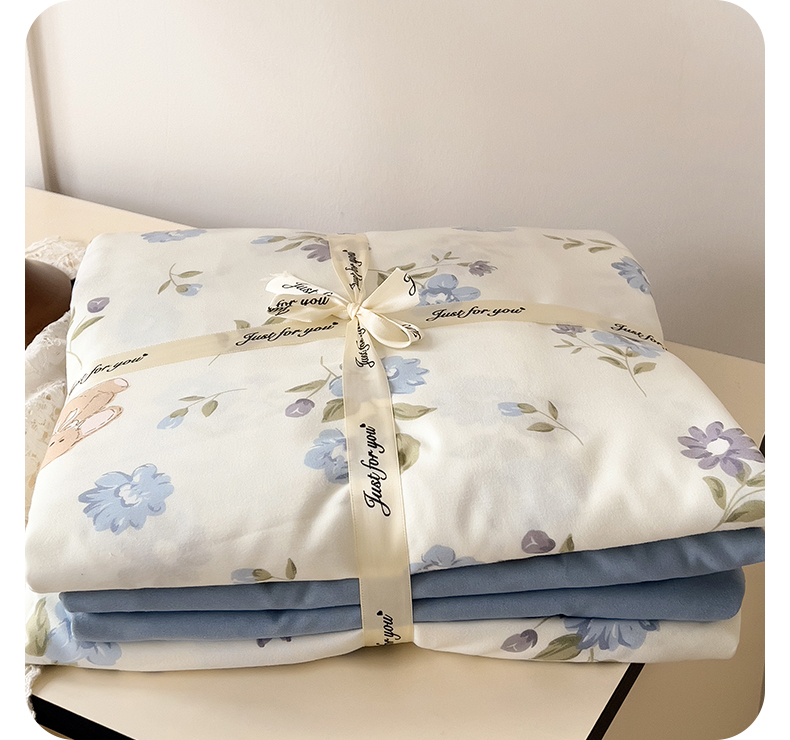 港岛妹妹 2025 新款水洗双层纱 绑带款系列四件套(可提供买家秀) 小蓝花