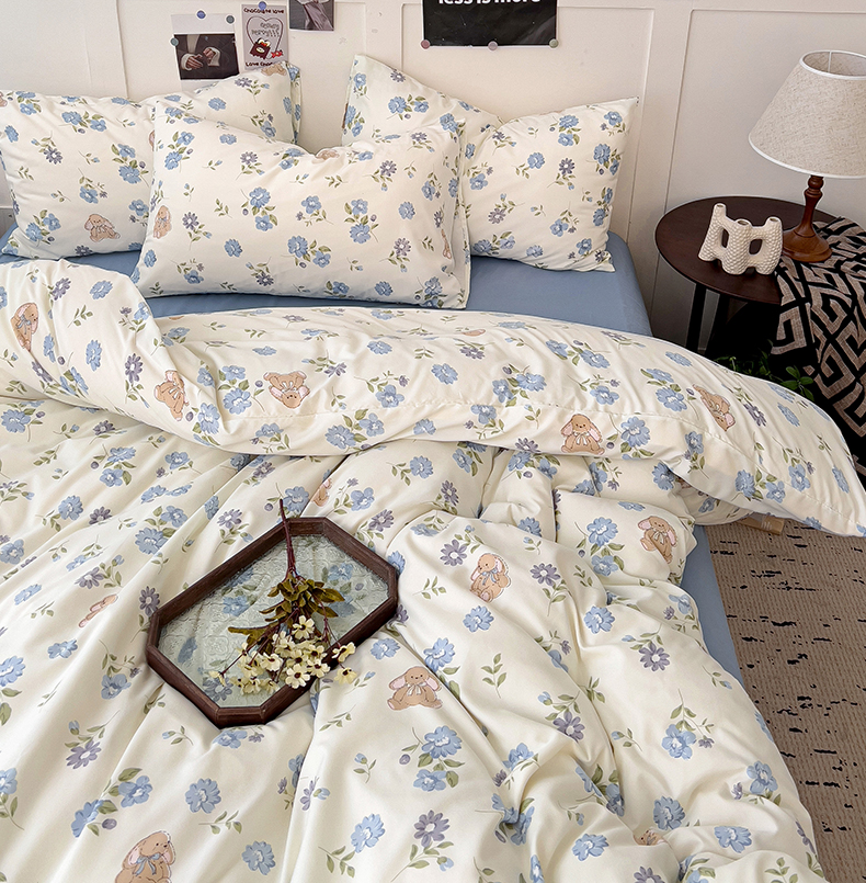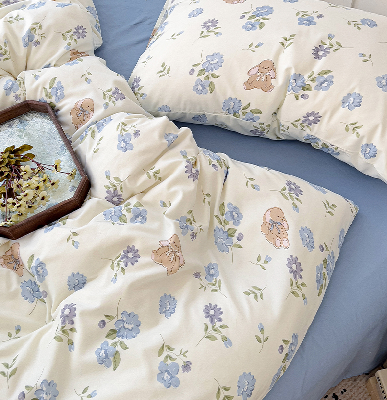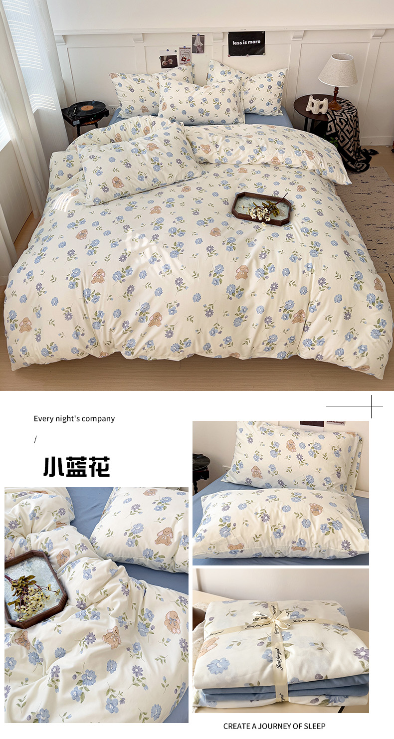 商品名称:港岛妹妹 2025 新款水洗双层纱 绑带款系列四件套(可提供买家秀) 小蓝花