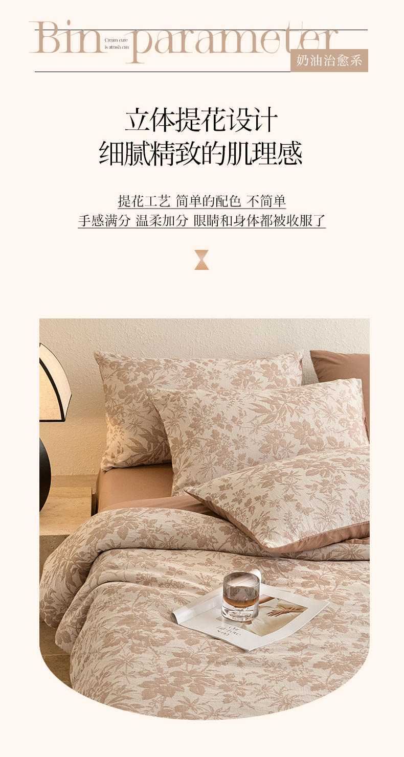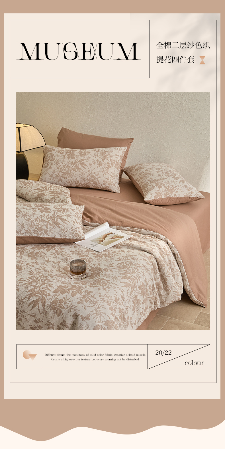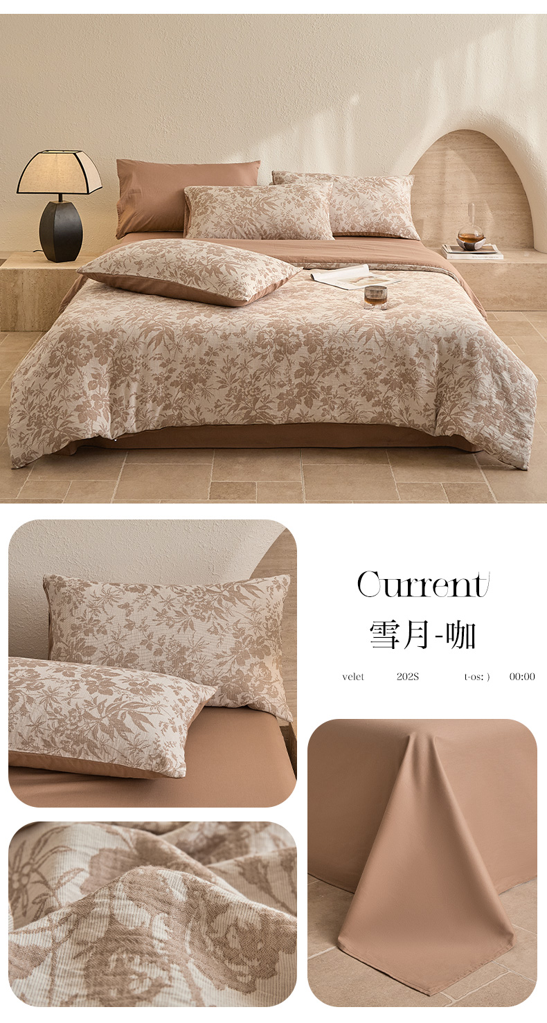 当前位置: 91家纺网 > 商品网购 > 床品套件 > 四件套 > 全棉普通四件套 > 2025新款全棉三层纱色织大提花四件套系列 雪月-咖