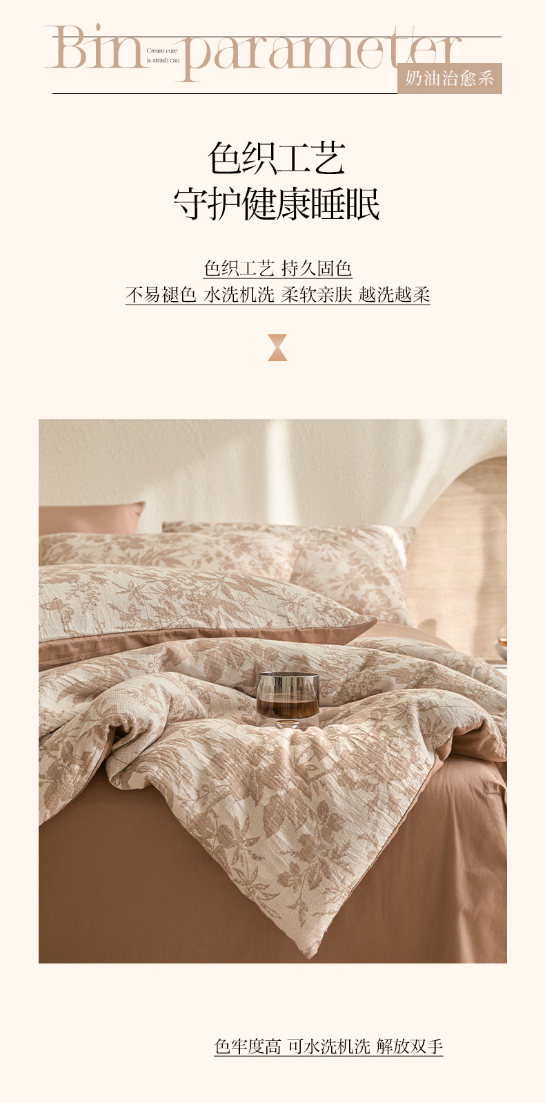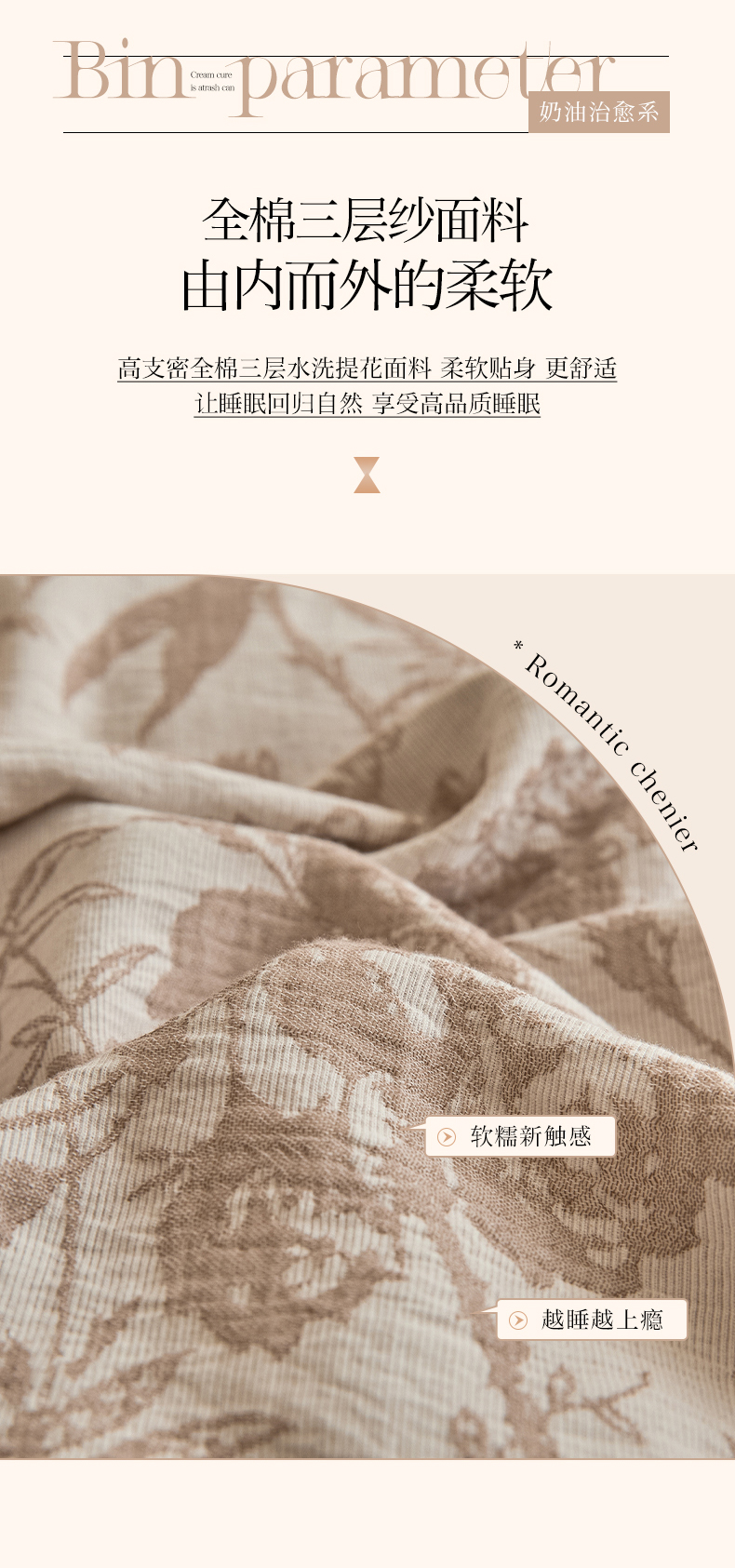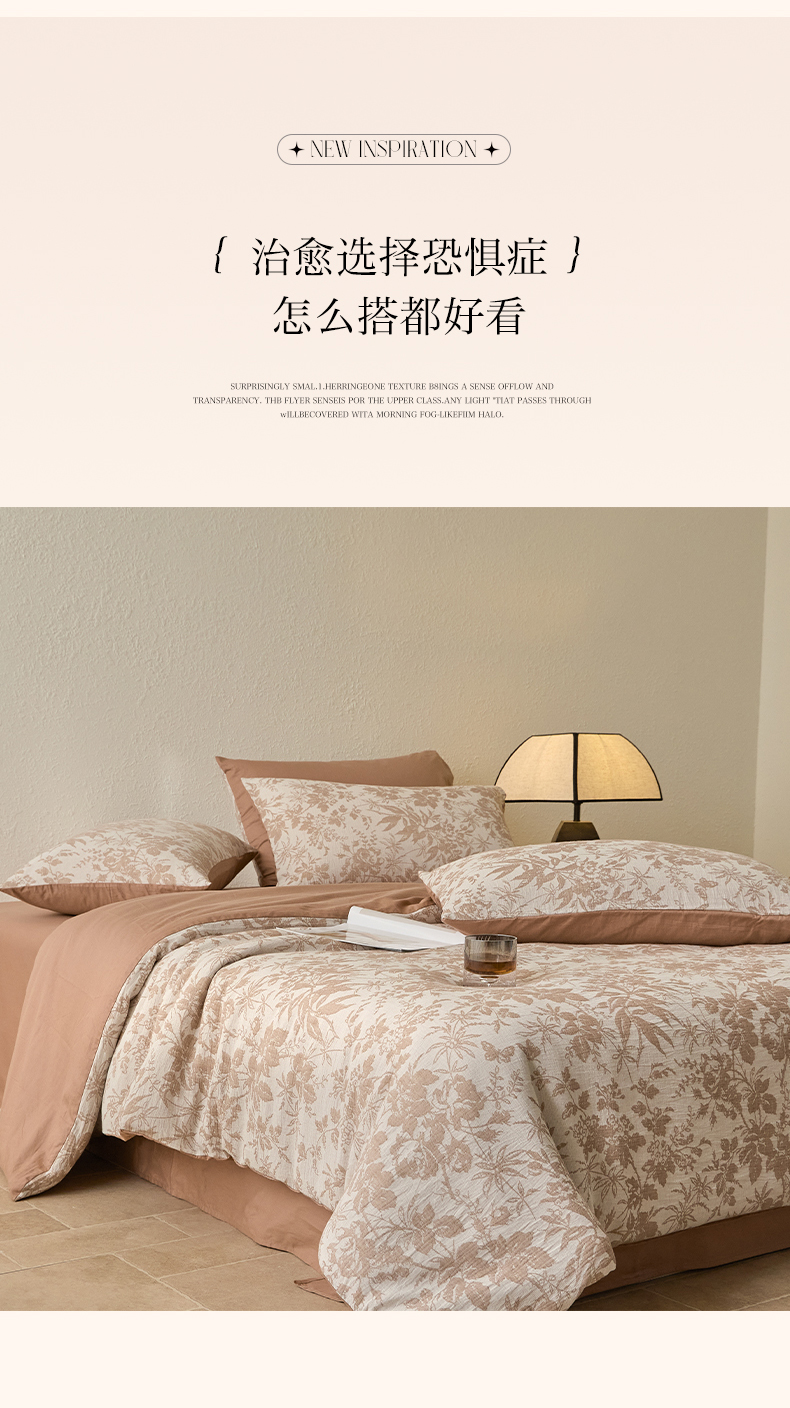 当前位置: 91家纺网 > 商品网购 > 床品套件 > 四件套 > 全棉普通四件套 > 2025新款全棉三层纱色织大提花四件套系列 雪月-咖