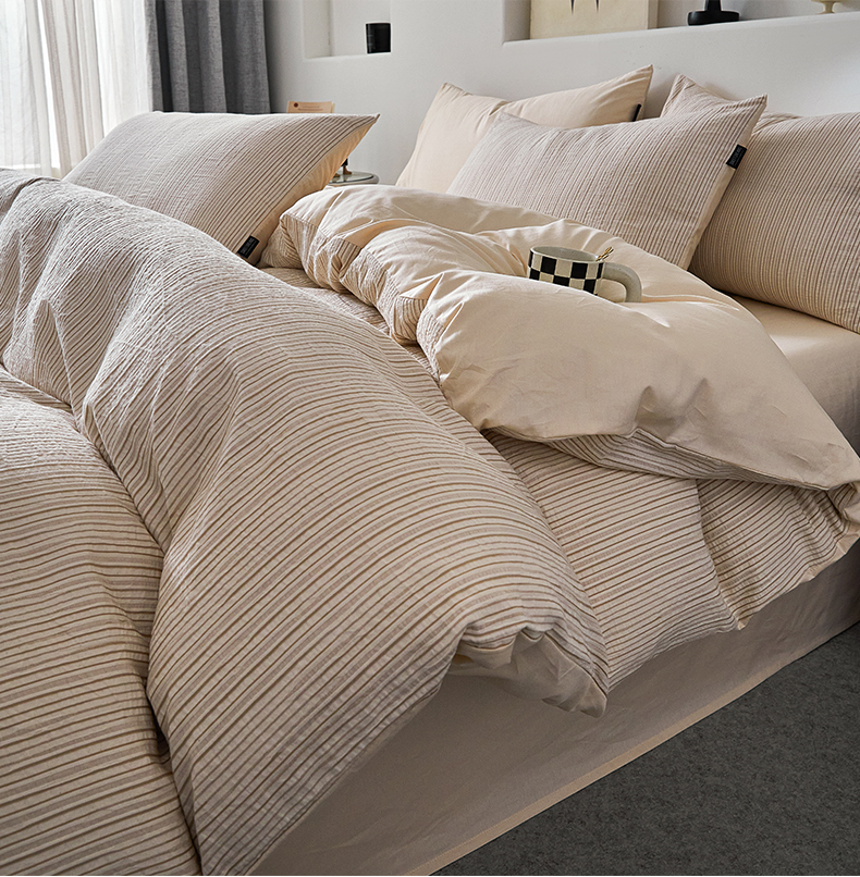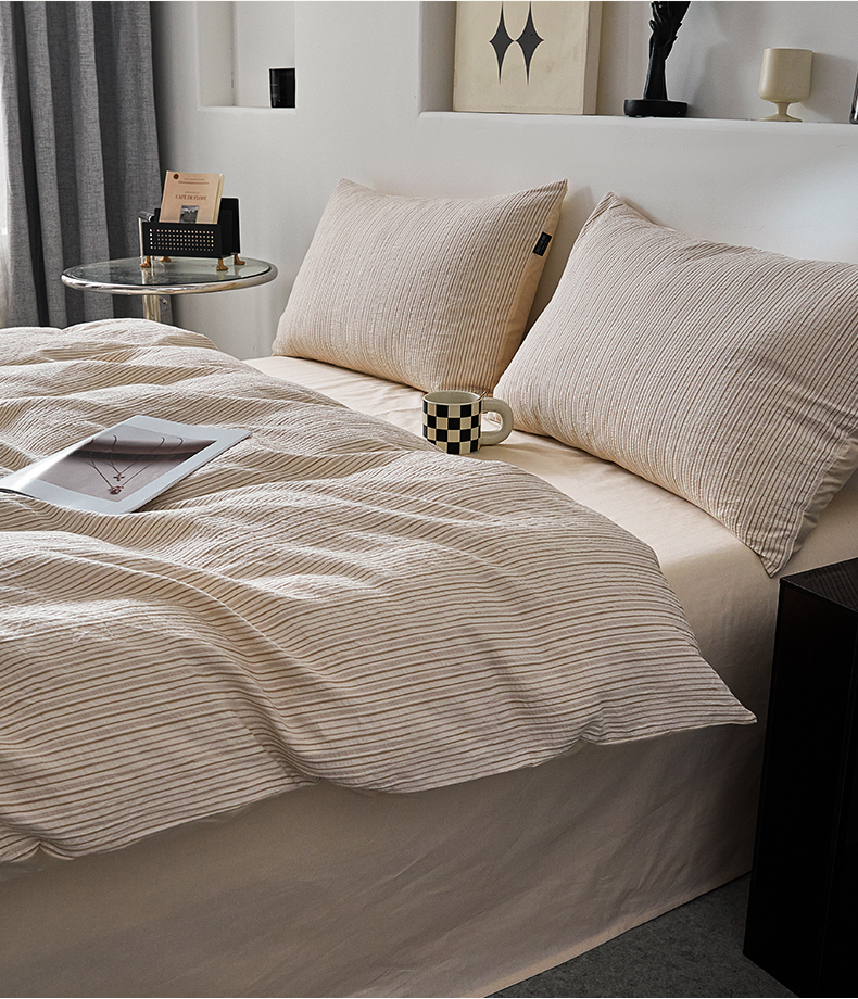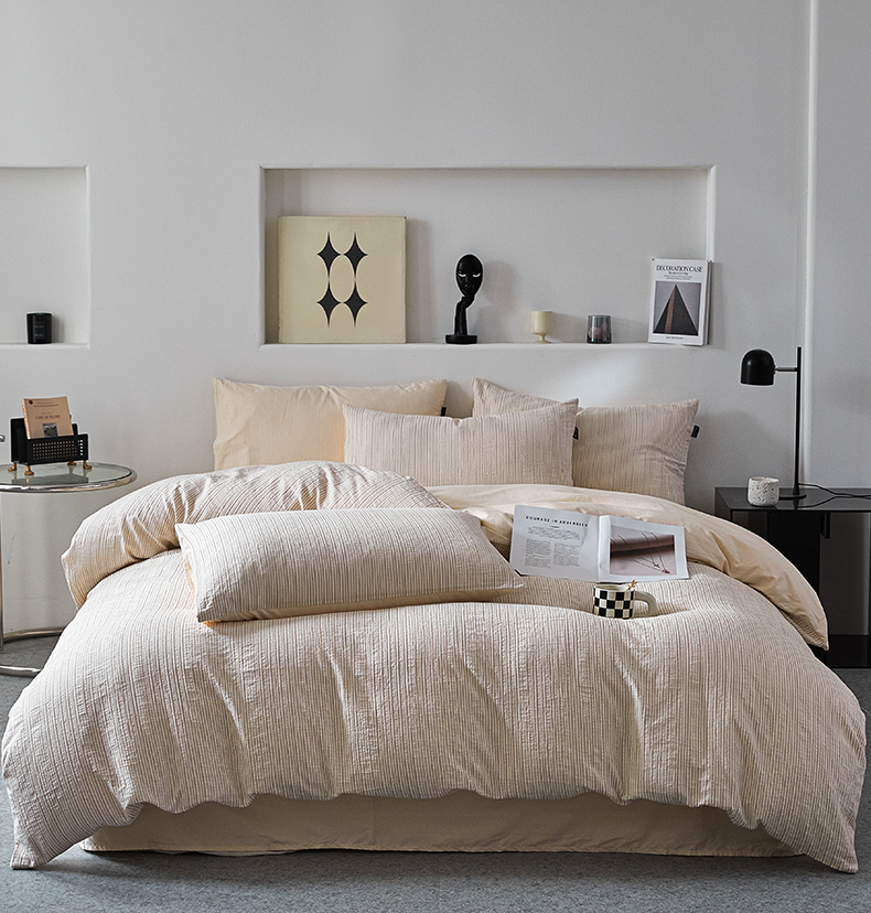 (总)格里芬家纺 2025新款全棉水洗纯色双层皱皱纱四件套-雅典,雅典-黛蓝,雅典-可可卡其,雅典-木槿紫,雅典-奶昔白,雅典-牛油果绿,雅典-蔷薇粉