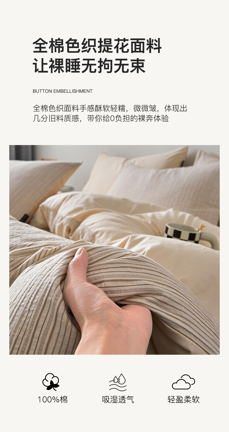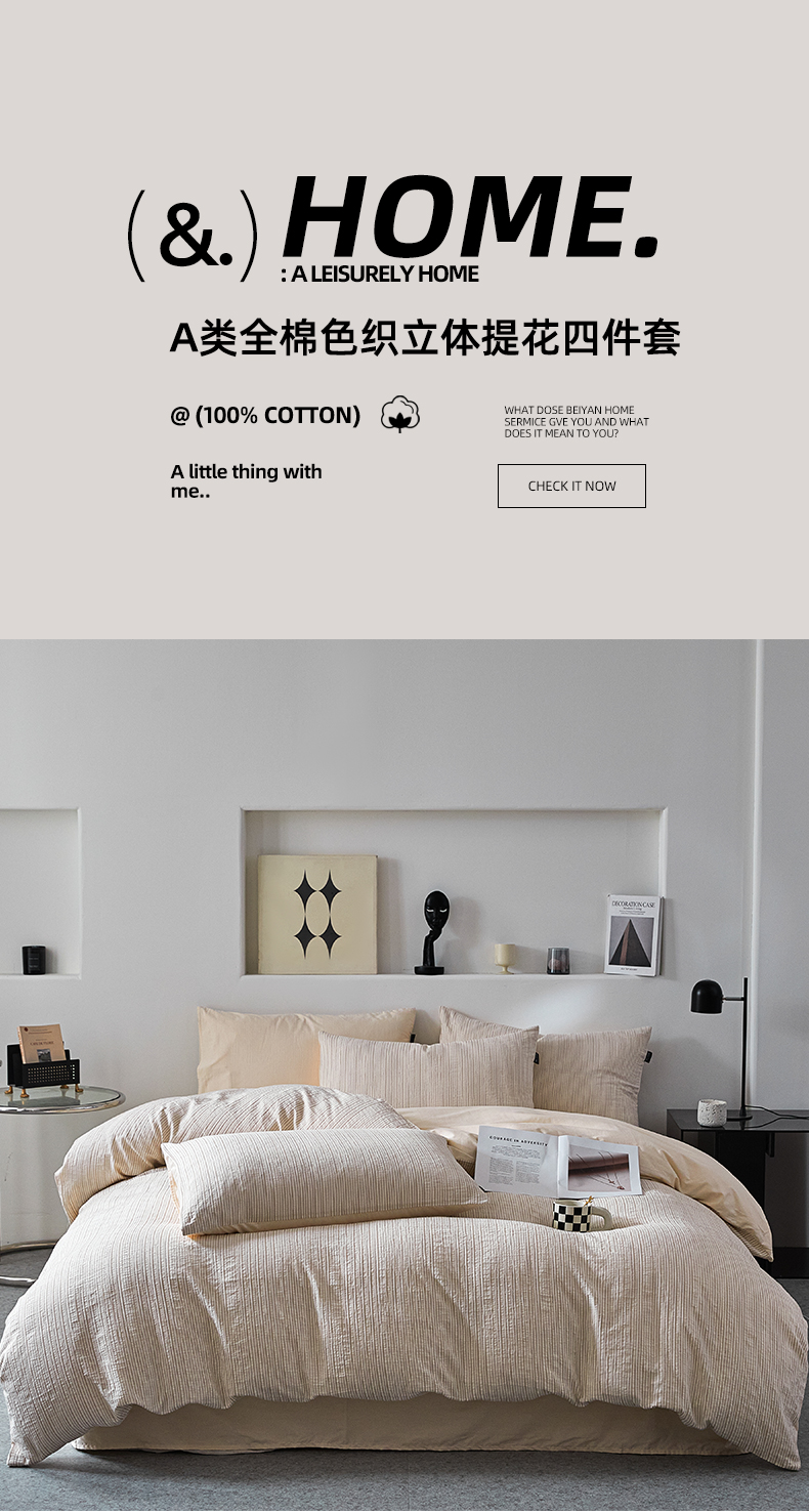 格里芬家纺 2025新款全棉色织水洗立体提花四件套-柏林 柏林-奶白