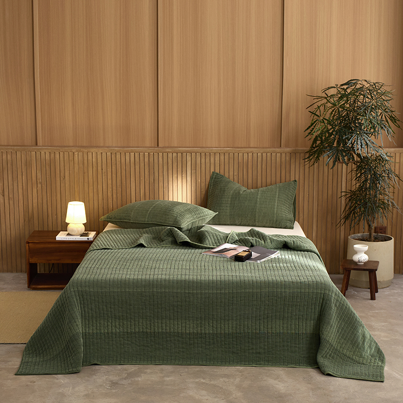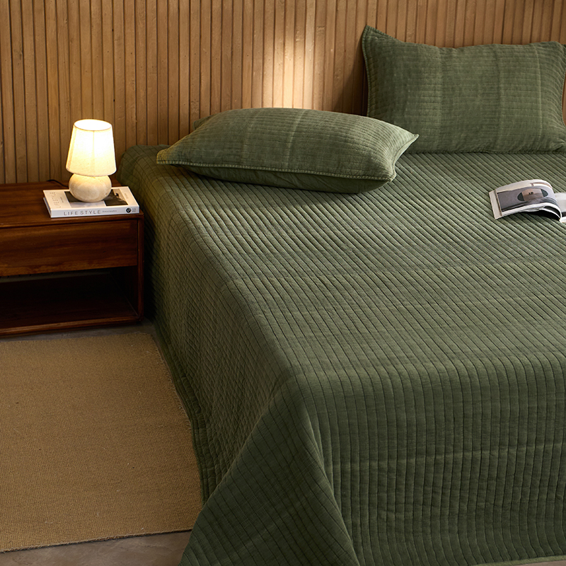 商品名称:2025新款全棉纱洗床盖三件套-艾伦 艾伦-军绿