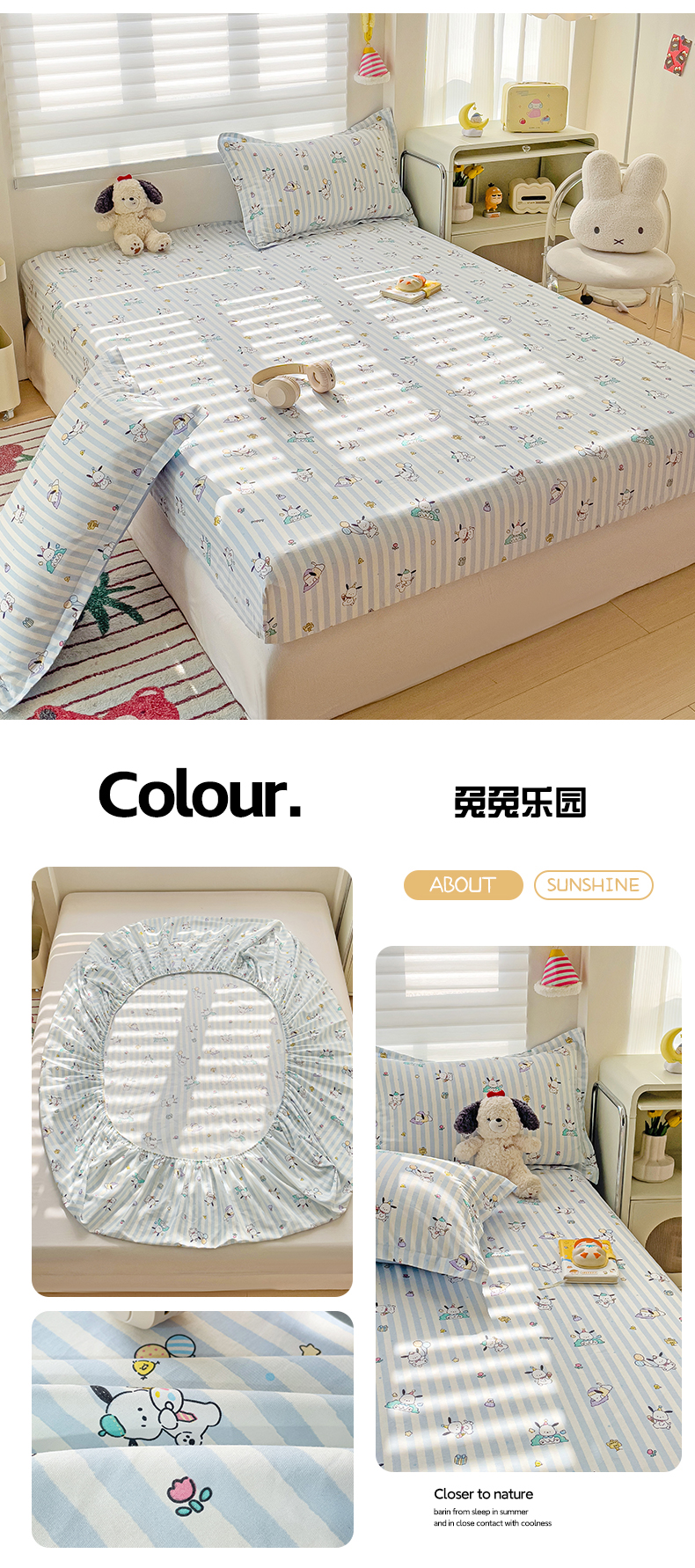 春雨家居 2025新款春夏卡通印花全棉单床笠 兔兔乐园