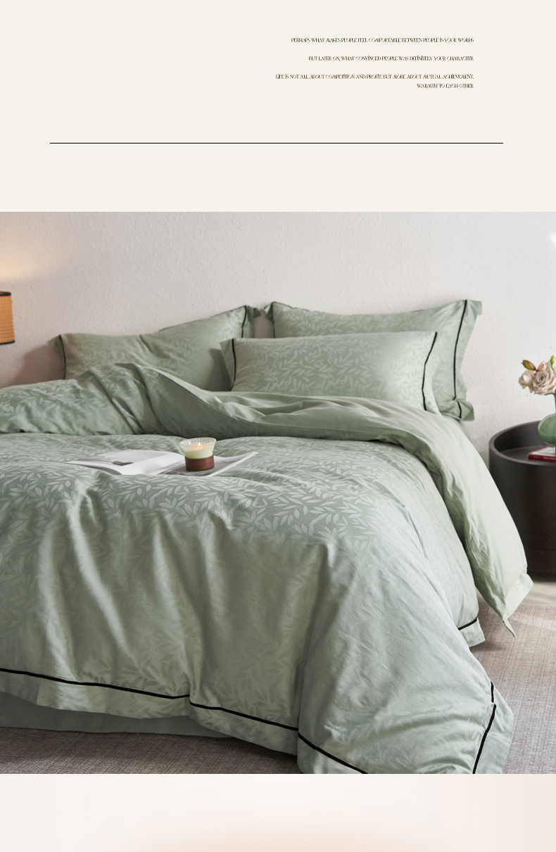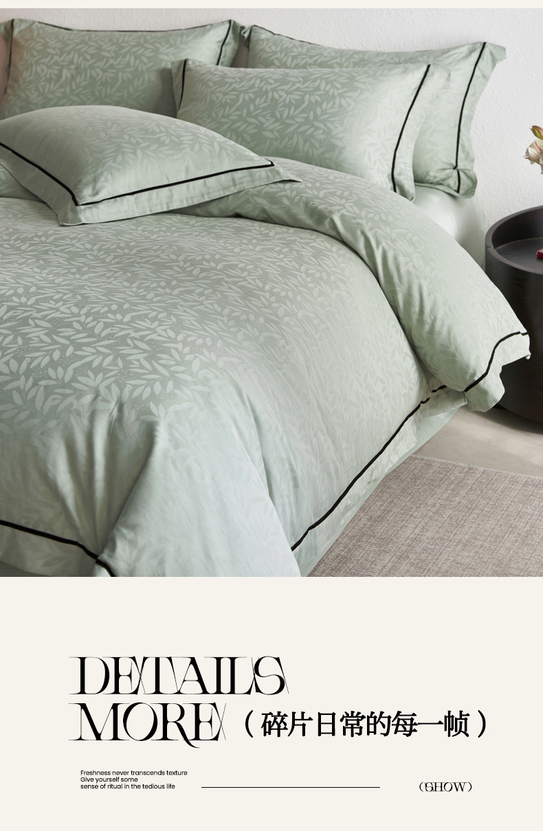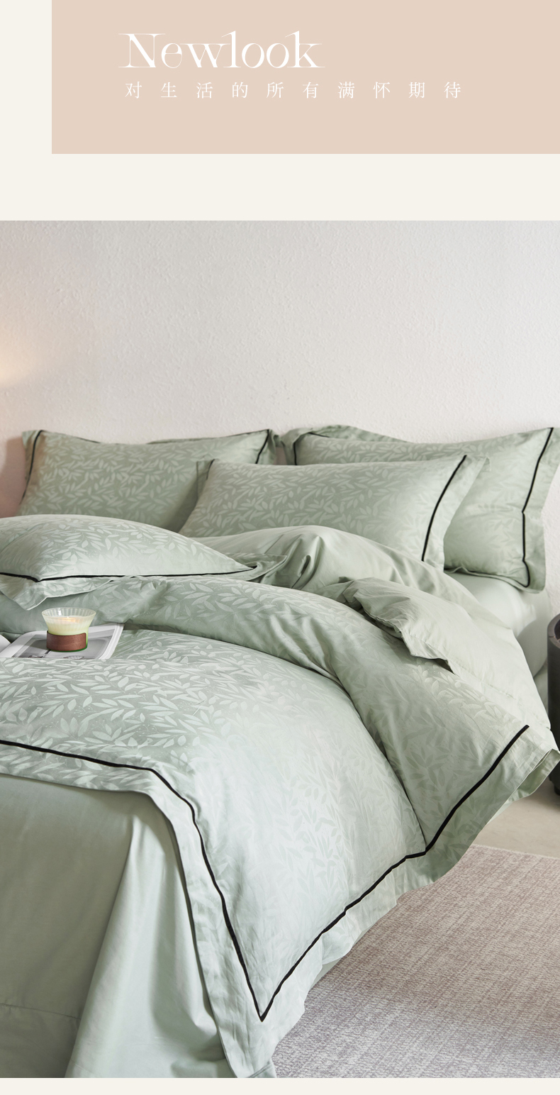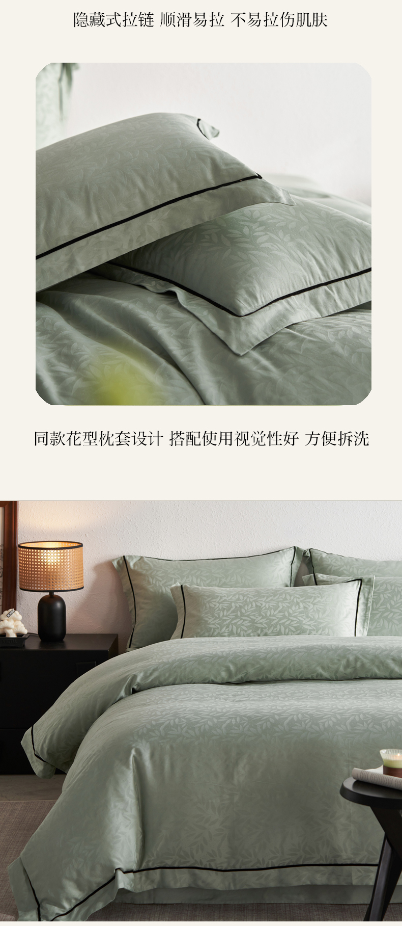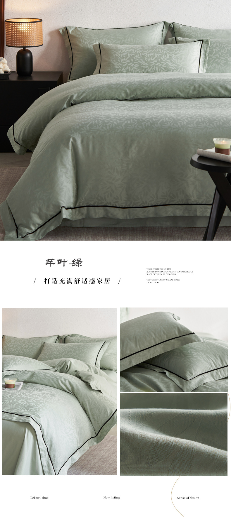 三朵全棉60S贡缎长绒棉大提花四件套-花序系列 芊叶-绿