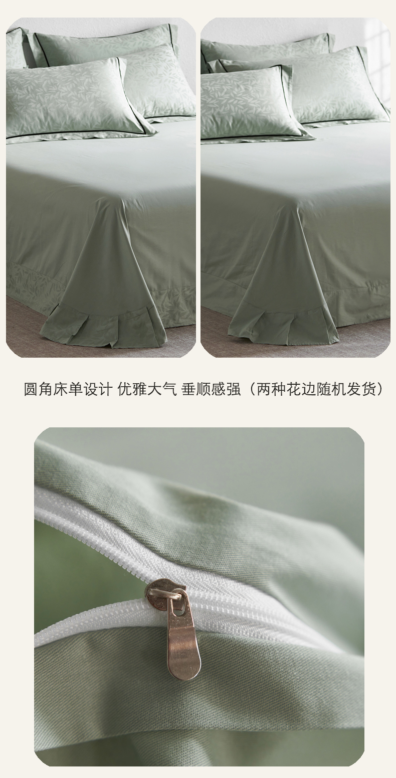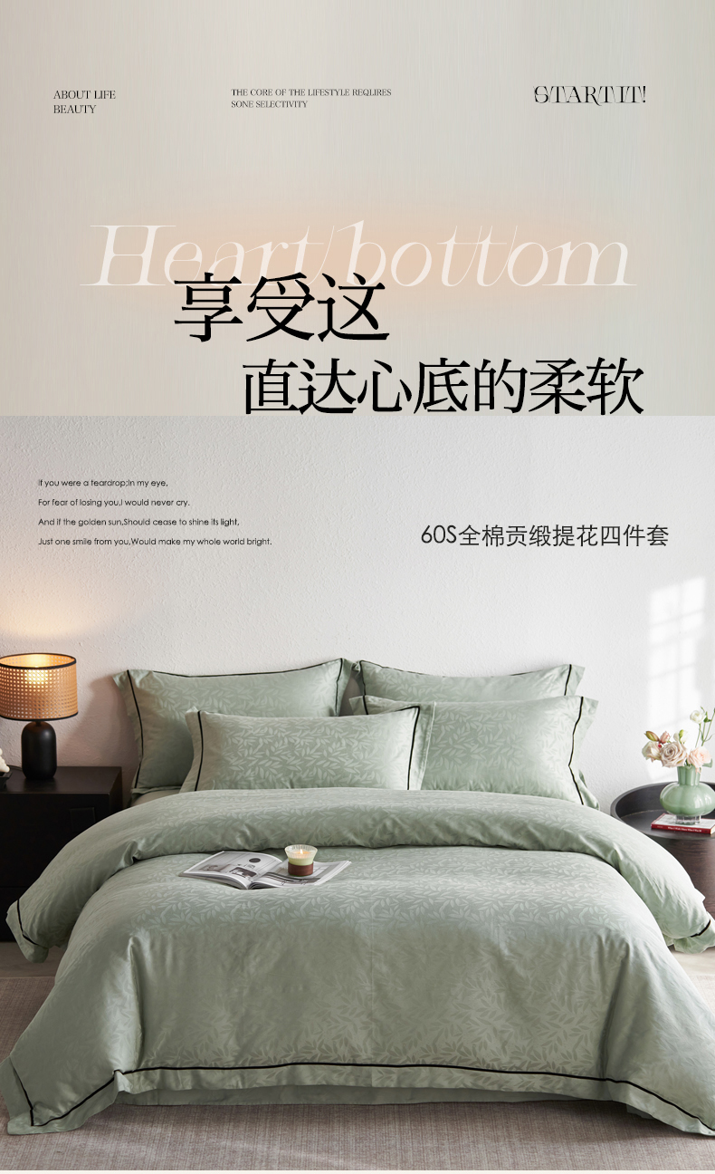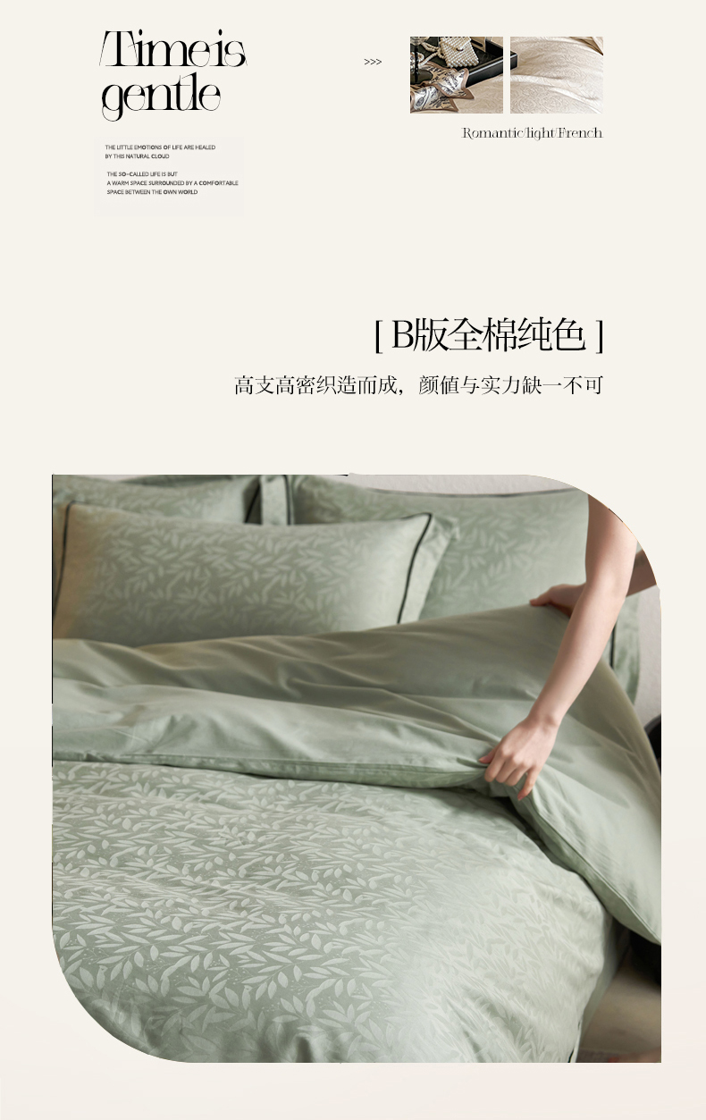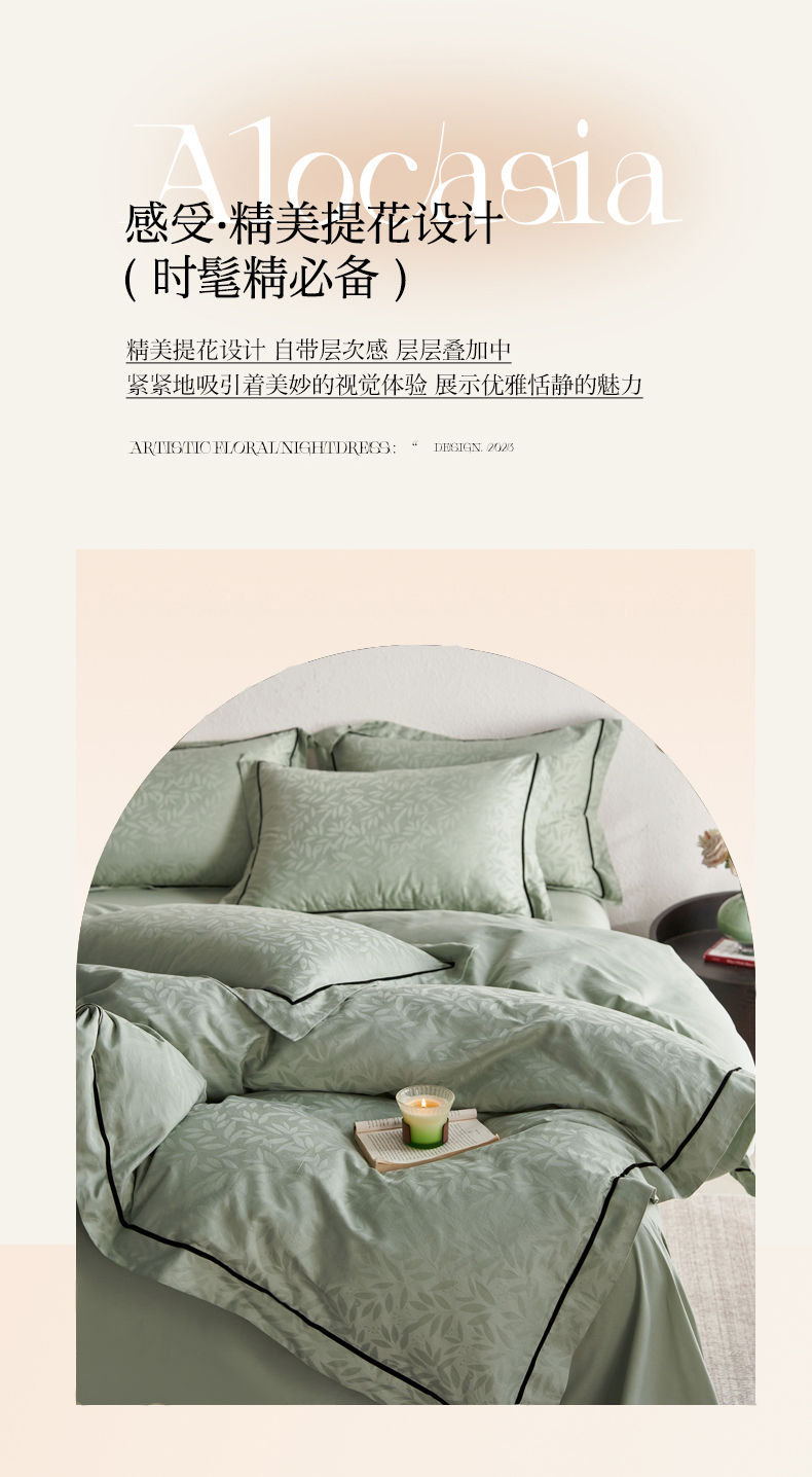 三朵全棉60S贡缎长绒棉大提花四件套-花序系列 芊叶-绿