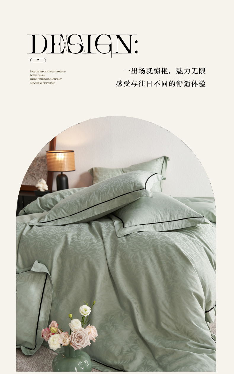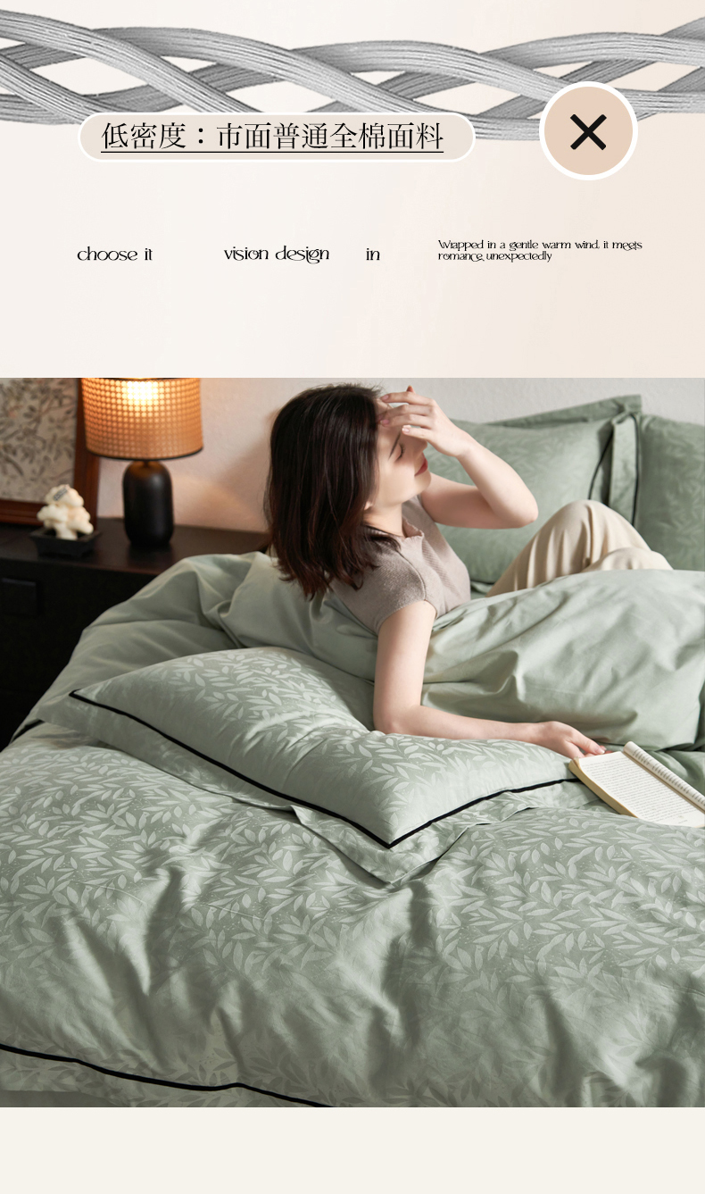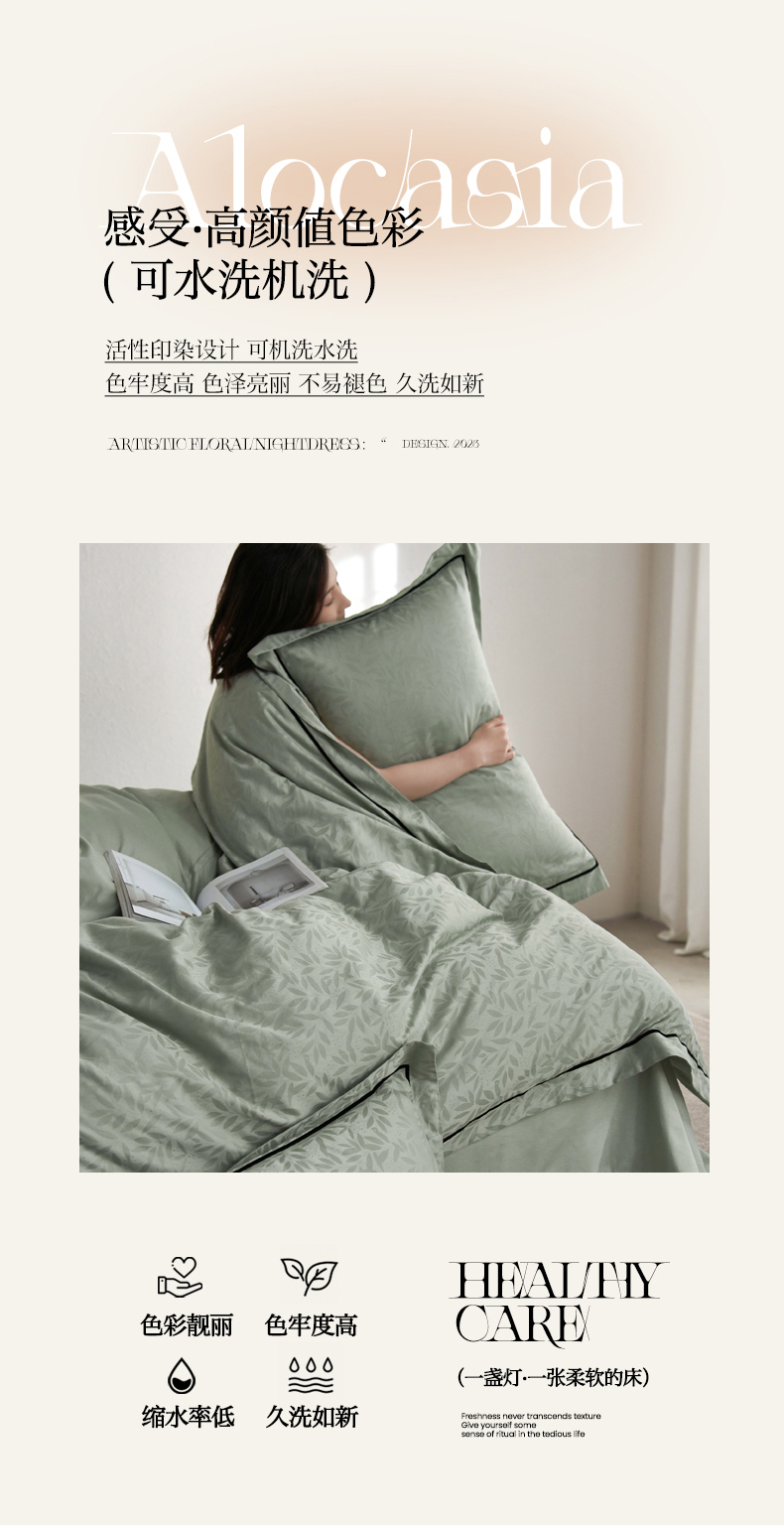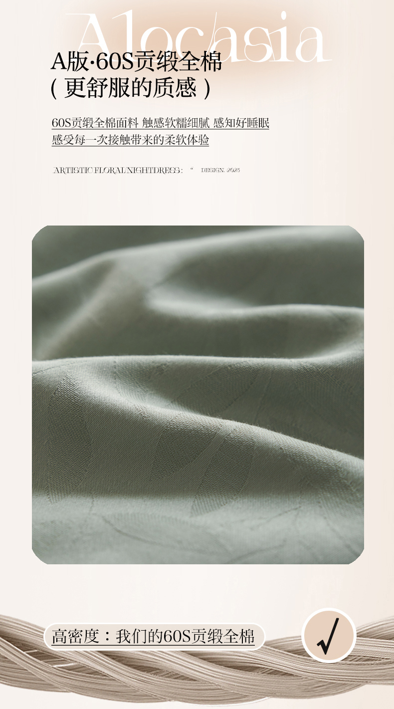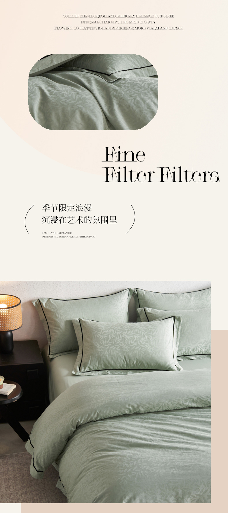 三朵全棉60S贡缎长绒棉大提花四件套-花序系列 芊叶-绿